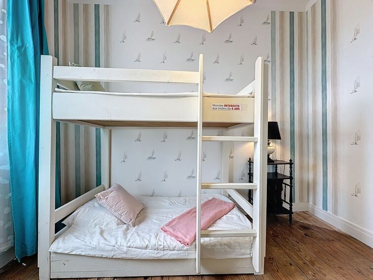 "Les Mouettes", huis in een rij 4-kamers 110 m2 op 2 verdiepingen, op het zuiden gelegen. Het objekt is geschikt voor 4 volwassenen + 2 kinderen. Rustiek en gezellig ingericht: groot woon-/eetkamer met TV (Flatscreen TV). Keuken (oven, afwasmachine, 4 inductiekookplaten, broodrooster, waterkoker, magnetron, elektrische koffiemachine, pads voor de koffiemachine (Nespresso) extra). Aparte WC. Bovenverdieping: 1 kinderkamer met 1 x 2 stapelbedden (70 cm, lengte 165 cm). 2 kamers, elke kamer heeft 1 2-pers bed (1 x 140 cm, lengte 190 cm). Bad/douche/WC, dubbele wastafels. Elektrische verwarming. Ter beschikking: wasmachine, strijkijzer, kinderstoel, kinderbed tot 2 jaar, haardroger. Rookvrij huis. Rookmelders. Aanbod door een particulier volgens art. 155, IV van CGI.