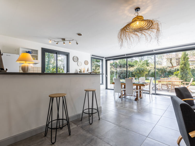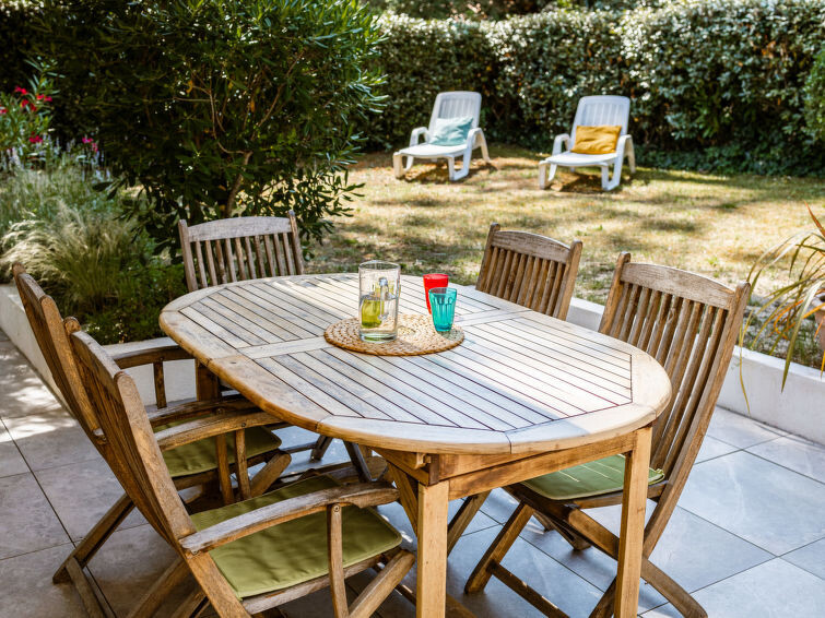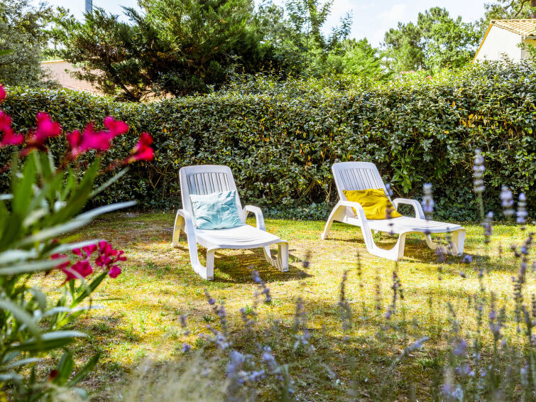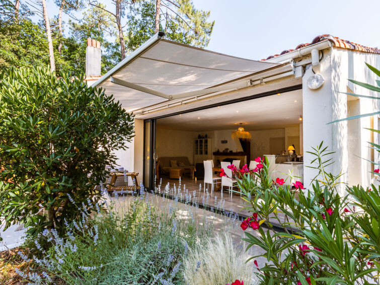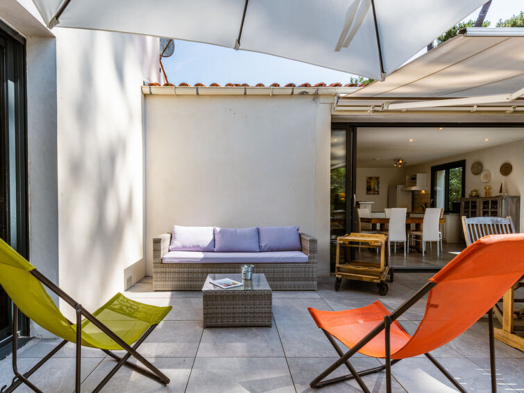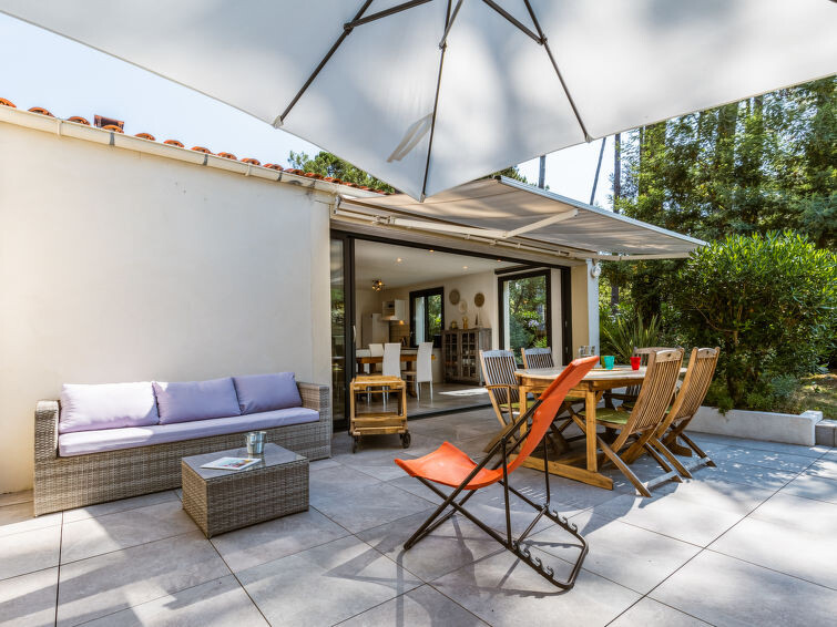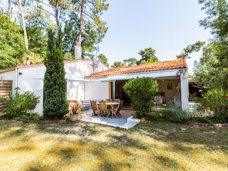 Eengezinswoning "Les Narcisses". 500 m van het centrum van Ronce-les-Bains, 4 km van het centrum van La Tremblade, 29 km van het centrum van Royan, in een woonwijk, 500 m van zee, aan een doodlopende weg. Voor alleengebruik: wild terrein 600 m2 (omheind) met planten en bomen, overdekte parkeerplaats bij het huis op het terrein. Winkel 500 m, supermarkt 4 km, bushalte "La tremblade" 200 m, zandstrand "Plage du Mus de Loup" 500 m. Een deel van het huis is afgesloten en niet bezet.