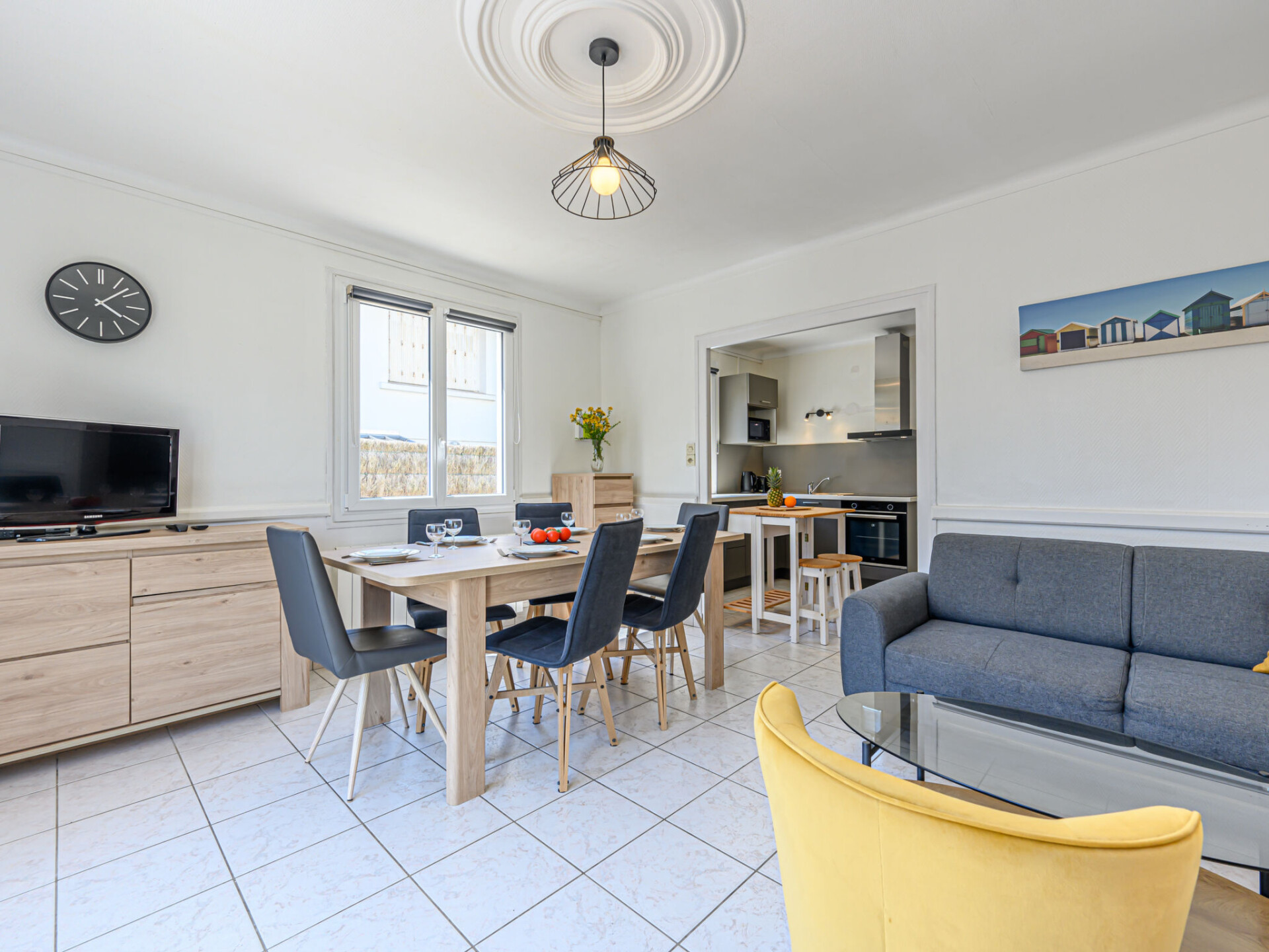 "Les Ondes", huis in een rij 5-kamers 80 m2. Doelmatig ingericht: woon-/eetkamer met TV (Flatscreen TV). Uitgang naar het terras. 1 kamer met 1 bed (90 cm, lengte 190 cm). Keuken (afwasmachine, 3 inductiekookplaten, broodrooster, waterkoker, magnetron, elektrische koffiemachine, pads voor de koffiemachine (Senseo) extra). Douche, aparte WC. Elektrische verwarming. Bovenverdieping: 1 kamer met 1 bed (90 cm, lengte 190 cm), 1 2-pers bed (1 x 140 cm, lengte 190 cm), wastafel. 1 kamer met 1 bed (90 cm, lengte 190 cm), wastafel. 1 kamer met 1 bed (90 cm, lengte 190 cm), 1 2-pers bed (1 x 140 cm, lengte 190 cm). Terras 20 m2, op het zuiden gelegen. Terrasmeubelen, barbecue, ligstoelen (2). Ter beschikking: wasmachine, strijkijzer, kinderbed, haardroger. Internet (WiFi, gratis). Maximaal 1 huisdier/hond toegestaan. Rookmelders. Bedindeling is flexibel. Er zijn meer slaapmogelijkheden beschikbaar dan het maximaal toegestane aantal personen dat echter niet mag worden overschreden. Aanbod door een particulier volgens art. 155, IV van CGI. 56034000707AF