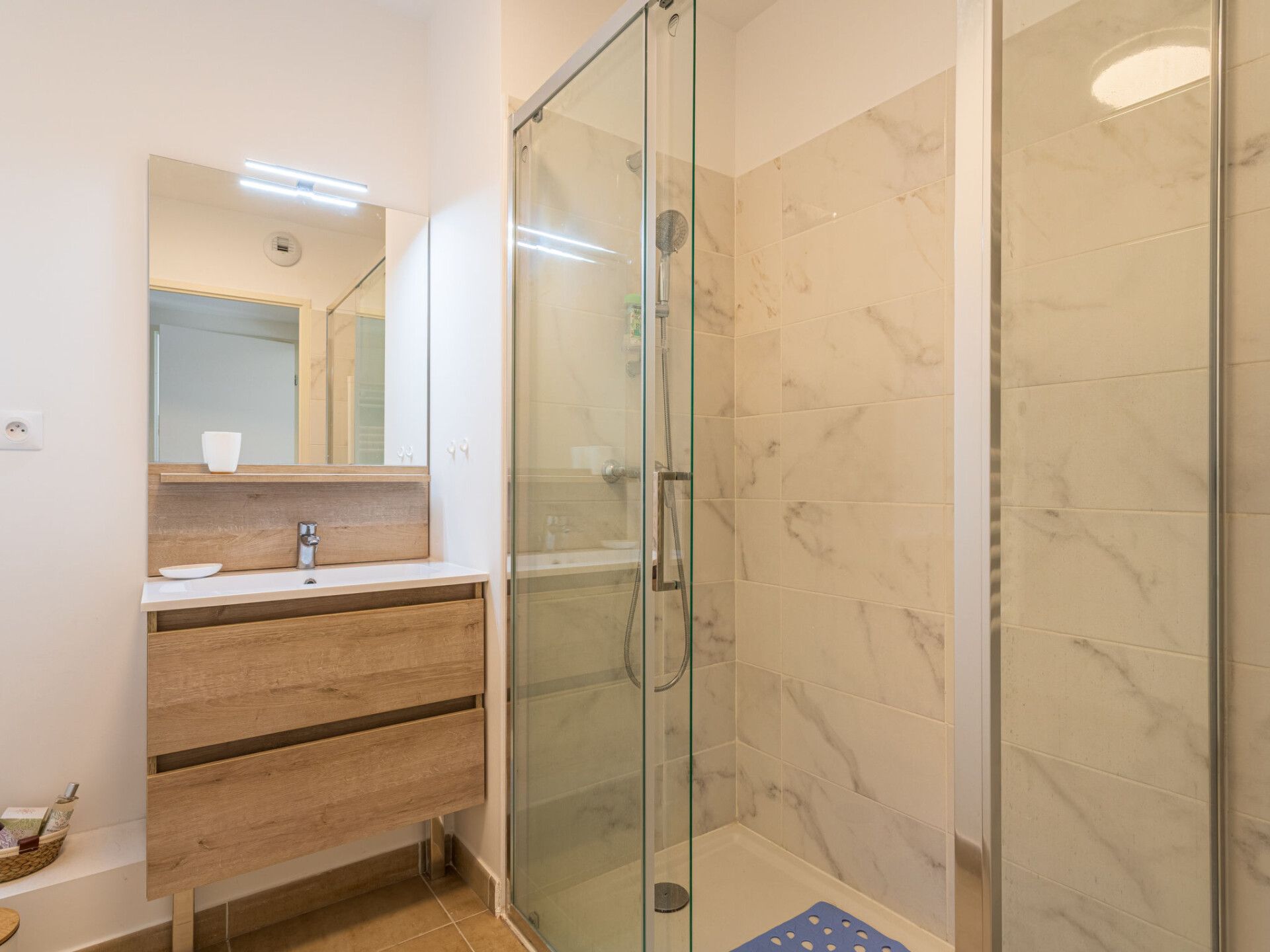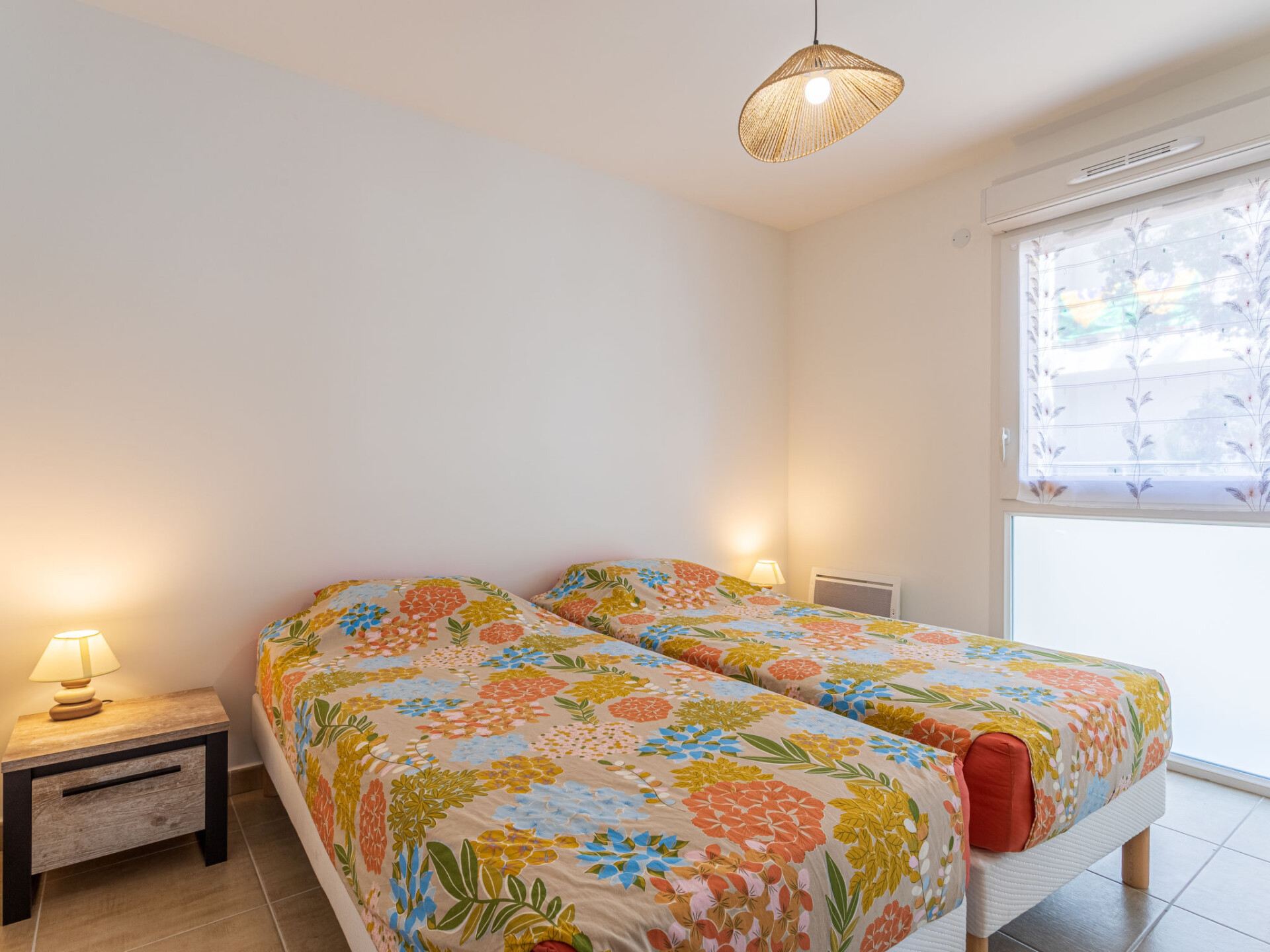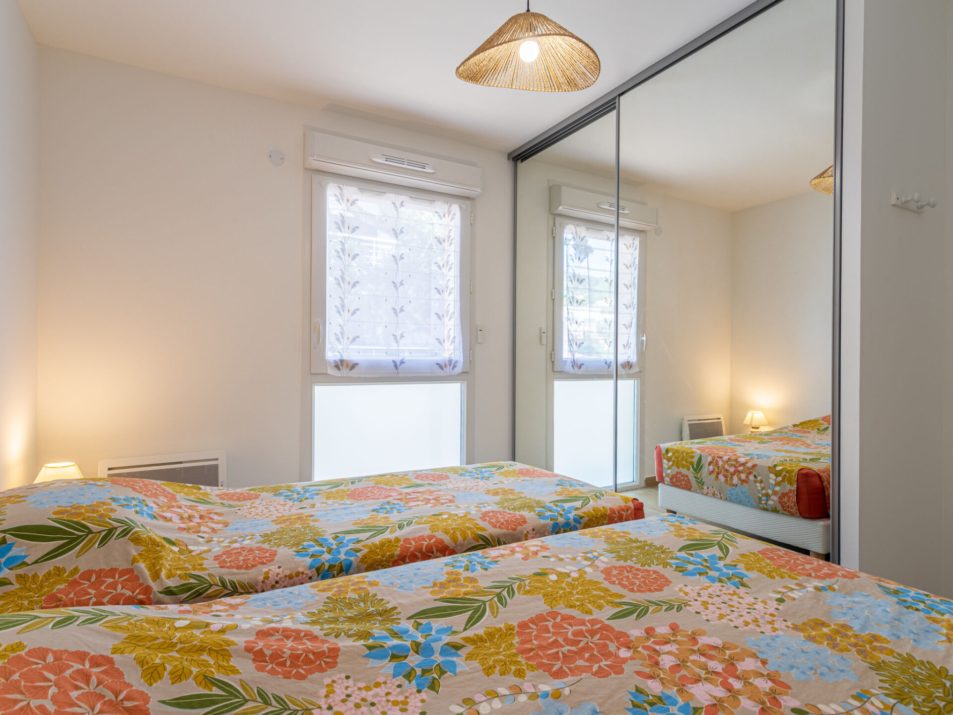 Appartement 3-kamers 57 m2 op de 2e verdieping, op het oosten gelegen. Zeer mooi ingericht: woon-/eetkamer met 1 2-pers divanbed (160 cm, lengte 190 cm), TV (Flatscreen TV), air-conditioning. Uitgang naar het terras, op het oosten. 1 kamer, op het noorden met 1 2-pers bed (140 cm, lengte 190 cm). 1 kamer, op het oosten met 2 bedden (90 cm, lengte 190 cm). Open keuken (oven, afwasmachine, 3 inductiekookplaten, broodrooster, waterkoker, magnetron, diepvriezer, elektrische koffiemachine). Douche, aparte WC. Elektrische verwarming, air-conditioning. Terras 11 m2, op het oosten gelegen. Terrasmeubelen, elektrische barbecue. Uitzicht op het zwembad, de tuin en het landschap. Ter beschikking: wasmachine, strijkijzer, haardroger. Internet (WiFi, gratis). Parkeerplaats nr. 6 et 7 (overdekt, 2 Auto's). Niet rokers woning. TV alleen FR. Rookmelders. Aanbod door een particulier volgens art. 155, IV van CGI. 83019002243KW
