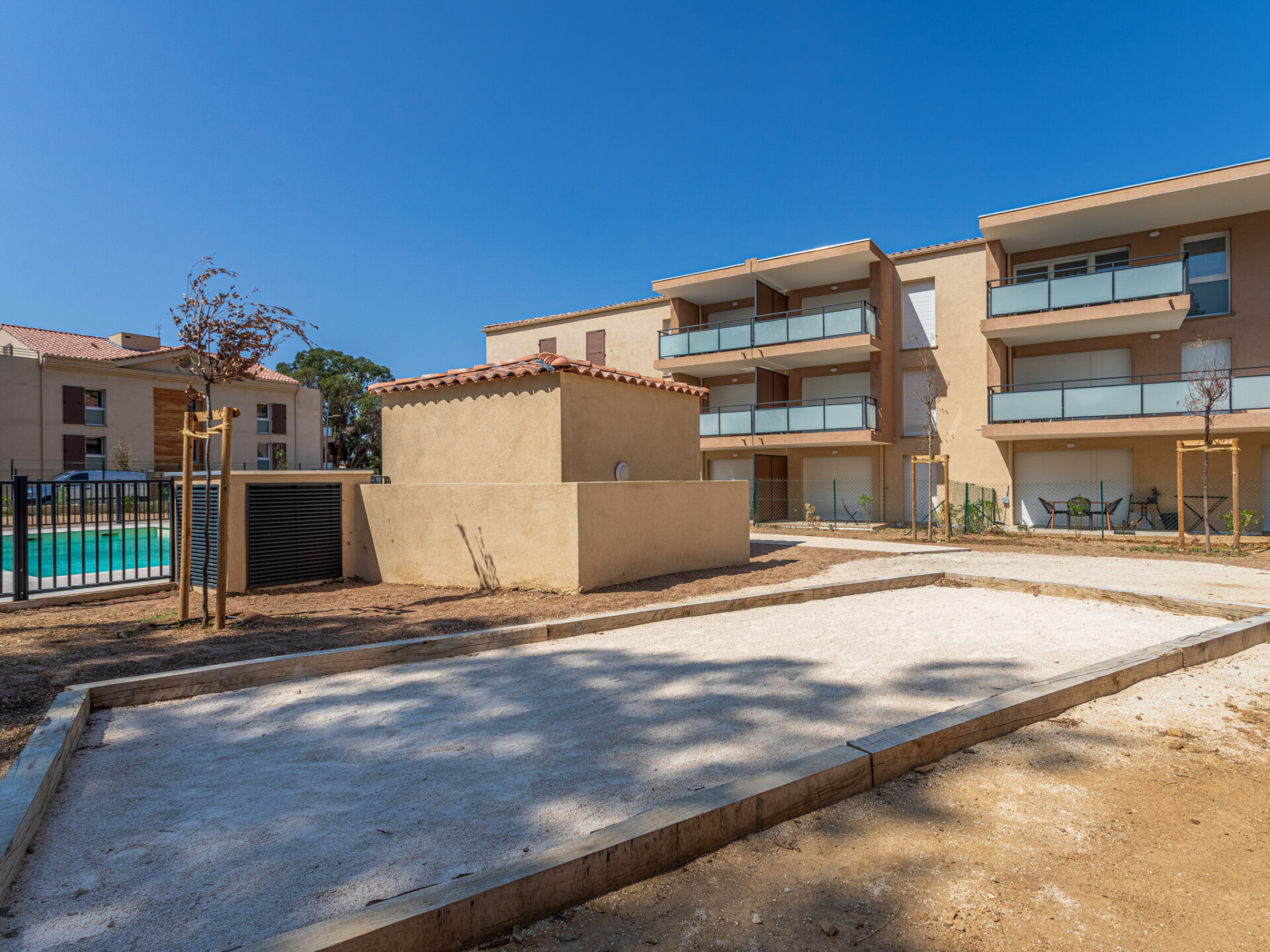 Bormes-Les-Mimosas: Zeer mooi flatgebouw "Les Pins Parasols", van 2 verdiepingen, bouwjaar 2025. Aan de rand van de plaats, 800 m van het centrum van Quartier du Pin, rustige ligging, 2.6 km van zee, 2.6 km van het strand. Voor medegebruik: openluchtzwembad hoekig (seizoensgebonden beschikbaarheid: 15.Apr. - 15.Okt.). In het huis: lift. Winkel 800 m, levensmiddelenwinkel 650 m, bakkerij 700 m, bushalte "Riviera Station" 500 m, zandstrand "du Lavandou" 2.6 km. Attracties in de buurt: Saint Tropez 36 km, Centre historique de Hyères 20 km, Rade de Toulon 47 km, Le Jardin des Méditerranées 14 km, Village Historique de Bormes 3 km, La petite Venise (Grimaud) 32 km. Wandelgebied Sentiers du Littoral, Arrière pays. De eigenaar accepteert geen groepen. De sleuteloverdracht vindt plaats bij het agentschap Interhome in Le Lavandou, 2 km.