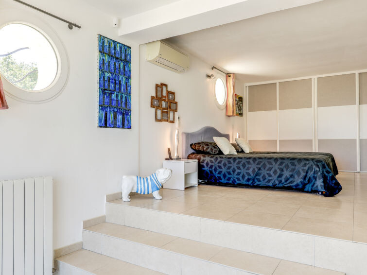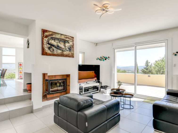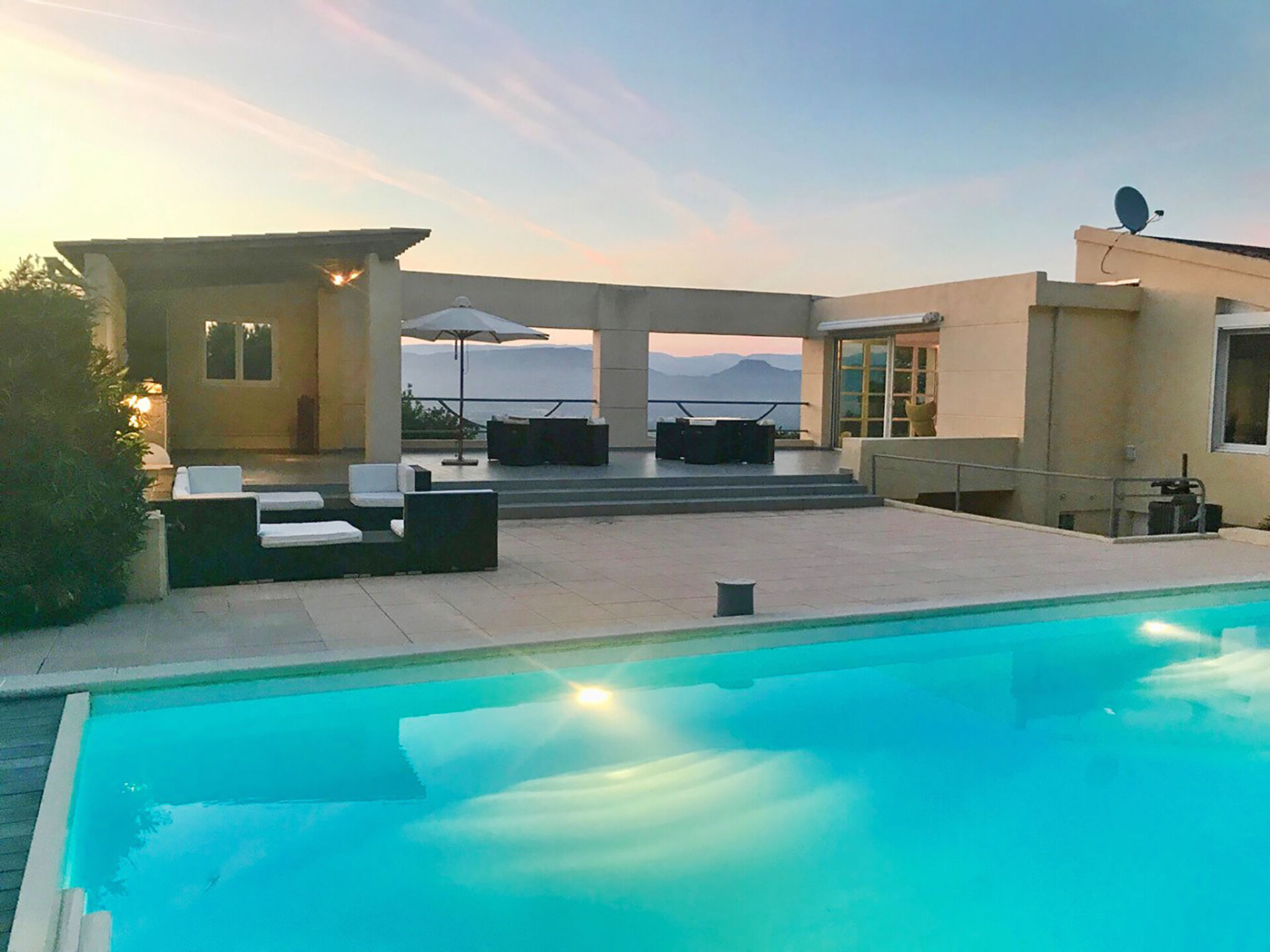 Huis 7-kamers 300 m2 op 2 verdiepingen. Comfortabel en modern ingericht: hal met douche/WC. Salon met TV (Flatscreen TV), air-conditioning. Uitgang naar het terras. Groot woon-/eetkamer met panoramavenster met air-conditioning. Uitgang naar het terras, naar het zwembad. Open keuken (oven, afwasmachine, 4 inductiekookplaten, magnetron, diepvriezer, elektrische koffiemachine). Uitgang naar het zwembad. Souterrain: 1 groot kamer met Kleedkamer met 1 2-pers bed (1 x 180 cm, lengte 200 cm), bad, aparte WC, bad/douche, dubbele wastafels, hot tub en air-conditioning. Uitgang naar de tuin. 1 kamer met 1 2-pers bed (1 x 160 cm, lengte 200 cm), TV (Flatscreen TV). 1 kamer met 1 2-pers bed (1 x 140 cm, lengte 200 cm), wastafel. Uitgang naar het terras, naar het zwembad. Douche/WC. Verwarming. Terras 100 m2, op het zuidwesten gelegen terras 70 m2, op het oosten gelegen, tuin. Terrasmeubelen, barbecue, ligstoelen (6). Zeer mooi panoramazicht op het landschap en het bos. Ter beschikking: wasmachine, droger, strijkijzer, haardroger. Internet (WiFi, gratis). Parkeerplaats (omheind, 4 Auto's). Niet geschikt voor kleine kinderen. Maximaal 1 huisdier/hond toegestaan. Rookmelders. Bijgebouw (toegang via buitentrap): 1 slaapkamer met 1 tweepersoonsbed (180x200), airconditioning. 1 kamer met 2 bedden (2x 90x200), airconditioning. Bad / aparte WC. 8310700023358