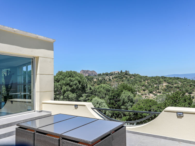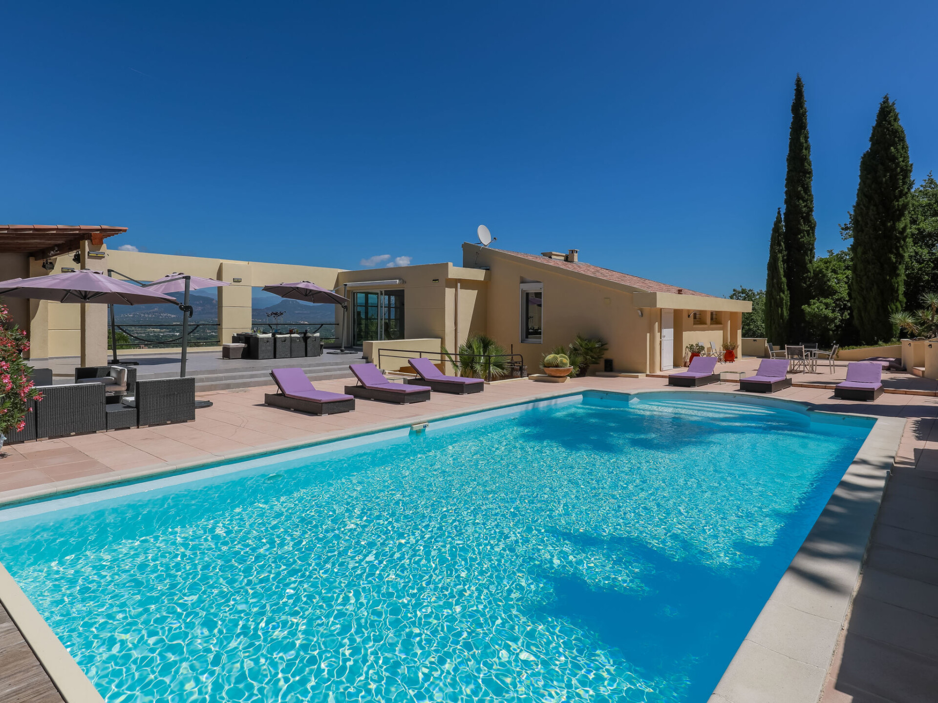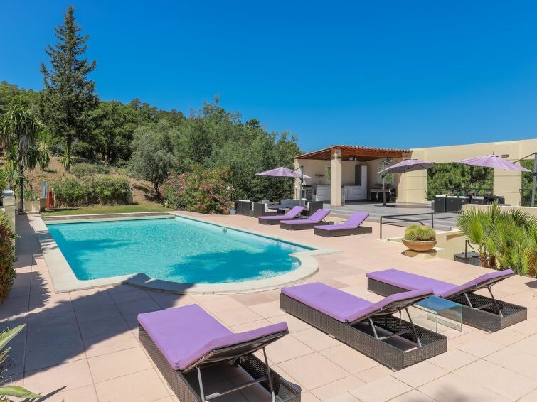 Moderne eengezinswoning "Les Toscanes", van 2 verdiepingen, omgeven door bomen. Huurobject bestaande uit hoofd-/ bijgebouw, buiten de plaats Roquebrune sur Argens, rustige, zonnige, verhoogde ligging op een heuvel, in een woonwijk, gebied met weinig verkeer, te midden van groen. Voor alleengebruik: wilde tuin 1 ha (omheind), openluchtzwembad hoekig, verwarmd, geen inkijk (12 x 6 m, 60 - 170 cm diepte, seizoensgebonden beschikbaarheid: 15.Mei. - 15.Okt.) met oprolbaar afdekscherm en alarminstallatie. Buitendouche, poolhouse, terras (170 m2), barbecue. In het huis: alarmsysteem. 1 maal per week schoonmaak op verzoek (extra). Winkel 3 km, bushalte "Roquebrune Village" 2 km, treinstation "Fréjus" 20 km, zandstrand "Plage de Saint Aygulf" 15 km kiezelstrand "Calanque des Louvans" 14 km, park "Areca" 14 km, thermaalbad "Thalasso de Port Fréjus" 20 km, meer Lac de l'Arèna 3 km. Jachthaven 15 km, golfterrein (18 holes) 10 km, zeilschool 15 km, manege 7 km, sportcentrum 4 km, wandelroutes 100 m vanaf het huis. Attracties in de buurt: Base Nature du Rocher 4 km, Roquebrune sur Argens 3 km, Saint Aygulf 15 km, Aqualand, Luna park 20 km, Sainte Maxime 24 km, Saint Tropez 40 km. Bekende skigebieden kunnen gemakkelijk worden bereikt: Auron, Isola 2000 155 km. Bekende meren kunnen gemakkelijk worden bereikt: Lac de St Cassien 50 km, Lac du Du Verdon 95 km. Wandelgebied Col de Valdingarde 5 km, Estérel 25 km. Auto noodzakelijk. Niet geschikt voor kleine kinderen. De eigenaar accepteert geen jeugdgroepen. Gesloten residentie met een elektrische deur.