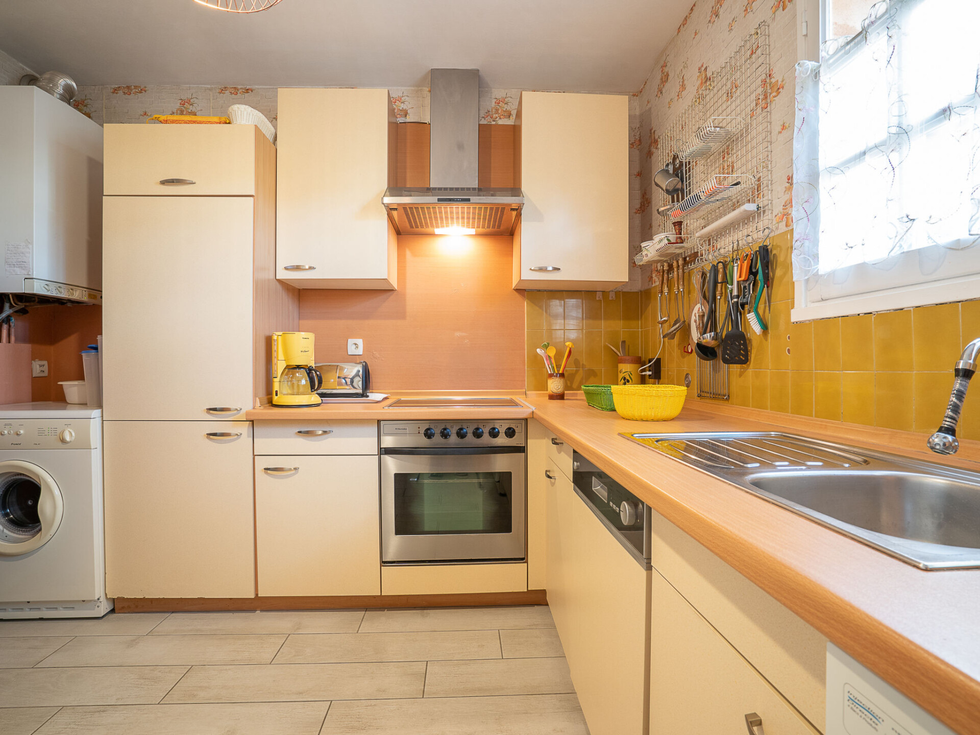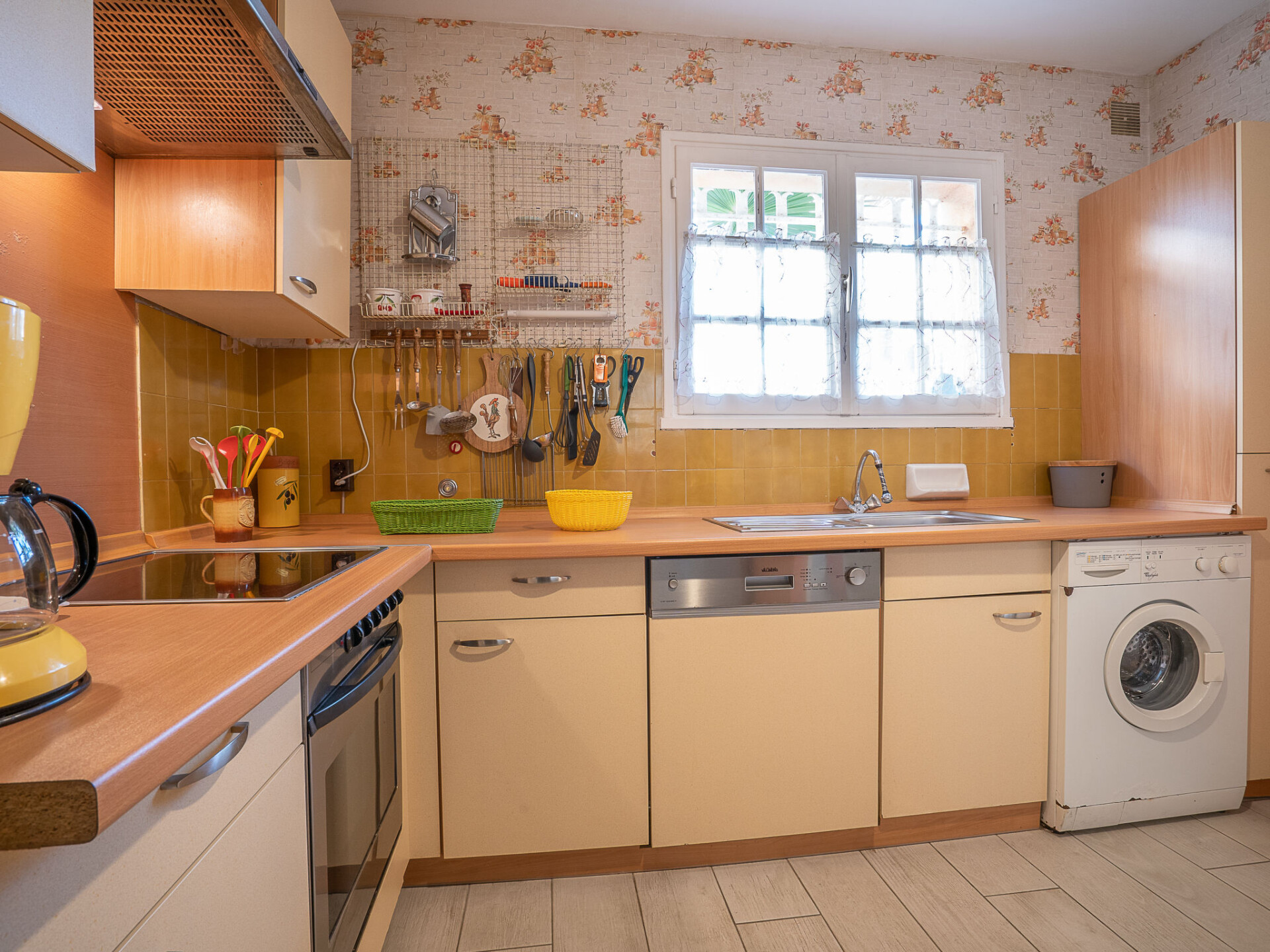 Huis 4-kamers 100 m2 op 2 verdiepingen. Woon-/eetkamer met TV. Uitgang naar de tuin, op het noordwesten. Keuken (oven, afwasmachine, 4 keramische glas kookplaten, broodrooster, magnetron, diepvriezer, elektrische koffiemachine). Aparte WC. Bovenverdieping: 1 kamer met 1 2-pers bed (2 x 90 cm, lengte 190 cm), elektrische verwarming en air-conditioning. 1 kamer met 1 2-pers bed (140 cm, lengte 190 cm), elektrische verwarming en air-conditioning. 1 kamer met 1 2-pers bed (140 cm, lengte 190 cm), elektrische verwarming en air-conditioning. Douche/WC. Gas-verwarming. Tuin 500 m2. Terrasmeubelen. Ter beschikking: wasmachine, droger, strijkijzer. Internet (Internet (WiFi), extra). Parkeerplaats. Rookmelders.