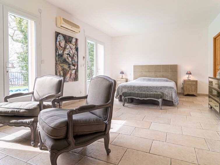 "L'Esquirou", huis 4-kamers 180 m2 op 2 verdiepingen. Licht, modern en smaakvol ingericht: woon-/eetkamer met eettafel, Sat-TV en DVD. Uitgang naar het terras. 1 kamer met 1 2-pers bed (160 cm), douche en air-conditioning. 1 kamer met 2 bedden. Open keuken (oven, afwasmachine, 5 inductiekookplaten, broodrooster, waterkoker, magnetron, diepvriezer, elektrische koffiemachine). Uitgang naar het terras. Douche/WC. Bovenverdieping: 1 kamer met 1 2-pers bed (160 cm), air-conditioning. Badkamer, aparte WC. Gas-verwarming. Terras overdekt. Terrasmeubelen, barbecue, ligstoelen (4). Uitzicht op de tuin. Ter beschikking: wasmachine, droger, strijkijzer, kinderbed. Internet (Internet (WiFi), gratis). Rookvrij huis. Maximaal 2 huisdieren/honden toegestaan. Rookmelders.