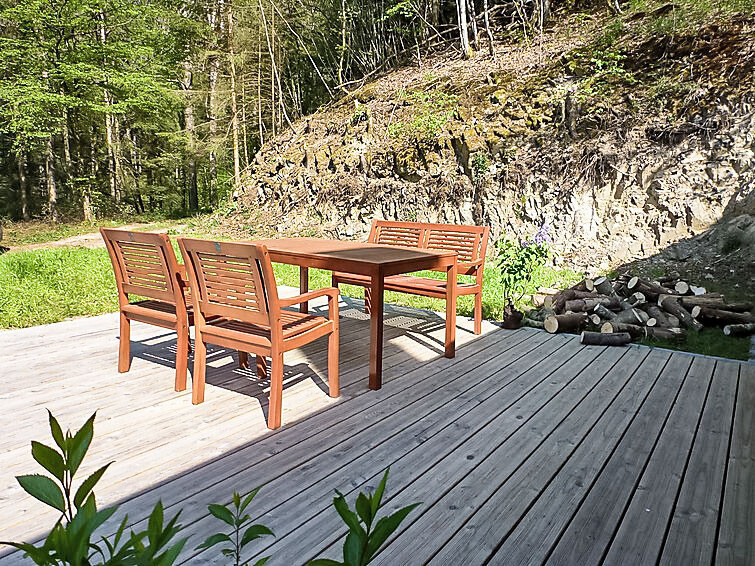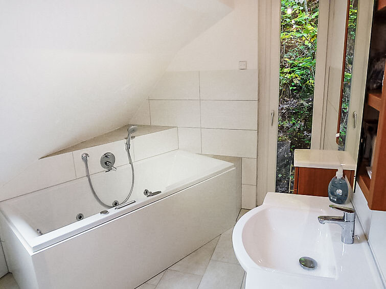 Huis 5-kamers 140 m2 op 2 verdiepingen. Zeer smaakvol en met veel hout ingericht: woon-/eetkamer met stereo-installatie en tegelkachel. Uitgang naar het terras. 1 kamer met 1 2-pers bed (160 cm, lengte 200 cm). 1 kamer met 1 2-pers bed (140 cm, lengte 200 cm). Open keuken (oven, afwasmachine, 4 keramische glas kookplaten, magnetron, elektrische koffiemachine). Douche/WC, aparte WC. Bovenverdieping: (steile trap) woonkamer met Sat-TV (Flatscreen TV), stereo-installatie. 1 2-pers. kamer met douche/WC en hot tub. Terrasmeubelen, barbecue (verrijdbaar). Ter beschikking: wasmachine, kinderstoel. Internet (Internet (WiFi), gratis). Rookvrij huis. Maximaal 2 huisdieren/honden toegestaan.
