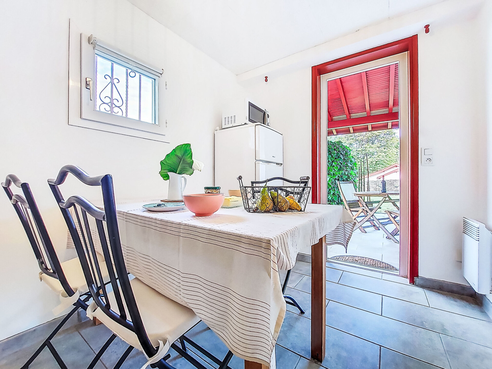 Soustons: Klein bijgebouw "L'imprévu". Soustons, in de plaats, 500 m van het centrum, centrale, rustige ligging, 7 km van zee, 7 km van het strand, aan een doodlopende weg. Voor alleengebruik: tuin 100 m2 (niet omheind), parkeerplaats (voor 2 auto's). Winkel 1 km, supermarkt 3 km, restaurant, bakkerij 500 m, centrum te voet bereikbaar in 2 minuten, bushalte 1.5 km, zandstrand "Soustons Plage" 7 km, thermaalbad 25 km. Jachthaven 30 km, golfterrein (18 holes) 15 km, zeilschool 2 km, tennis 3 km, manege 10 km. Attracties in de buurt: Seignosse 11 km, Dax 25 km, Hossegor 15 km, Bayonne 47 km. Auto noodzakelijk. De eigenaar woont op hetzelfde terrein.