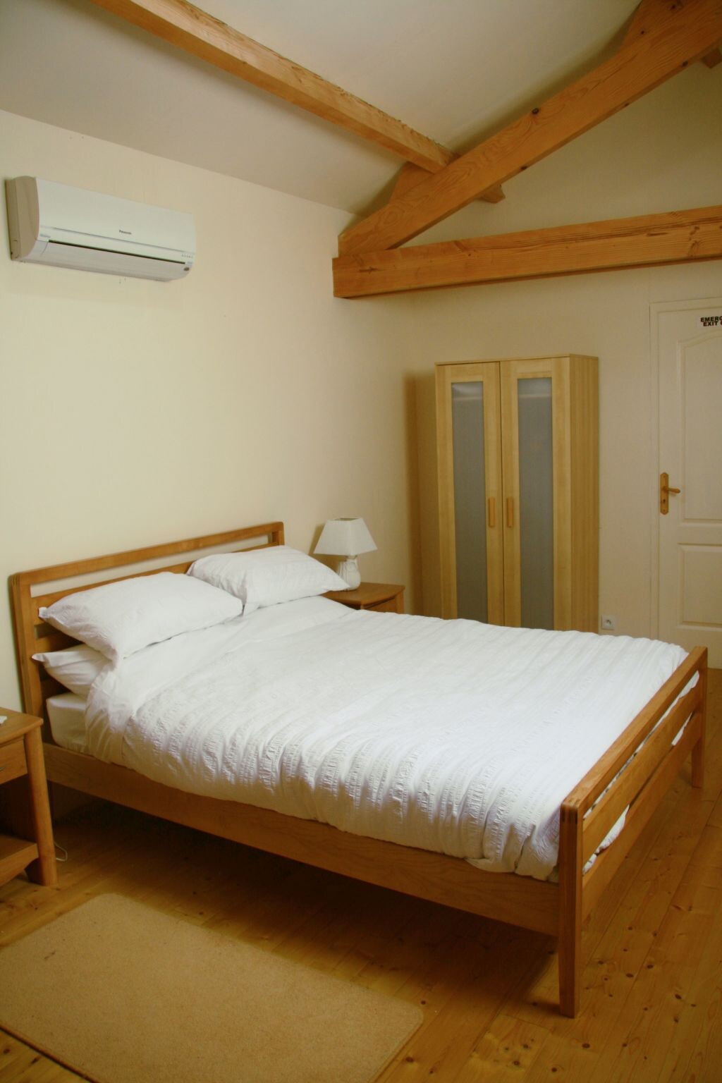 These converted barns are located in a small commune among rolling fields. Surrounded by Loire Valley vineyards. Quiet and tranquil surroundings for total relaxation and privacy.We are in a small Hamlet our nearest town is Montreuil Bellay 8km from here. We are 30km south of Saumur. The barns sit in a courtyard looking out on to the gardens. Both barns have a terrace with garden furniture and sunshade and barbecue. The seating outside the large barn will seat 16 people. The swimming pool is fenced and locked to prevent children from accessing without and adult. The pool is open May to September and heated to a minimum of 25 degrees. There is plenty of poolside seating and umbrellas for shade. There is a large car park that accommodates 8 cars We can supply a paddling pool for infants. We have bicycles for adults and children free to use.The property is made up of two converted barns adjacent to each other, set in gardens overlooking the swimming pool. The large barn has two floors and comprises of the following rooms: The ground floor is open plan with a living room with plenty of sofas, a flatscreen TV with built-in DVD, behind the lounge area is a large dining table that seats 10 to 12 people, that leads in to the kitchen, that is fully equipped with oven, dishwasher, fridge freezer and microwave,well-equipped with cooking utensils, coffee machine, kettle, and juicer. The kitchen also has a small table and chair. There is also a utility room with a toilet, a washing machine, a tumble dryer, clothes airer and high chair, Upstairs there is a kingsize ensuite room with shower, toilet and basin and a cot. The second bedroom is a kingsize bedroom, a third bedroom is a family room with a double bed and two single beds, and the fourth bedroom is a twin room with two single beds. This floor has a family bathroom with a bathtub, shower over the bath, toilet and basin. We do not supply bedding for the cots. The bedrooms all have air-conditioning and heating. The second barn is 11th century and comprises of high vaulted ceilings, this barn is all on the ground floor and has wide doors and corridor. This barn has an open plan, kitchen, living and dining area. The kitchen has an oven, microwave, fridge freezer, washer dryer, fully equipped kitchen, coffee machine, toaster, and kettle. The utility room has an airer, iron, ironing board and high chair. The dining table seats 4 people. The lounge has TV, DVD player, large sofa and chair and a sofa bed that sleeps 2. The bedrooms comprise of a large high ceiling kingsize room with a baby cot and a twin room. All bedrooms have high-quality linen and towels, a hairdryer, dressing table, chest of drawers and wardrobe. We also supply pool towels and wraps for the cooler evenings. There is a blue tooth speaker in each barn you can use both indoors and outdoors.The nearest town with its restaurants and supermarkets is approximately 8km away. There are some fabulous places to explore, Thoaurs Saumur, Chinon, and Angers. We can recommend fantastic chateaux and other attractions to visit. Center Parcs is about 8km away and you can book advance day tickets. The highlight is the great array of vineyards locally and we can arrange tastings and transport to them.Please note that the holiday home is in a very rural area. Some bicycles 2 which are children's will be at your disposal, free of charge. Furthermore, there is a cot for small children in both holiday homes. There is a well-stocked bar on the site open at guests request. This is not licenced and works on an honesty box basis, equipped to play music from your favourite playlist. On arrival, you will find tea, coffee, milk and water to get you started, and a complimentary bottle of wine. We can offer a pre-arrival shop, breakfast and dinner for additional charges, and we also offer lift service to local restaurants at a small charge. 878879626 00017