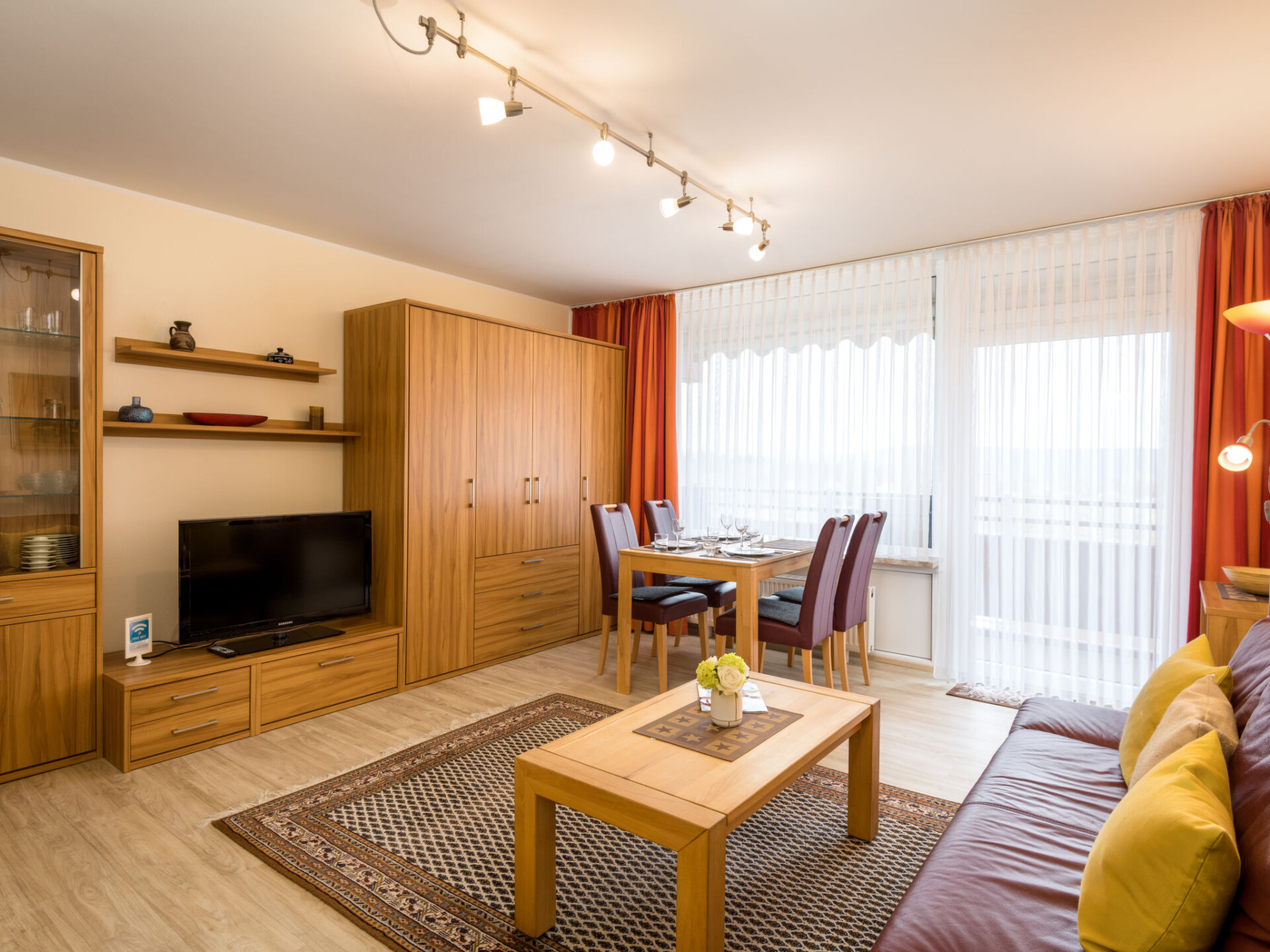 Lahnstein 12 km van Koblenz: Flatgebouw "Ferienpark Rhein-Lahn". In de wijk Lahnstein auf der Höhe, 4 km van het centrum van Lahnstein, 12 km van het centrum van Koblenz, 4 km van de rivier. Voor medegebruik: overdekt zwembad (11 x 6 m, 120 cm diepte) met trap. Douche/WC bij het zwembad. In het complex: receptie, Internet (WiFi), tafeltennis, lift, centrale verwarming, wasmachine, droger (voor medegebruik, extra). Parkeerplaats bij het huis. Oplaadstation. Levensmiddelenwinkel 200 m, supermarkt 4.5 km, restaurant 800 m, bakkerij 4.5 km, fietsverhuur 4.5 km, centrum te voet bereikbaar in 45 minuten, bushalte "Kurklinik" 200 m, treinstation "Koblenz (HBF)" 12 km, park "Kurpark" 200 m, openluchtzwembad 1.5 km, overdekt zwembad 5 km, thermaalbad "Emser Therme" 10 km. Golfterrein (18 holes) 16 km, tennis 500 m, midgetgolf 6 km, wandelroutes 100 m vanaf het huis, fietspad 4.5 km, kinderspeelplaats 100 m. Attracties in de buurt: Burg Lahneck 3 km, Marksburg 7 km, Deutsches Eck Koblenz / Seilbahn 10 km, Schloss Stolzenfels 13 km. Wandelgebied Lahn-Höhenweg 100 m, Rheinsteig (11) 100 m, Jakobswege Rhein-Lahn. Auto noodzakelijk.