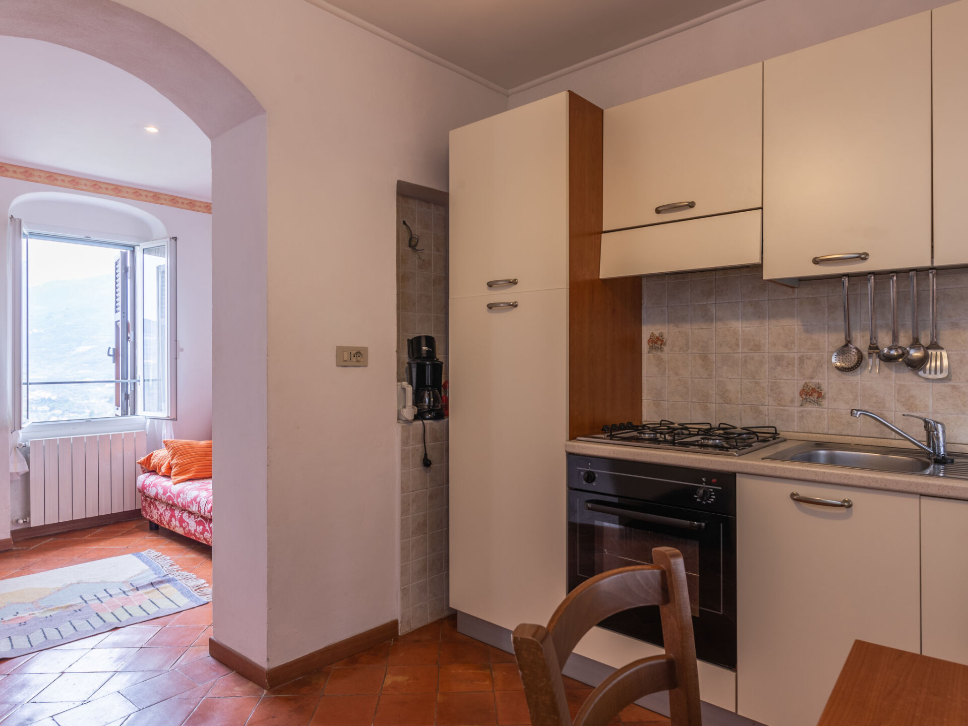 "Lorenzo", appartement 2-kamers 50 m2 op de 3e verdieping. Licht, doelmatig en gezellig ingericht: woonkamer met Sat-TV. 1 kamer met 1 2-pers bed (160 cm), 1 opklapbed (80 cm). Keuken (oven, 4 kookpitten (vlammen), diepvriezer, elektrische koffiemachine) met eettafel. Uitgang naar het terras. Douche/WC. Gas-verwarming. Terras. Terrasmeubelen, ligstoelen. Zeer mooi uitzicht op zee, het landschap en de plaats. Ter beschikking: wasmachine. Internet (Internet (WiFi), gratis). Privé ingang. IT008022C2SU5YEK86