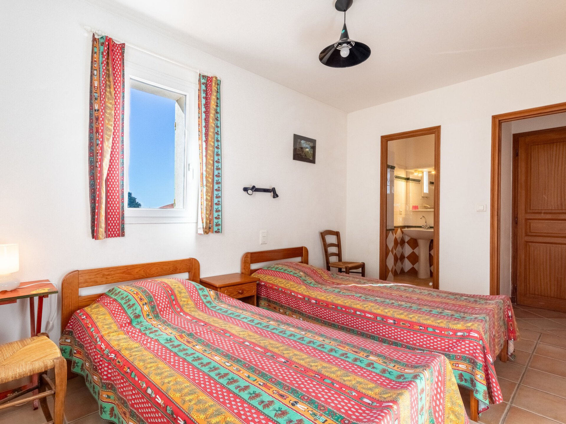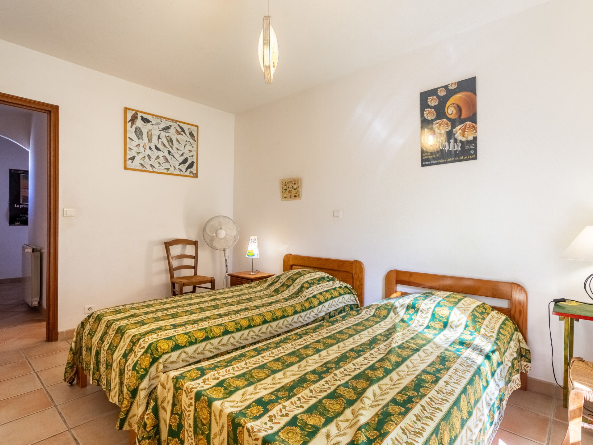 Appartement 3-kamers 80 m2 op de 1e verdieping. Mooi ingericht: salon met TV en ventilator. Eetkamer. Uitgang naar het terras. 1 kamer met 2 bedden (90 cm, lengte 190 cm), ventilator. 1 kamer met 2 bedden (90 cm, lengte 190 cm), douche en ventilator. Open keuken (4-pits kookplaat, mini-oven, afwasmachine, broodrooster, waterkoker, magnetron, diepvriezer, elektrische koffiemachine). Uitgang naar het terras. Douche, aparte WC. Verwarming. Groot terras 25 m2 gedeeltelijk overdekt, op het noordoosten gelegen. Terrasmeubelen. Ter beschikking: wasmachine, strijkijzer, kinderbed tot 2 jaar. Internet (Internet (WiFi), gratis). Parkeerplaats (omheind). TV alleen FR. Rookmelders. De woonkamer is open naar de eetkamer. 08310083-12919-0098