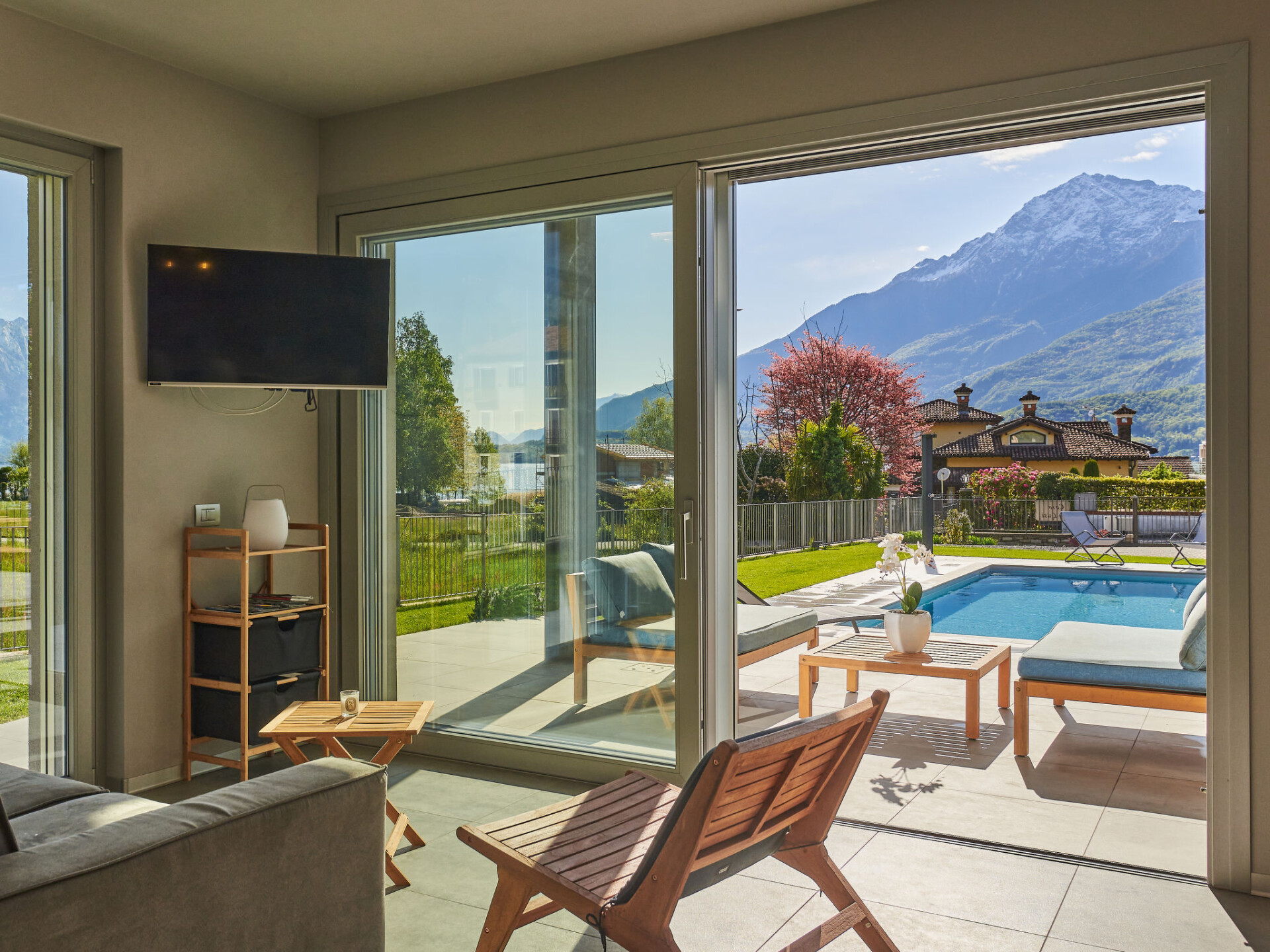 Moderne, comfortabel huis "Lusi", bouwjaar 2022. 1.5 km van het centrum van Dongo, 50 km van het centrum van Como, 42 km van het centrum van Lugano, villa wijk, 80 m van het meer. Voor alleengebruik: terrein 600 m2 (omheind) met gazon, openluchtzwembad hoekig (8 x 4 m, seizoensgebonden beschikbaarheid: 01.Apr. - 01.Okt.) met zout-elektrolyse. Buitendouche, onderhoud zwembad door de eigenaar/tuinman. Overdekte parkeerplaats (voor 2 auto's). Levensmiddelenwinkel 400 m, supermarkt 1 km, restaurant 900 m, bar 200 m, bakkerij 300 m, fietsverhuur 1.6 km, bushalte "C10 Como-Menaggio-Colico" 400 m, treinstation "Colico" 19 km, grasstrand 80 m, openluchtzwembad 4.5 km. Jachthaven, jachthaven 1.5 km, golfterrein (18 holes) 18 km, surfschool 500 m, zeilschool 500 m, kinderspeelplaats 350 m. Attracties in de buurt: Palazzo Gallio-Gravedona, Menaggio, Bellagio, Varenna. Bekende meren kunnen gemakkelijk worden bereikt: Lago di Mezzola.