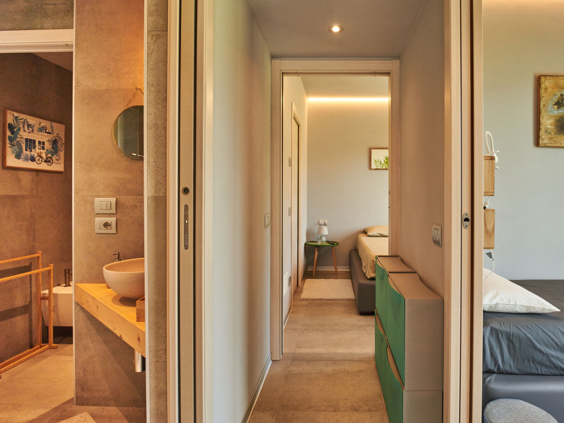 Huis 3-kamers 80 m2. Licht, comfortabel en luxueus ingericht: woon-/slaapkamer met 1 divanbed (120 cm), eettafel en Sat-TV (Flatscreen TV). Uitgang naar de tuin, naar het terras. 1 2-pers. kamer met Kleedkamer met Sat-TV (Flatscreen TV). Uitgang naar de tuin. 1 kamer met 2 bedden en Sat-TV (Flatscreen TV). Uitgang naar de tuin. Open keuken (oven, afwasmachine, 4 inductiekookplaten, broodrooster, waterkoker, magnetron, diepvriezer, elektrische koffiemachine). Uitgang naar het terras. Douche/bidet/WC. Vloerverwarming. Solarstroom. Natuurstenen vloeren. Groot terras gedeeltelijk overdekt, groot tuin. Barbecue, ligstoelen (2). Mooi uitzicht op het meer en de bergen. Ter beschikking: wasmachine, kinderstoel, kinderbed tot 2 jaar. Parkeerplaats (overdekt, 2 Auto's). Koelsysteem (geen airconditioning): van 03.06. - 02. IT013090C2COE983ED