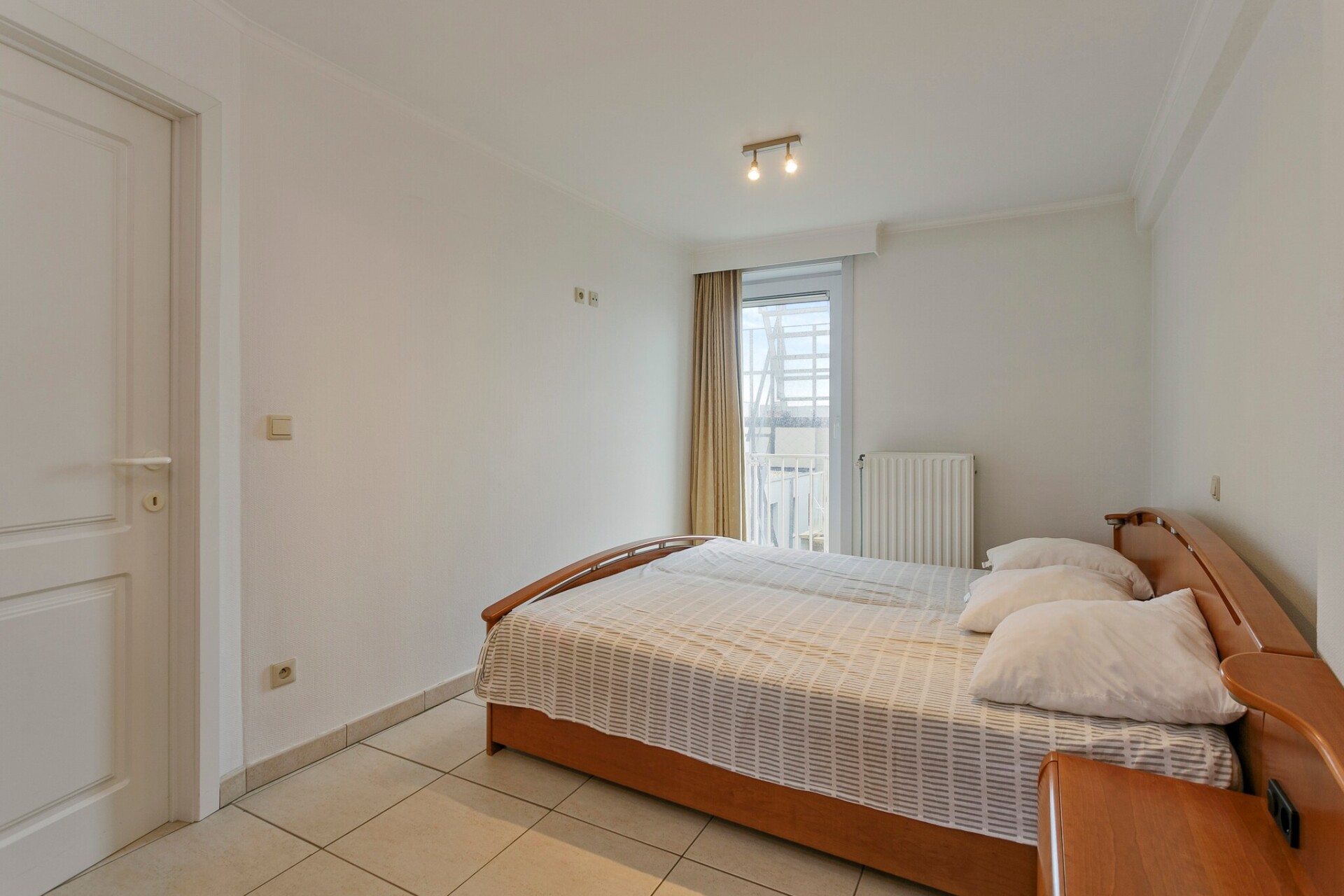 Dit ruime appartement met twee slaapkamers op de 7e verdieping biedt een comfortabel verblijf voor maximaal zes gasten. De woonkamer is voorzien van een gezellige hoekbank, een flatscreen-tv met digitale Telenet-kanalen, een dvd-speler en een radio. Een eettafel met vier en zes stoelen biedt voldoende zitplaatsen. Het appartement heeft twee tweepersoonsslaapkamers, een met een bed van 160x200 cm en de andere met een groter bed van 180x200 cm. Een slaapbank in de woonkamer biedt extra slaapruimte. Huisdieren zijn niet toegestaan en roken is binnen verboden.