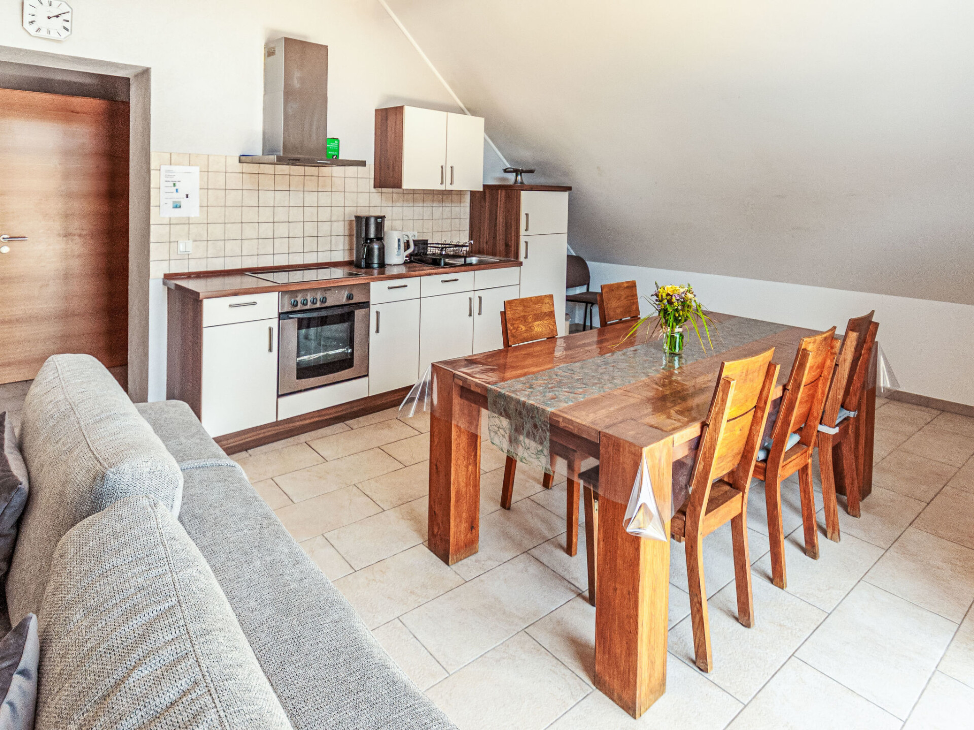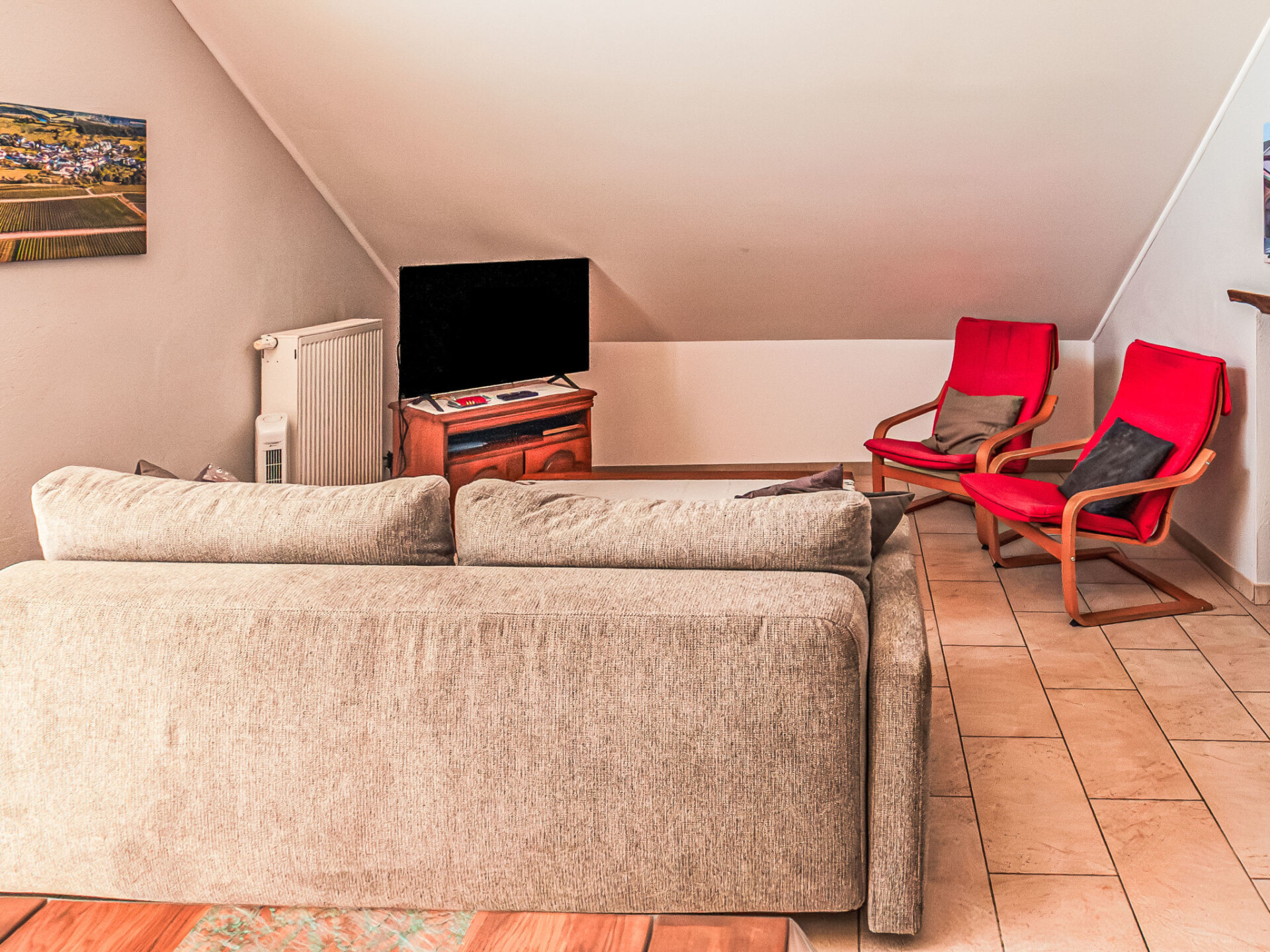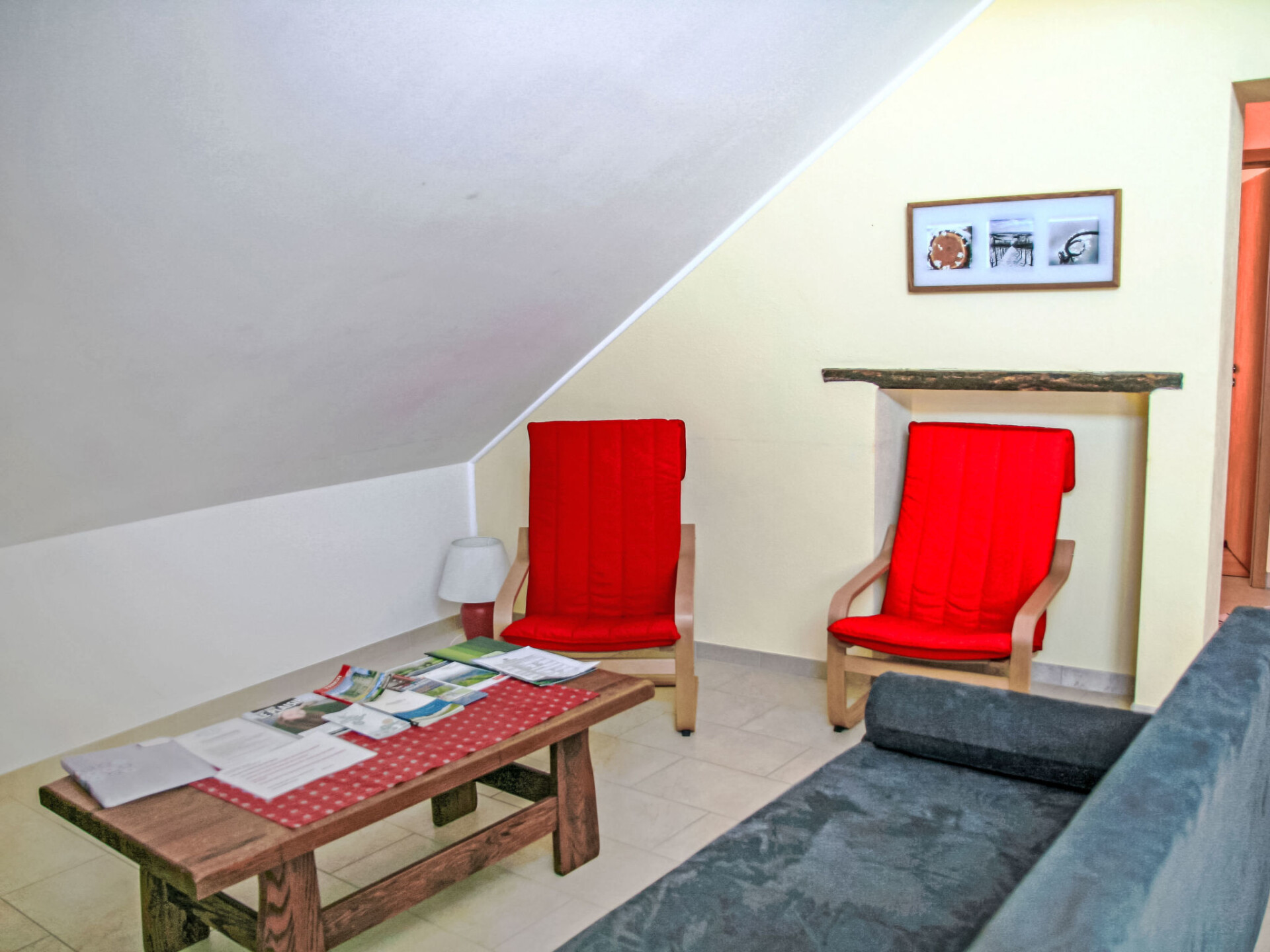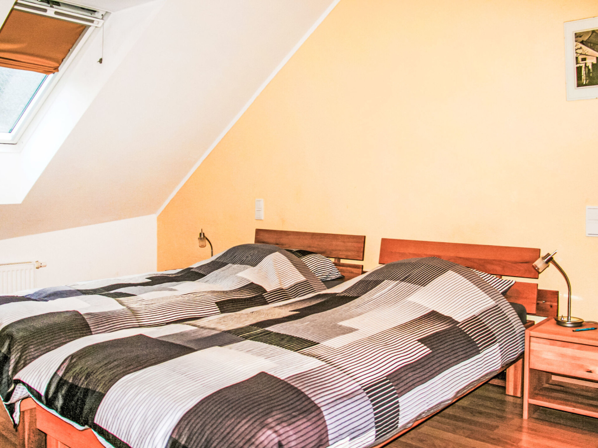 Appartement 3-kamers 75 m2 op de 2e verdieping. Ruim en licht, afgeschuinde daken, comfortabel ingericht: hal. Woon-/eetkamer met 1 2-pers divanbed, eethoek en Kabel-TV. 2 2-pers. kamers, elke kamer heeft 2 bedden (90 cm, lengte 200 cm). Open keuken (4-pits kookplaat, oven, magnetron, elektrische koffiemachine). Douche/WC. Verwarming. Ter beschikking: Internet (Internet (WiFi), gratis). Koelkast zonder vriesvak, rookvrij huis.