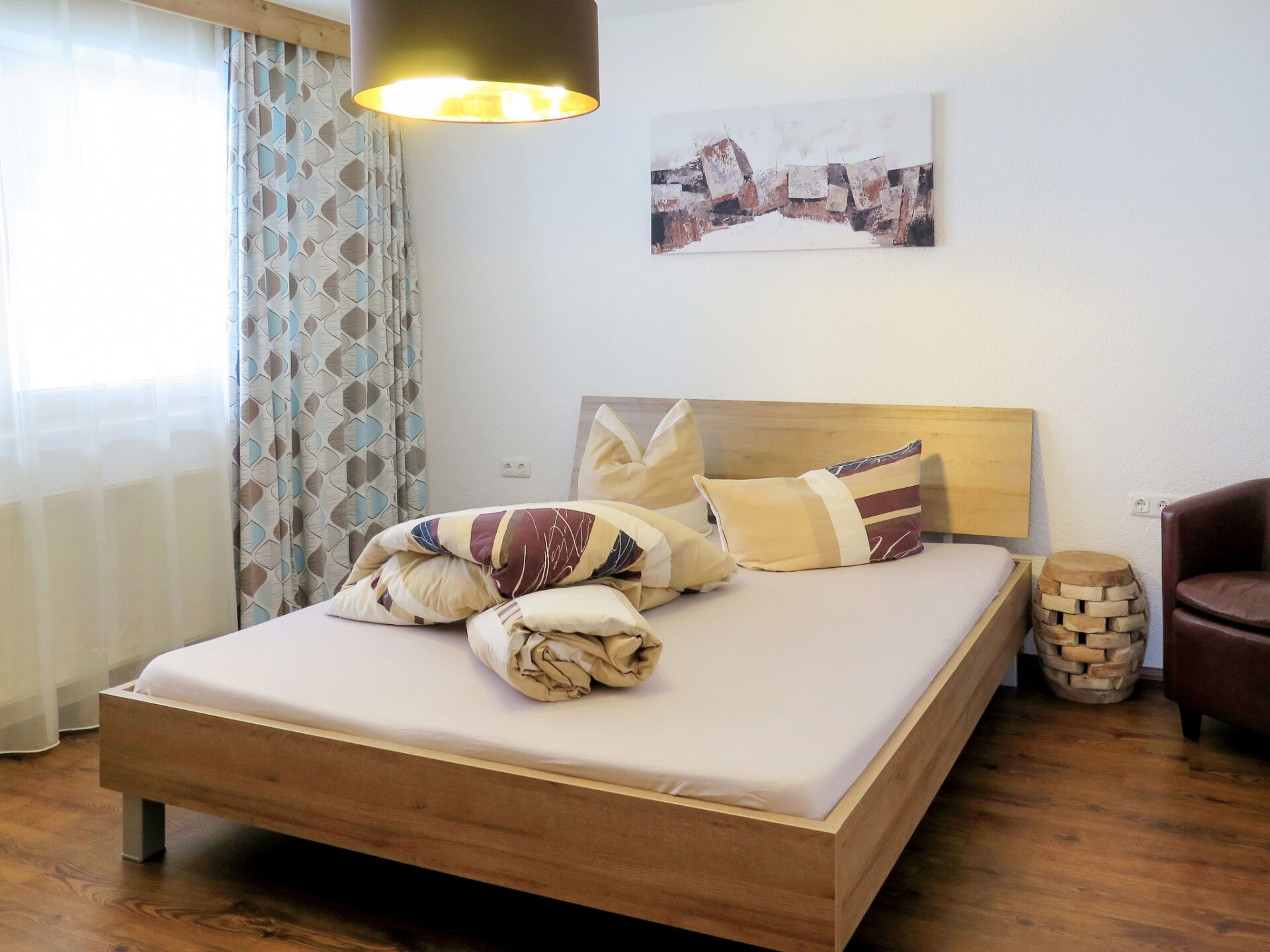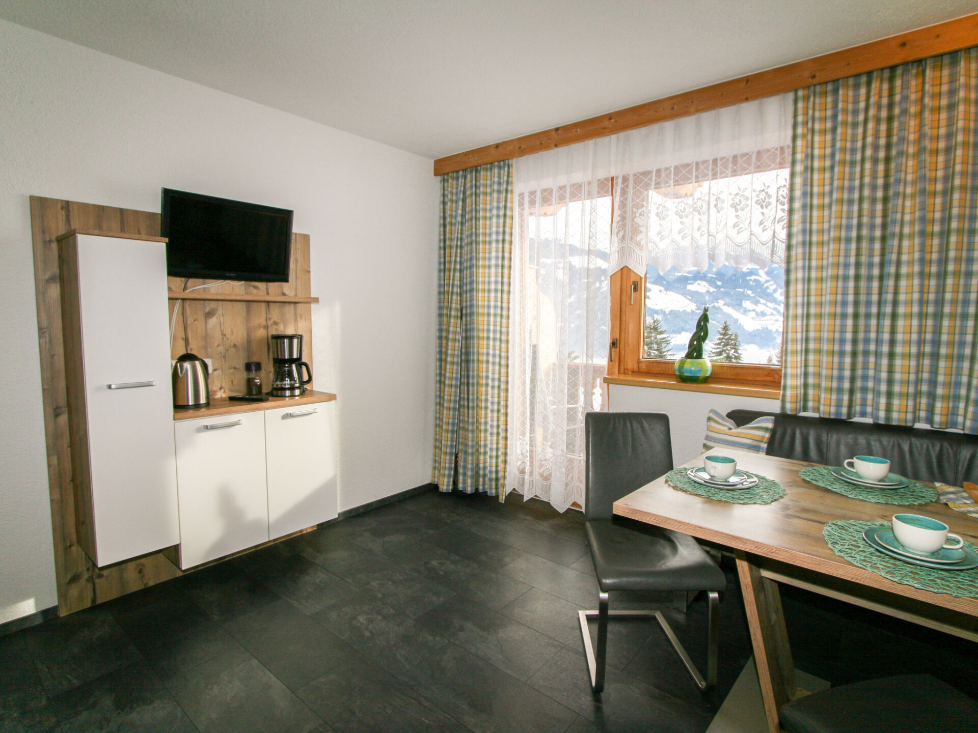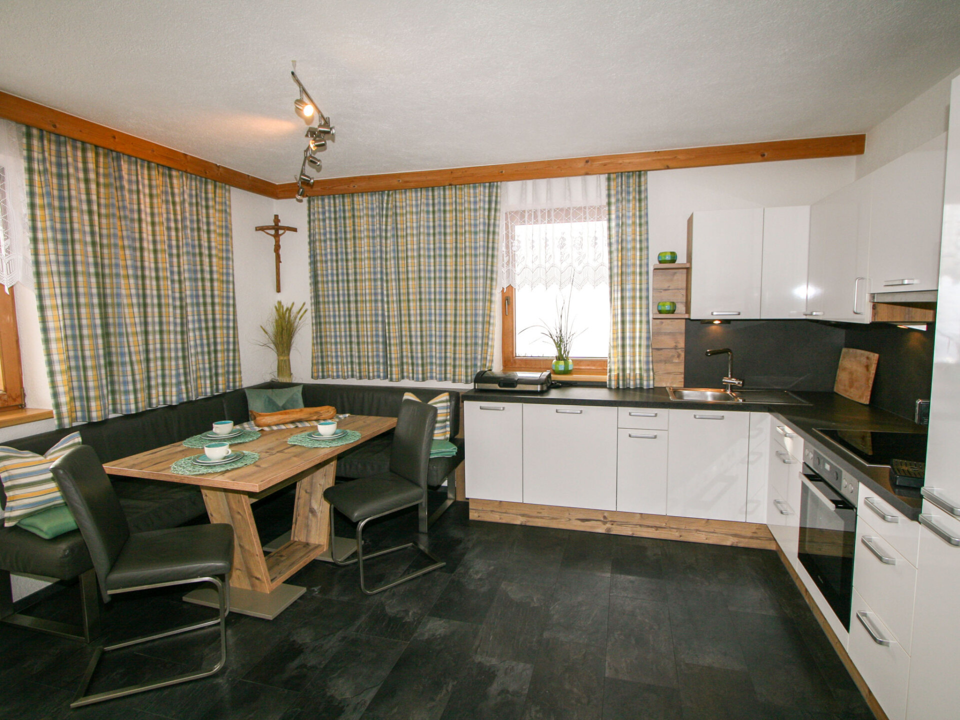 "Luxner", appartement 3-kamers 65 m2 op de 2e verdieping. Rustiek ingericht: 2 2-pers. kamers. Woonkeuken (oven, afwasmachine, 4 keramische glas kookplaten, broodrooster, waterkoker, elektrische koffiemachine) met 1 divanbed, eethoek en Sat-TV (Flatscreen TV). Uitgang naar het balkon. Douche/WC. Olie-verwarming. Vloerbedekking. Balkon. Balkonmeubilair. Mooi uitzicht op de bergen. Ter beschikking: kinderstoel, kinderbed. Internet (WiFi, gratis). Bedindeling is flexibel. Er zijn meer slaapmogelijkheden beschikbaar dan het maximaal toegestane aantal personen dat echter niet mag worden overschreden. Als er minder dan het maximale aantal gasten in de accommodatie verblijft, zijn niet alle slaapkamers beschikbaar voor gebruik.