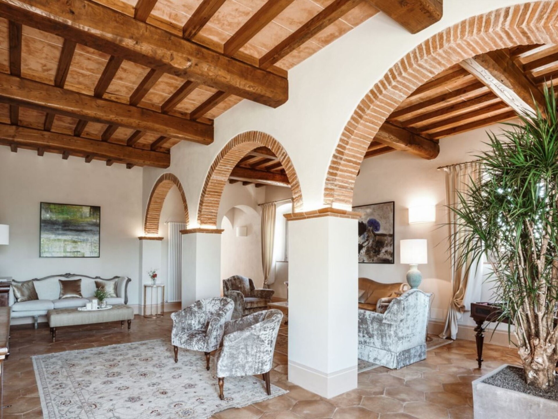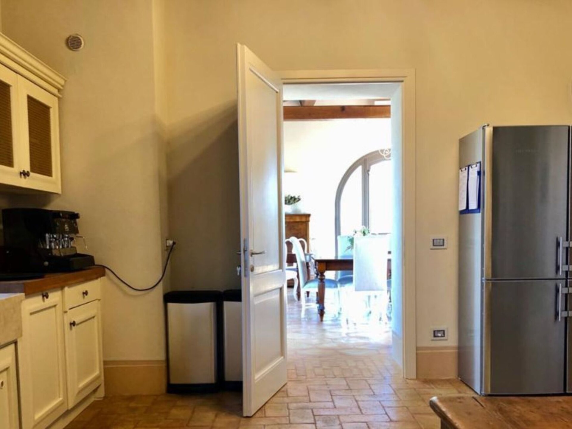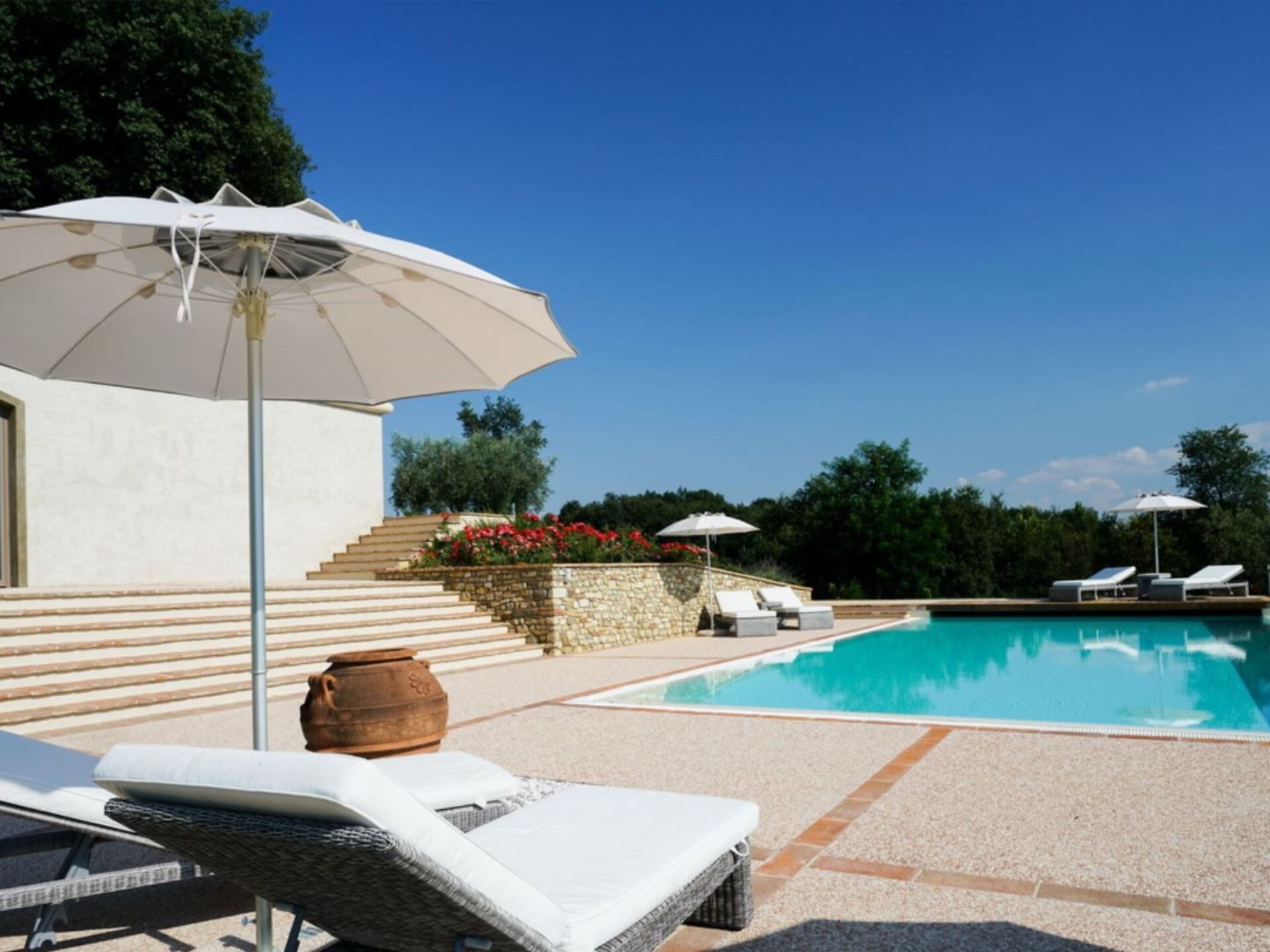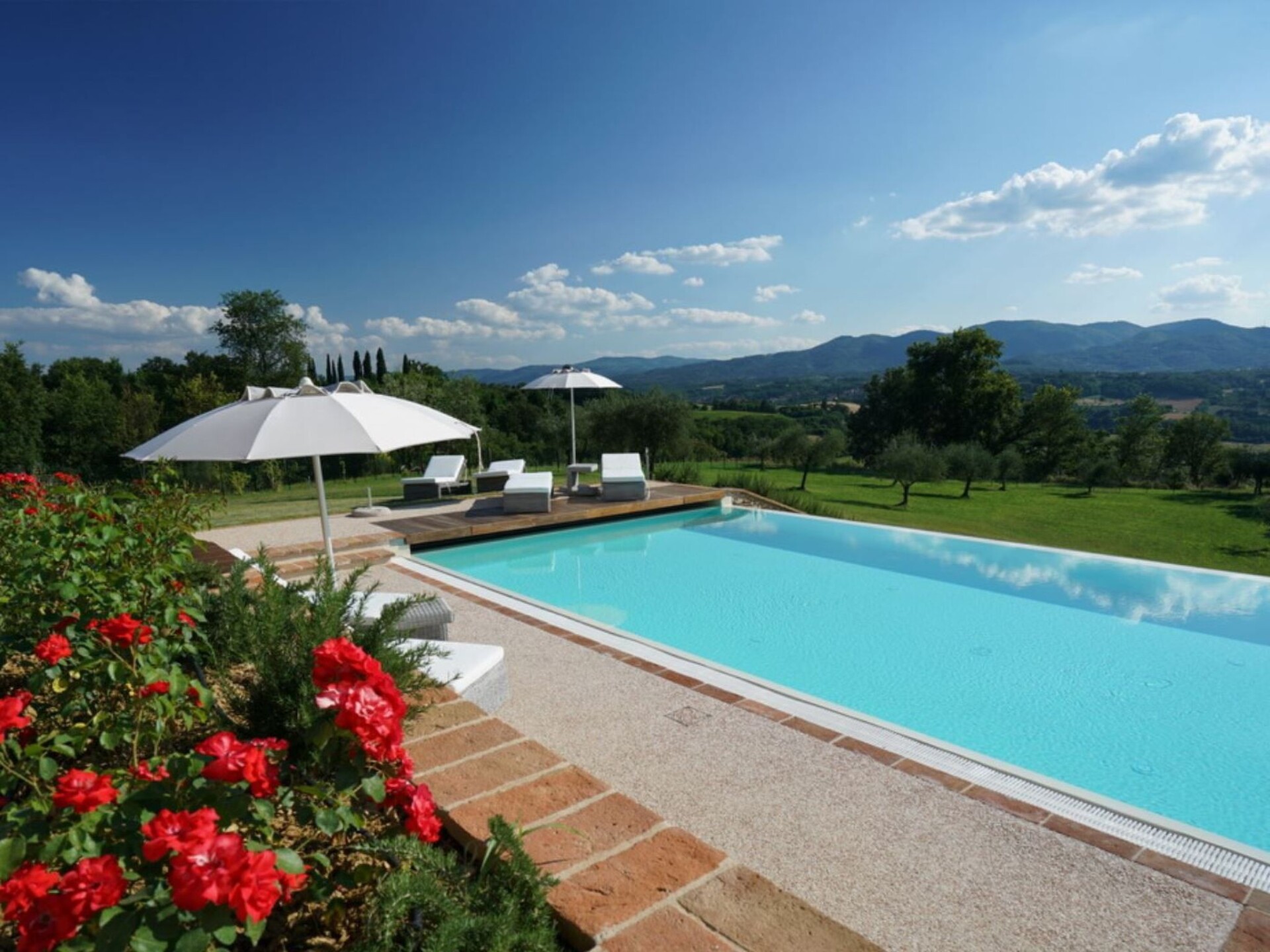 This villa has been extremely well renovated and provides the most fabolous, spacious site for a perfect holiday. It is an expansive house providing high standard of accommodation. Tasteful furnishing blend beautifully with the Tuscan arches and wooden beams. In an isolated situation garanting complete freedom, it is immersed in the Tuscan countryside while the Chianti Mountain range forms the backdrop. Surrounding the villa is a big and marvellus patio for “dining al fresco” and a large, mature garden in which there is a terrace overlooking the beautiful infinity pool with salt water. Villa Bianca is situated in the heart of Tuscany at southeast of Florence (reachable in a half a hour driving and 25 minutes by train) among the most beautiful areas like Chianti Classico, Val d’Ambra, Casentino National Park, Chianti Rufina, Mugello and Valdarno. Siena and Arezzo too are within easy reach either by the scenic country route or the Autostrada del Sole. This property is ideal for two or three families and group of friends who want to enjoy each other’s company in perfect privacy. Pool available from 8 of May till 16 of October.For stays of more than one week there is an additional cost for changing linen and weekly cleaning Two electric gates - Private infinity pool (14 x 7) with shower - Fitness area with sauna - Outside eating area with large terrace, patio and BBQGround floor Living room with TV SATKitchen with 5 Stoves, dishwasher, oven, coffee machine, fridge, toaster and kettleFirst floor 3 Double bedded rooms with ensuite shower rooms and hairdryer2 Twin bedded rooms with ensuite shower rooms and hairdryer1 Single bedded room next to one of the double rooms with the same entranceAnnex 2 Double bedded rooms with ensuite shower rooms and hairdryer1 Twin bedded room with ensuite shower room and hairdryerRestaurant Il Cannicchio 3 kmThe Mall (Luxury brands Outlet) 5 KmFirenze 27 KmGreve in Chianti 30 KmArezzo 51 KmBucine (Valdambra) 31 KmSiena 64 KmDicomano (Mugello) 35 KmSan Gimignano 81 Km. IT048035B4GDKFKOIU