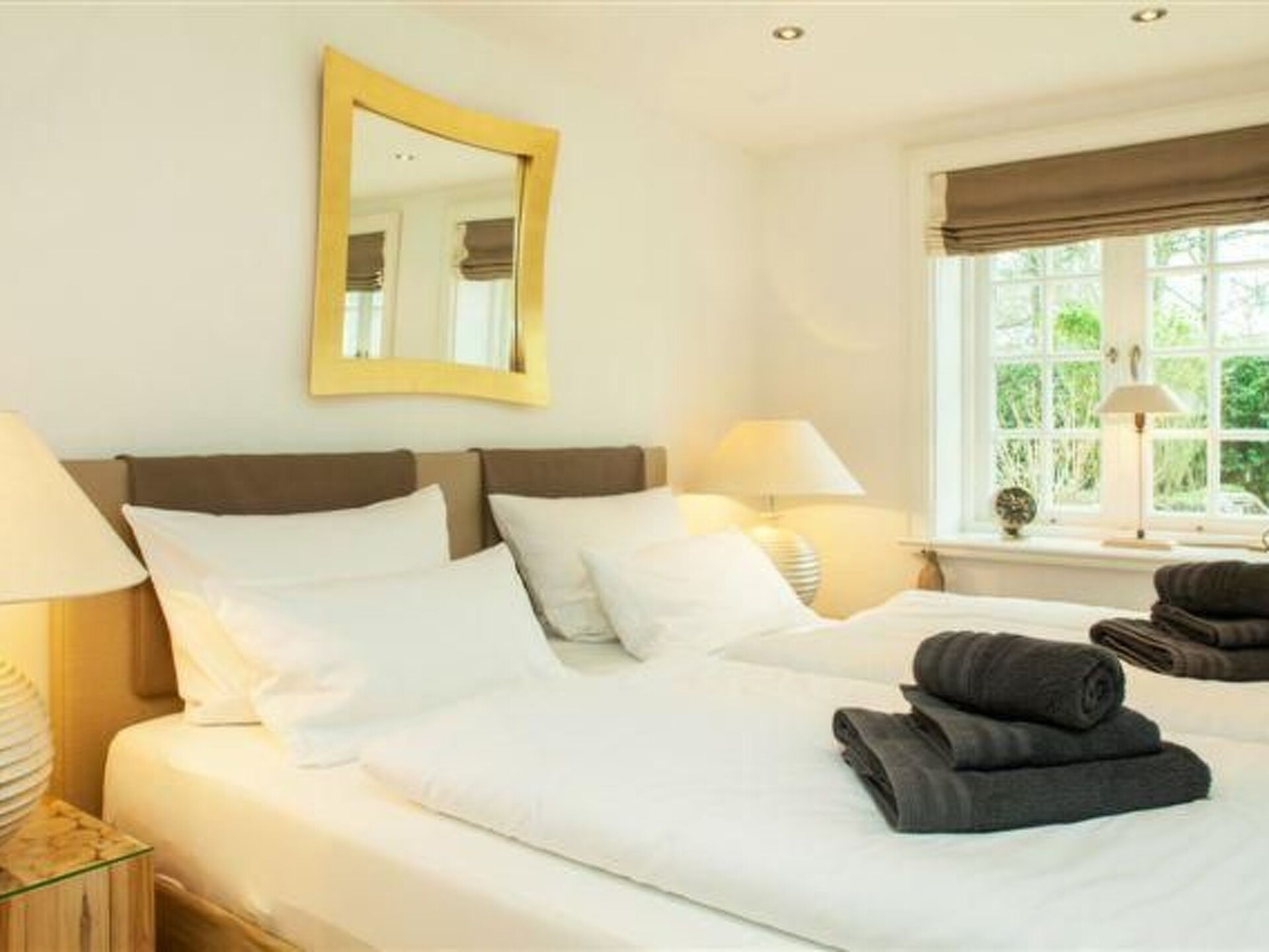 Deze vakantiewoning bevindt zich in een huis met rieten dak, op een rustige locatie in het zuiden van Tinnum op het eiland Sylt. Buiten is er een tuin met tuinmeubilair, rieten strandstoel en ligstoelen. Er is ook een eigen parkeerplaats voor uw auto. Het huis ligt rustig ingebed op en een 1100 m² groot perceel. De vakantiewoning ligt op de begane grond van het landhuis Treskersand en heeft een woonoppervlakte van 45 m². Ze biedt maximaal vier personen voldoende plaats en bestaat uit volgende kamers: woonkamer met traditionele kachel, SAT-TV, stereo-installatie en een tweepersoonsslaapbank die uitgetrokken kan worden. Verder is er een volledig ingerichte en moderne landhuiskeuken met eetruimte en daarnaast een slaapkamer met groot tweepersoonsbed, SAT-TV. De badkamer beschikt over een grote douche met toilet. Het zal u aan niets ontbreken. De accommodatie ligt op een rustige locatie aan de rand van Tinnum. Winkels liggen ongeveer op een afstand van een kilometer. Het strand is ca. twee kilometer verderop. De dichtstbijzijnde bakker bereikt u lopend binnen vijf minuten. De dierentuin Tinnum is 750 meter van het huis verwijderd. Een reisbedje voor kinderen is beschikbaar. Honden op afspraak. De woning is voorzien van hoogwaardige eiken planken, twee LED-televisies en vloerverwarming. In de keuken bevindt zich een Nespresso-automaat. De woning heeft van de DTV (Duitse Toeristen Verbond) 5-sterren-luxe gekregen. Landhuis Treskersand is actueel een van de mooiste gerestaureerde huizen met rieten dak op het eiland Sylt. Basisinformatie - Huisdieren toegestaan: 2 - bevindt zich in: woonwijk - type woning: wooneenheid in een huis - type gebouw: eengezinshuis - verdieping waarop het object zich bevindt: begane grond - totaal aantal verdiepingen in het gebouw boven de begane grond: 1 - perceeloppervlakte: 1100 m² - bouwjaar: 1760 - laatste uitgebreide renovatie: 2012 - vrijstaand object - bescherming tegen inkijk - huiseigenaar woont op het perceel - niet-rokers - aantal slaapkamers: 1 - aantal badkamers: 1 Top eigenschappen - wifi - verwarming: overal - vloerverwarming: overal - terras - tuin: voor alleengebruik - privéparkeerplaatsen in totaal: 1 - ㄴ daarvan parkeerplaatsen in garage: geen - ㄴ daarvan parkeerplaatsen in carport: geen - ㄴ daarvan privéparkeerplaatsen buiten: 1 Slapen in de leefruimte - tweepersoonsslaapbank slaapkamer 3 - tweepersoonsbed (1.80 m breed) Badkamer badkamer 3 - douche - toilet sanitaire voorzieningen in de vakantieaccommodatie - douche - toilet - föhn Koken/Wonen - koffiezetapparaat: koffiezetapparaat - koelkast/vriezer: diepvriesvak, diepvrieskast, koelkast - kookplaat: inductiekookplaat - afzuigkap - oven - broodrooster - magnetron - waterkoker - vaatwasser - theedoeken - aantal eettafels: 1 - maximaal aantal zitplaatsen: 5 - aantal woonkamers: 1 - open haard Entertainment - televisie: satelliet-tv - dvd-speler - muziekinstallatie - radio - cd-speler - gezelschapsspellen voor volwassenen Voor kinderen - kinderstoel Huishouden - strijkijzer - stofzuiger - kluis Buitenbereik - barbecueën niet toegestaan Omgeving - levensmiddelenzaak: 1,0 km - restaurant: 300 m - station: 2,1 km - vliegveld: 2,5 km - afstand openbaar vervoer: 500 m - strand: 2,0 km - openbaar zwembad: 2,0 km - mogelijkheid om paard te rijden: 500 m Bijzonderheden - huis met rieten daken