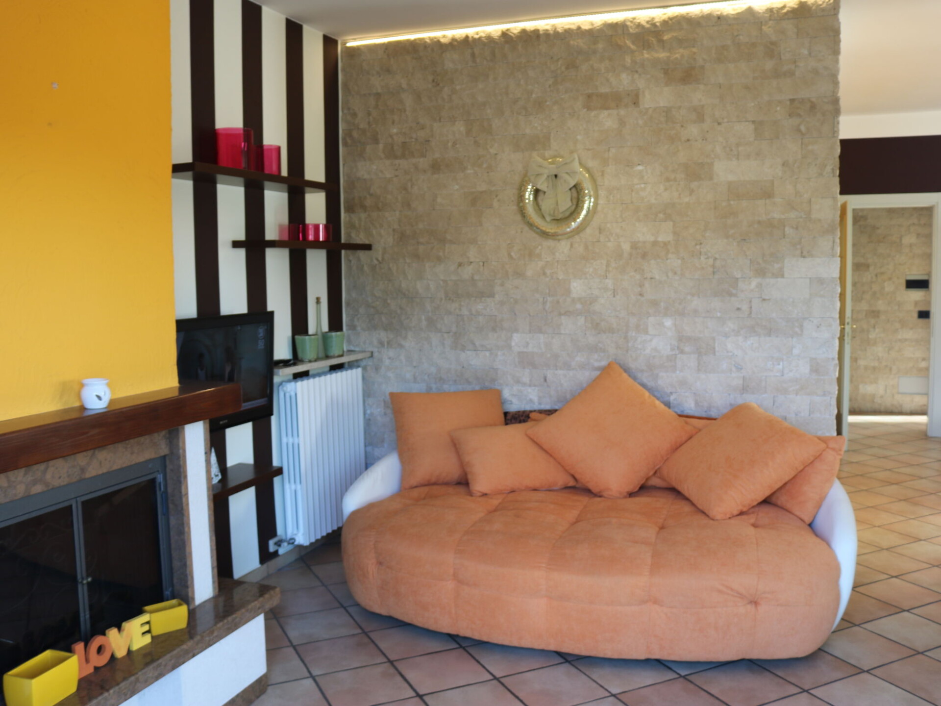 Appartement 4-kamers op de 1e verdieping. Mooi ingericht: Bovenverdieping: (buitentrap) groot woon-/eetkamer met open haard, eettafel en Sat-TV. Uitgang naar het balkon. 1 2-pers. kamer. 1 kamer met 2 bedden. 1 kamer met 1 divanbed. Open keuken (oven, afwasmachine, 4 keramische glas kookplaten, diepvriezer). Douche/bidet/WC. Gas-verwarming (extra). Balkon, groot tuin. Terrasmeubelen, barbecue, loggia. Ter beschikking: wasmachine. Internet (Internet (WiFi), gratis). Parkeerplaats (omheind, 2 Auto's) bij het huis. IT023043B4N9X9UKRM
