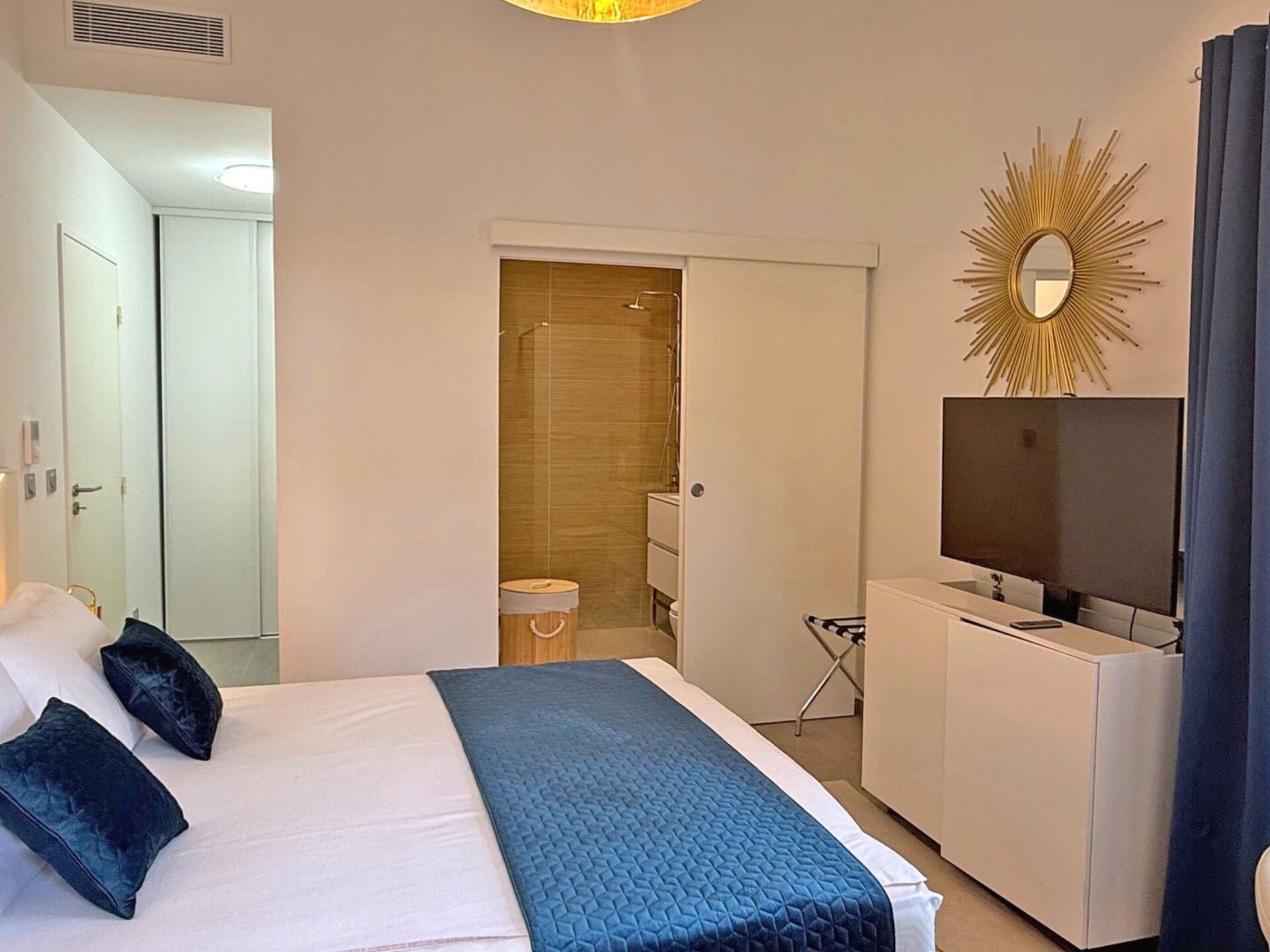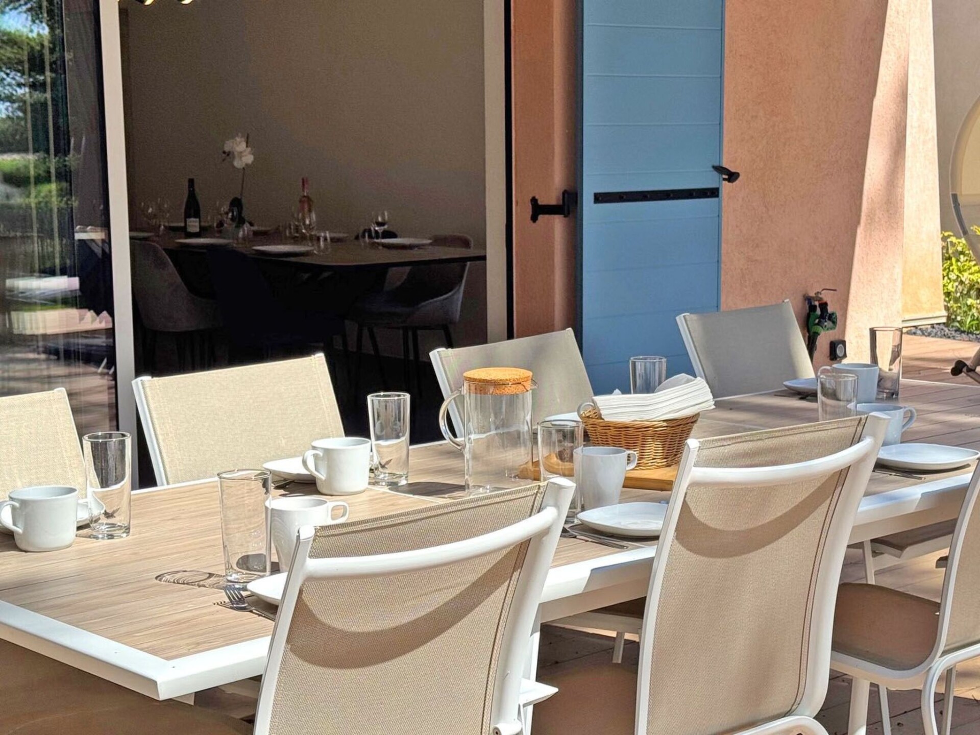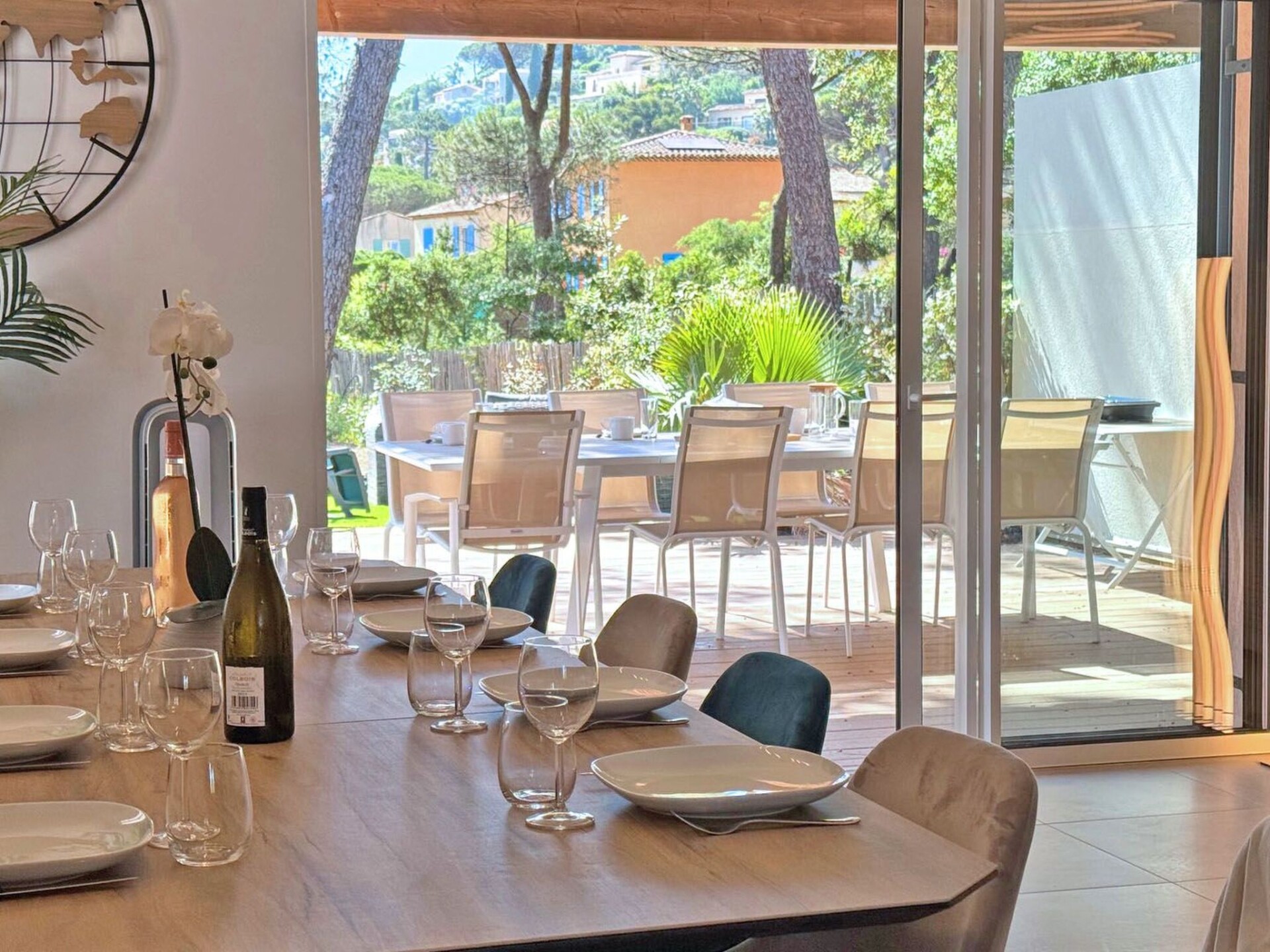 Maximaal 1 huisdier/hond toegestaan. Semi-detached house on one side - 4 rooms of 125m² on a fenced plot of 500m² - Residence Casa Di MareOn 2 levels - 10 people maximumCharming new semi-detached house for up to 10 people. It boasts a private swimming pool, air conditioning, Wi-Fi and a fully-equipped kitchen. Tastefully decorated, it will win you over with its spaciousness and privileged location just a few minutes' walk from the beach. It is located in a new, gated residence.Unclassified accommodation or awaiting classification*.Ground floor:- Beautiful air-conditioned living room with access to the garden and swimming pool, lounge with sofa bed (160) and armchair for all guests, large TV screen and dining area with extendable table.- Fully-equipped kitchen with central island, dishwasher, filter coffee maker, Nespresso machine, oven, microwave, 4-burner induction hob with extractor hood, electric kettle, fridge, freezer, toaster, etc.- Bedroom 1 with air conditioning: 2x90 single beds (or 180 double bed) with storage cupboard- Shower room with WC- Laundry room with washing machine and tumble dryerFirst floor:- Bedroom 2 with air-conditioning: Single beds 2x90 (or double bed 180) with storage cupboard- Bedroom 3 air-conditioned - sea view: Double bed 160 with storage spaceEn-suite shower room with shower, vanity unit and WC- Bedroom 4 Air-conditioned: Single beds 2x90 (or double bed 180) with storage cupboard- Shower room with bath and vanity unit- Separate WCOutside:- 4.5 x 2.2m swimming pool with safety cover - Closed from October to May- Covered terrace with family table, garden furniture, plancha and deckchairs- Boules pitch- Large garden of 500m² planted with trees- 2 parking spaces in front of the houseMiscellaneous :- Teleworking possible- Beach within walking distance- Private swimming pool, closed from October to May- Air conditioning throughout the house- WiFi (Fibre)- Quiet, wooded and secure residence- Pets welcome (on request)Distances from :- Sainte-Maxime town centre: 4000m- Shops: 4000m- Beach: 350mReception and key collection times:Monday to Friday between 3pm and 6pm maximum.Saturdays (July - August) between 4pm and 6pm maximum.Sundays and public holidays (except Saturdays): independent arrival from 3pm (key box, details given after booking).If you wish to arrive outside these times, please enquire before booking.Services included:- End-of-stay cleaning- Disposable mattress and pillow protectors- Kitchen towels- Bathroom matsHouse rules :- No parties or festive events- No smoking inside. 83115005318HT
