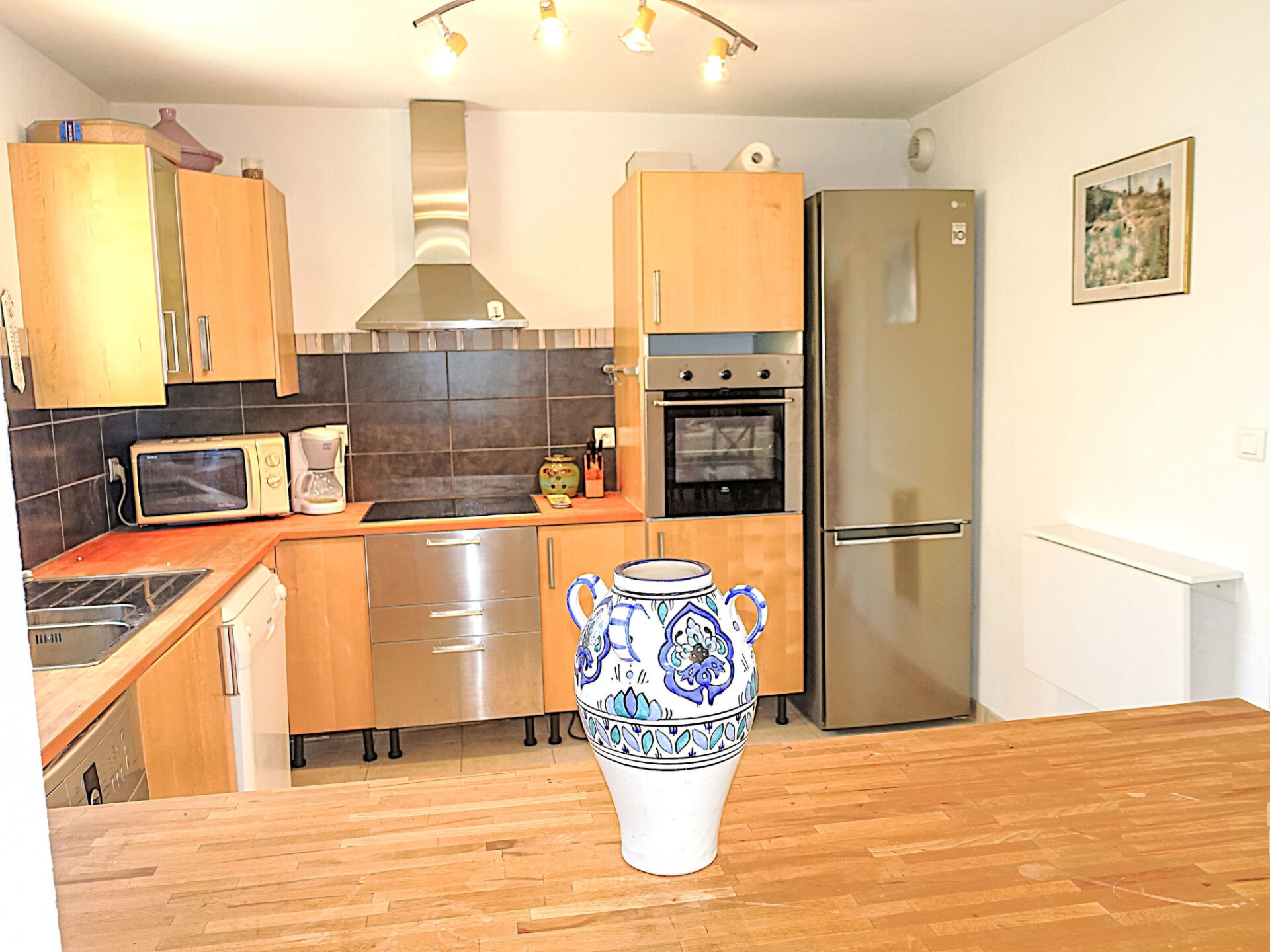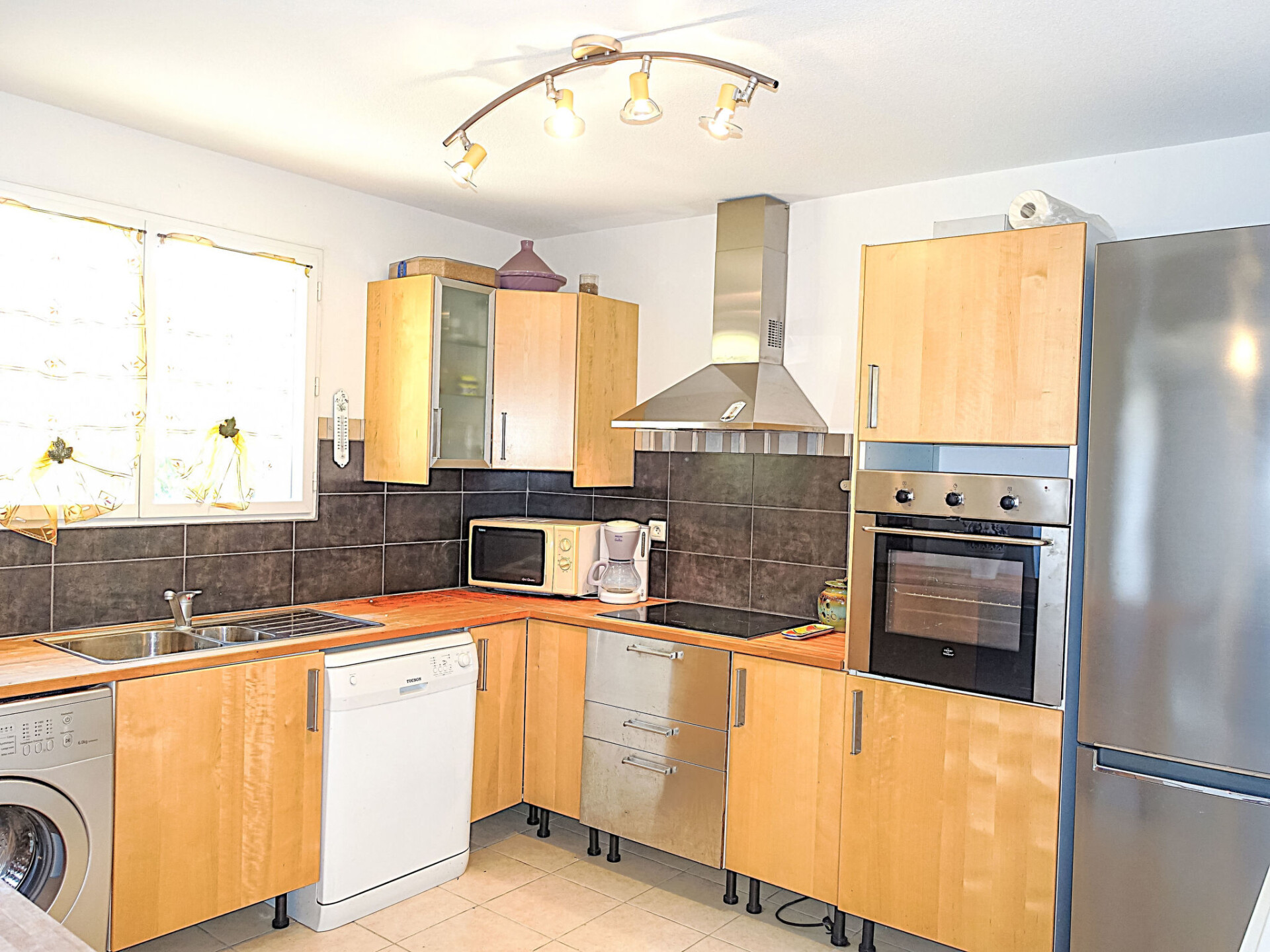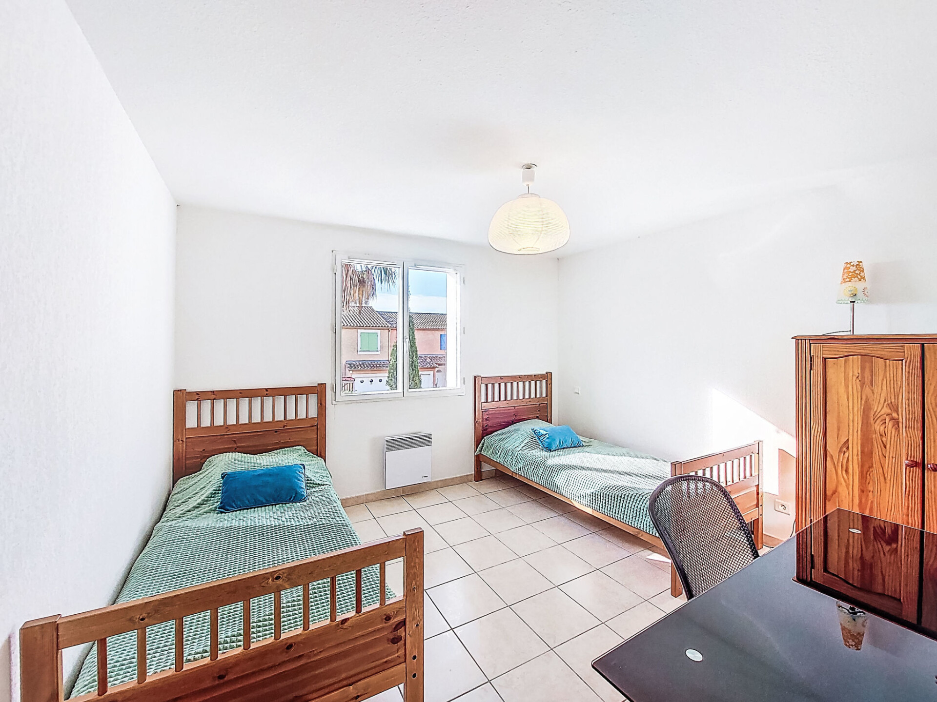 Huis in een rij 4-kamers 94 m2 op 2 verdiepingen, op het zuiden gelegen. Comfortabel ingericht: woon-/eetkamer met stereo-installatie. Groot, open keuken (oven, afwasmachine, 4 inductiekookplaten, broodrooster, waterkoker, magnetron, diepvriezer, elektrische koffiemachine). Aparte WC. Bovenverdieping: 1 kamer met 1 2-pers bed (1 x 140 cm, lengte 190 cm). 2 kamers, elke kamer heeft 2 bedden (90 cm, lengte 190 cm). Badkamer, aparte WC. Elektrische verwarming. Terras 20 m2, op het noorden gelegen. Terrasmeubelen. Ter beschikking: wasmachine. Internet (WiFi, extra). Parkeerplaats (omheind, 1 Auto). Rookmelders. Aanbod door een particulier volgens art. 155, IV van CGI.