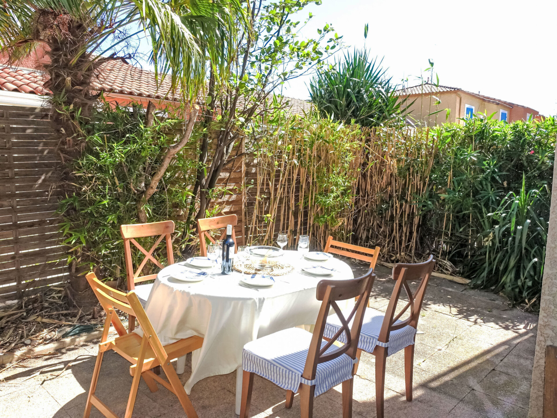 Rijtjeshuis "Maison des Lauriers". 1.3 km van het centrum van Narbonne Plage, 400 m van zee, 400 m van het strand. Parkeerplaats (beperkt aantal). Winkel 1.3 km, levensmiddelenwinkel 1.3 km, restaurant 1.3 km, bar 1.3 km, bushalte 800 m, zandstrand "Narbonne Plage" 400 m, duikschool 3 km. Jachthaven 3 km, zeilschool 3 km, manege 5 km. Attracties in de buurt: Centre balnéoludique de Gruissan 6 km, Réserve Africaine de Sigean 33 km, Cité de Carcassonne 73 km.