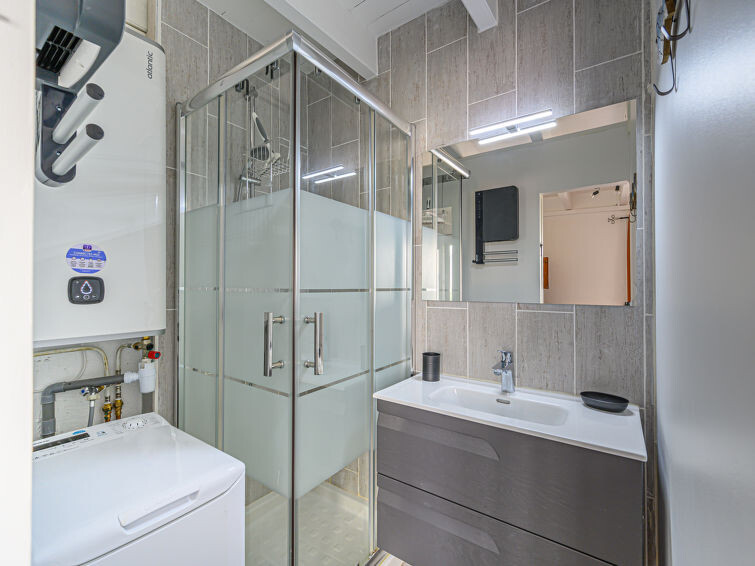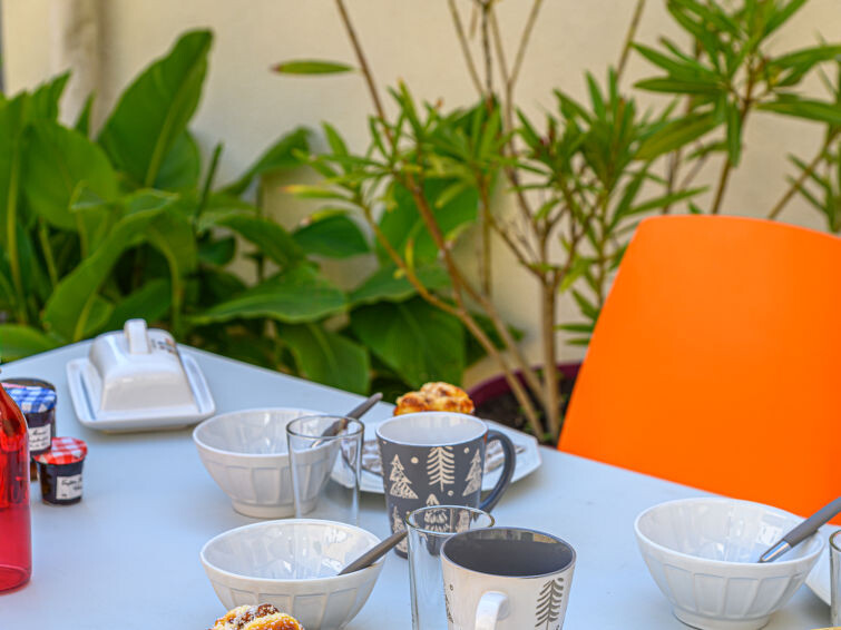 Quiberon: Rijtjeshuis. In het centrum van Quiberon, 500 m van zee, 500 m van het strand. Betaald kortparkeren zone. Winkel 50 m, levensmiddelenwinkel 100 m, supermarkt 800 m, restaurant, bakkerij, café 50 m, bushalte 100 m, zandstrand "Grande Plage de Quiberon" 500 m. Jachthaven 2 km, zeilschool 2 km, tennis 2 km. Attracties in de buurt: Thalassothérapie de Quiberon 2 km, Les Alignements de Carnac 18 km, Auray 30 km, Vannes 40 km, Belle-ile-en-Mer, Houat, Hoedic. De sleuteloverdracht vindt plaats bij het agentschap Interhome in Quiberon, 1 km.
