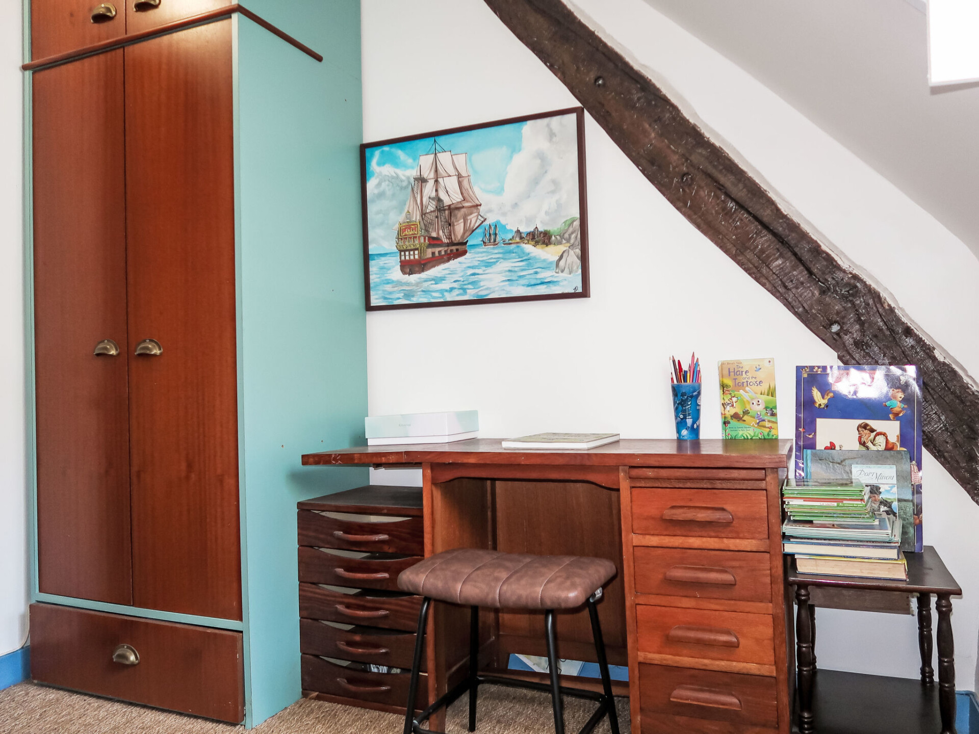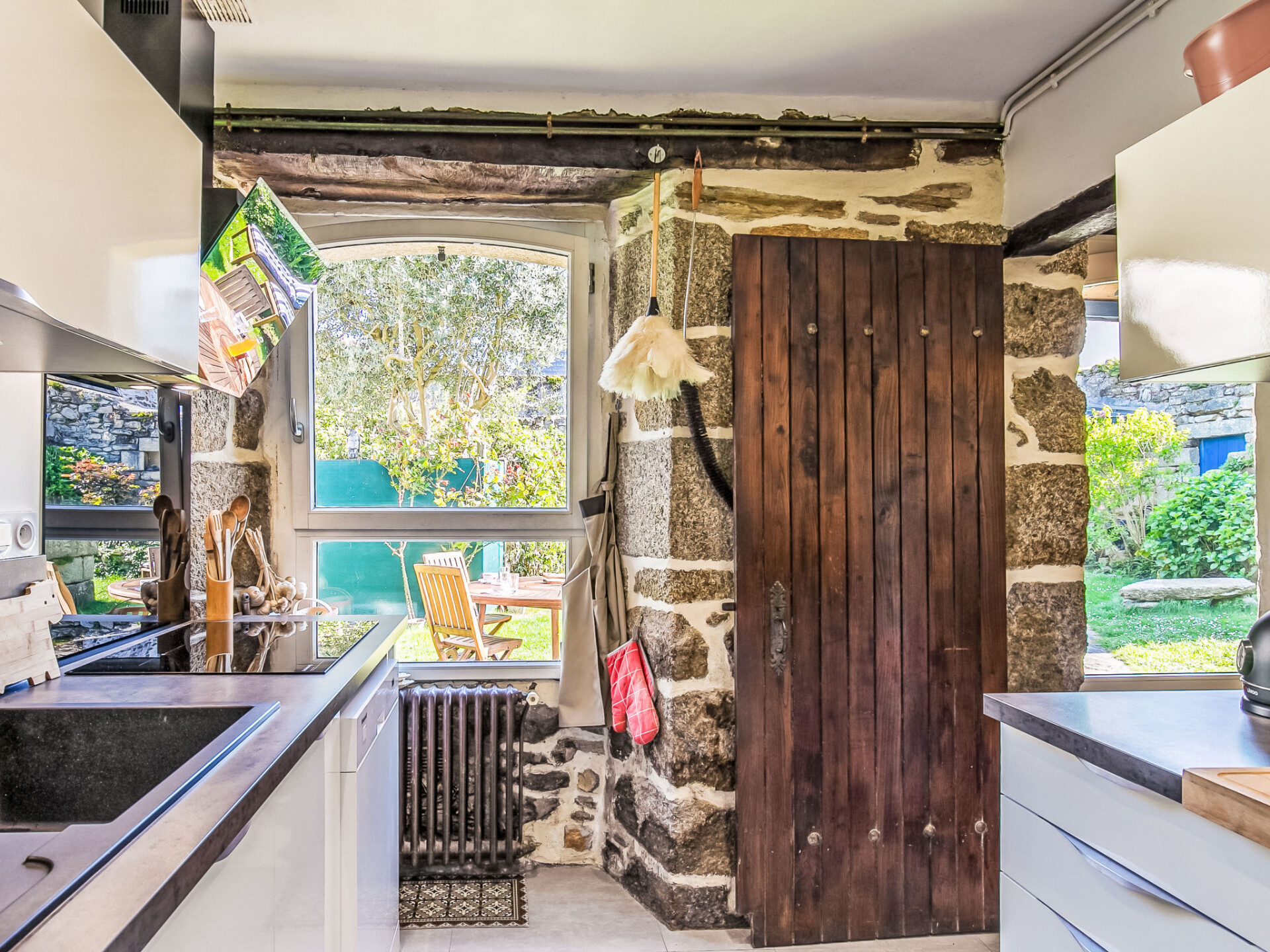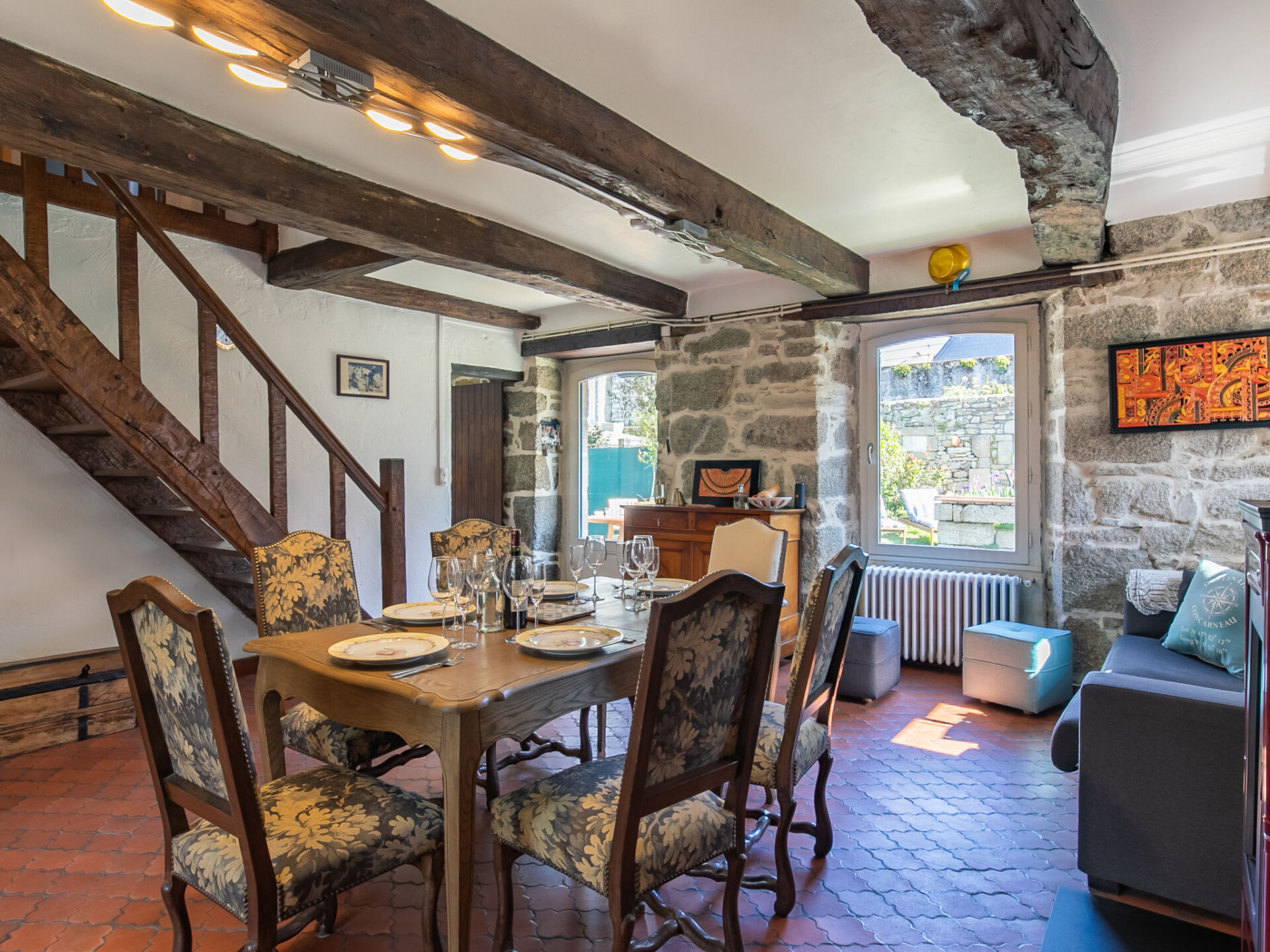 Concarneau: Mooi, gezellige, historische eengezinswoning "Maison Duquesne", uit de 17e eeuw, gerenoveerd. In de wijk La Croix, 100 m van het centrum van Concarneau, perfecte locatie: in het centrum en toch rustig gelegen, 100 m van zee, 300 m van het strand. Voor alleengebruik: verzorgde tuin 250 m2 (omheind) met gazon en planten, parkeerplaats bij het huis. Winkel 200 m, levensmiddelenwinkel 300 m, winkelcentrum 3 km, restaurant 50 m, bakkerij 500 m, café 80 m, voetgangersgebied 300 m, centrum te voet bereikbaar in 5 minuten, bushalte "au port" 550 m, zandstrand "Plage de Rödel" 500 m, overdekt zwembad 5 km, thermaalbad "Thalasso Concarneau" 2 km. Jachthaven 100 m, golfterrein (10 holes) 10 km, zeilschool, wandelroutes 80 m vanaf het huis. Attracties in de buurt: Ville Close 300 m, Pont Aven, village des Peintres 17 km, Pointe de Trévignon 18 km, Kerascoёt et Port Manec'h 19 km, Raguénez et Plage de Tahiti 18 km, Quimper 30 km. Wandelgebied GR34, sentier des douaniers 50 m.