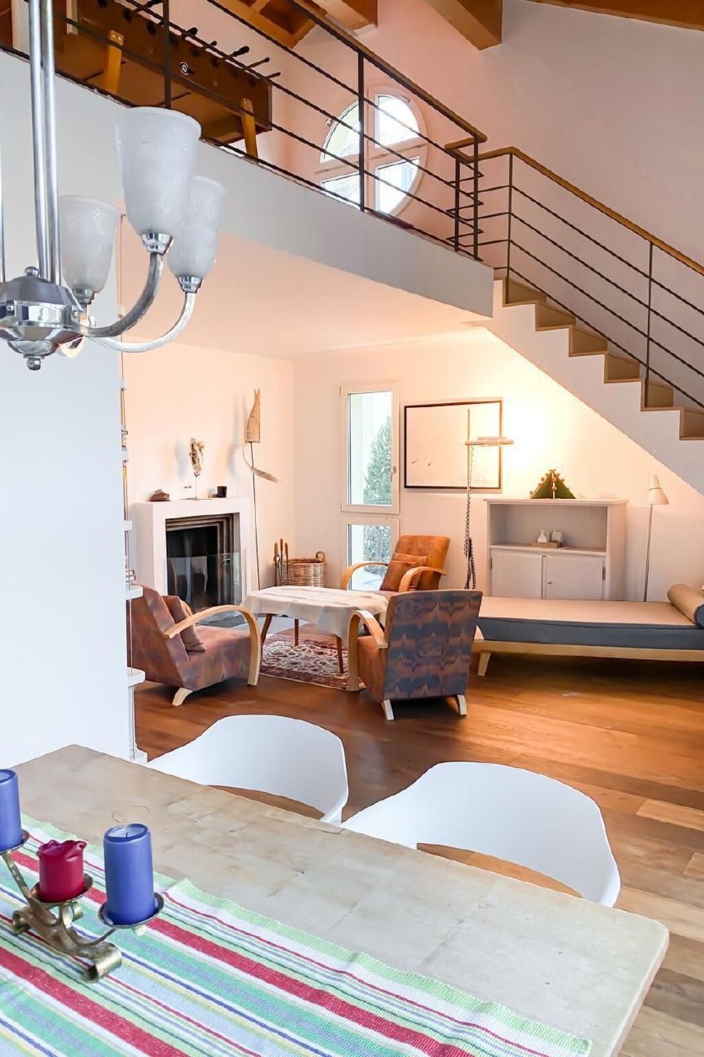 Maximaal 2 huisdieren/honden toegestaan. The top floor apartment has plenty of open plan space in a cosy light wood setting with fireplace and large window with great views onto the Corvatsch mountain arena and the old village of Sils It is located centrally in the pictoreque old town of Sils Maria (10 km from St. Moritz) and there is direct access the Corvatsch ski arena. Cross country slopes start directly in front of the building complex of the "Alpenrose Residenz". The apartment has all modern amenities with a fully equipt kitchen, three Bedrooms (one in the open-plan mezzanine with it's own livingroom corner and office table). It has two bathrooms (one with bath and one with large shower) and each with toilets (see pictures). There are two underground parking spaces reserved for our guests during their stay with a lift directly to the apartment floorOther leisure facilities: Skiing, cross-country skiing, curling, skating, tobogganing, biking, surfing, hiking, climbing, swimming, tennis, jogging, horseback riding, golf, sailing, ski-diving, rafting, paragliding, fitness Excursion possibilities: What mountains. What lakes. What light! Whether on the 580km (360 miles) of hiking paths strewn over all the mountains or by mountain bike along 400km (250 miles) of fabulous trails: the Upper Engadin offers a superb network of paths and trails amidst an unspoilt Alpine landscape and the inspiring lake plateau. Four flow trails on the Corviglia guarantee a perfect flow. Equally popular among sports enthusiasts are the Upper Engadin lakes; kiting, sailing, windsurfing, stand up paddling – the possibilities are virtually endless. The expanse of the inspiring high-lying valley can be experienced in a particularly striking way on the two 18-hole golf courses in Samedan and Zuoz. And besides the wide range of sporting options, visitors can take advantage of the first-class cultural activities on offer, such as a visit to a museum or to one of the numerous art galleries in the various villages.   In winter, the ski areas of Corviglia, Corvatsch, Diavolezza and family friendly Zuoz invite ski and snowboard enthusiasts to revel in 350 kilometres (218 miles) of the finest powder snow. Cross-country skiers will find over 220km (137 miles) of perfectly groomed trails in the Upper Engadin and the side valleys. The winter hiking paths and cross-country ski trails on the frozen Upper Engadin lakes are characterised by their light, sunshine and space amidst inspiring Alpine scenery. Those who would like to enjoy the tranquillity and beauty of the snow-covered forests can explore the side valleys of Val Roseg, Val Fex or Val Bever on 150 kilometres (90 miles) of winter hiking paths. Visitors who prefer to have everything in view, meanwhile, will delight in the breathtaking vistas on the panorama hiking trails high above the lakes on Muottas Muragl.   Families can bask in the Engadin sun during a ride in a horse-drawn carriage into the Val Roseg or Val Fex, or race down the mountainside into the valley on the winding, 4.2km (2.6 mile) long toboggan run on Muottas Muragl.  Welcome to the Engadin.  Nearby sports facilities: Fishing, Mountain climbing, Ice skating, Golf course, Canoeing, Climbing, Mountainbiking, Paragliding, Bike tours, Rafting, Indoor riding arena, Riding possibilities, Toboggen, Skiing (alpin), Cross-country skiing, Sport center, Surfing, Tennis, SailingLocation description: Sils – an enrichment for the body, mind and soul  Sils is a place overflowing with life energy; this can actually be scientifically measured. But why bother when you are anyway guaranteed to fall under the spell of the landscape at first sight?   Writers such as Nietzsche, artists like Beuys, and musicians such as David Bowie drew inspiration from the wonderful open spaces and the magical light here, and each played a considerable role in establishing Sils as the cultural centre of the Engadin. These days – with good reason and not without a sense of pride – both local inhabitants and guests from all over the world describe Sils as a place abounding in life force and natural earth energy. For particularly high values on the Bovis scale – the life force index – have been measured here.  Nestling idyllically between Lake Sils and Lake Silvaplana, the village lies at the gateway to the romantic Fex Valley and is the perfect starting point for walks through this wide open, light-flooded valley. In winter, the best way to explore the valley is by taking a ride in a horse-drawn sleigh.   Those for whom the sky’s the limit will find a variety of routes for hiking and mountain-biking tours on Sil’s home mountain, the Furtschellas. Moreover, a trip on Lake Sils on board Europe’s highest-altitude scheduled cruise boat provides particularly spectacular views of the beautiful Alpine scenery.   However, Sils is also the perfect departure point for winter hikes and cross-country ski tours through the wide expanse of the frozen lakes, which trustingly huddle around the Furtschellas. From the Furtschellas, you can get higher still in no time at all – on the Corvatsch, home to the highest summit station in the Eastern Alps (3303m/10,836ft). And from here, 120 kilometres (75 miles) of challenging pistes lead back down into the valley.