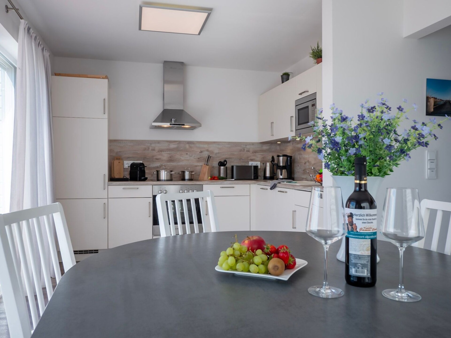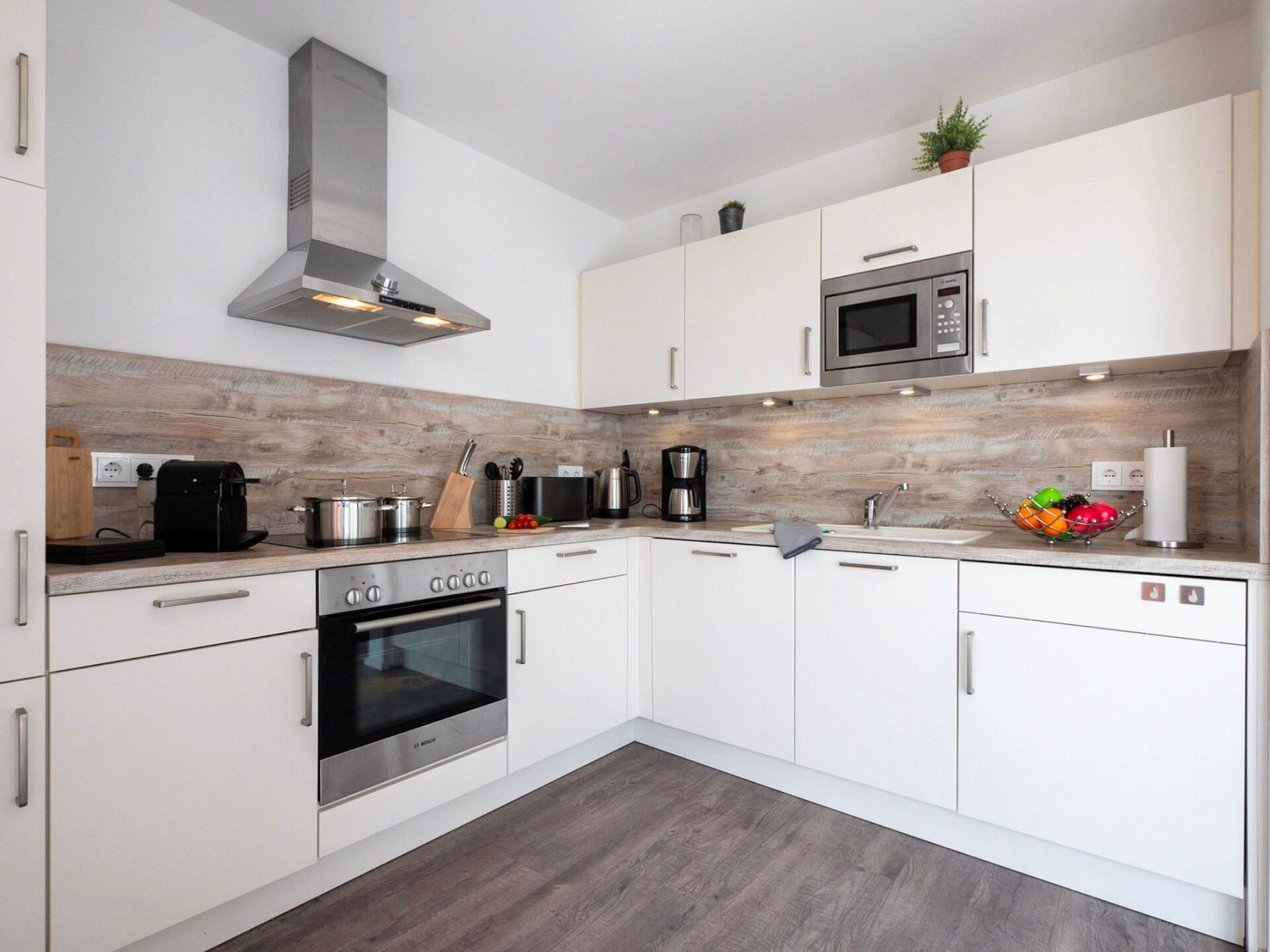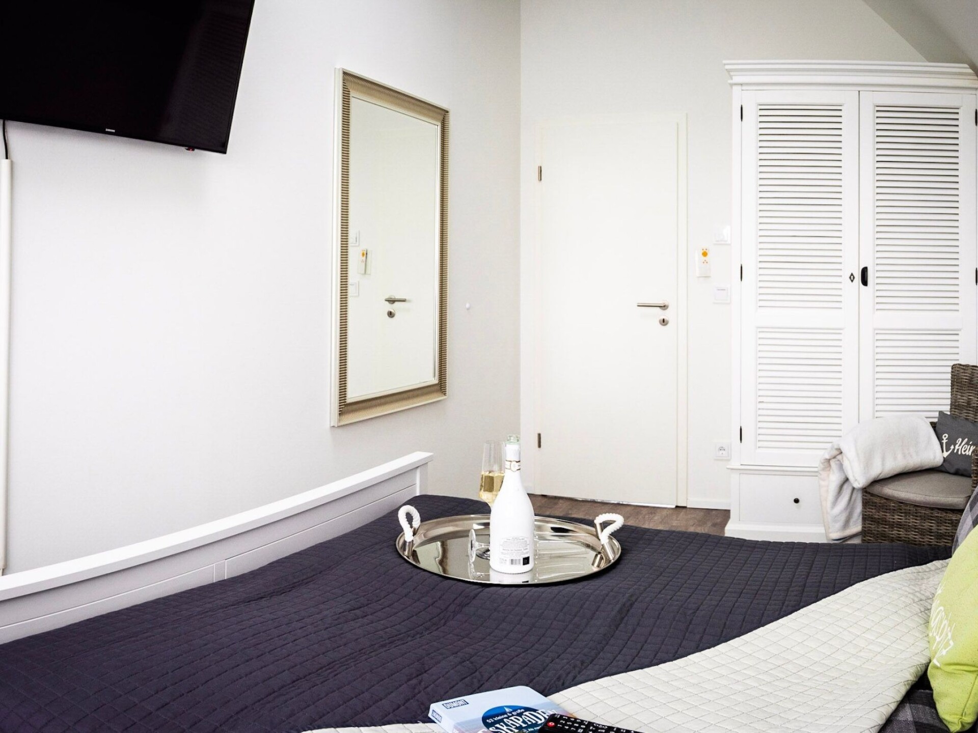 De vakantiewoning Ostseeflair van Seeblick Ferien ORO wordt betreden via een buitentrap, van hieruit komt u meteen op het eerste balkon op het zuiden (ca. 25 m²), waar een strandstoel, teakhouten ligstoel en ander gezellig meubilair klaar staan om te ontspannen. De entree leidt naar het woon- en eetgedeelte met een extra doucheruimte en WC. Op het tweede niveau is je badkamer, die je wellnesshart sneller zal doen kloppen, want het heeft een gelijkvloerse XXL inloopdouche, een bubbelbad, een sauna (infraroodcabine) met kleurenlichttherapie en een radio met Bluetooth. Voorbij de wellnessoase liggen twee goed ontworpen slaapkamers met ruimte voor vijf volwassenen en een prachtig uitzicht op het water. De grote slaapkamer heeft een tweepersoonsbed (1.80 x 2.00) met een extra 40-inch Smart TV, met uitzicht op de jachthaven, terwijl een stapelbed (onderste 1.40 x 2.00 max. 180kg), (bovenste 90x200 max. 75 kg) voor 3 personen op je wacht in de tweede slaapkamer met uitzicht op de Schlei. De focus ligt echter op de perfect gerealiseerde, lichtovergoten woon- en eetruimte met houtkachel, panoramische ramen van vloer tot plafond, die is ontworpen in een loft-achtige stijl, zodat alle kamers naadloos in elkaar overvloeien en het woongedeelte contact maakt met de natuur. De integratie van de open keuken met uitstekende apparatuur en functioneel ontwerp betekent dat niets een gezellig samenzijn in de weg staat, zelfs niet bij het bereiden van allerlei lekkernijen. De achtergrond van water voor de eethoek met een 180 graden panoramisch uitzicht op de hele haven en de Baltische Zee is dichtbij genoeg om aan te raken - dat is Baltische flair. Het tweede balkon op het noorden (ca. 8 m²) is toegankelijk via het woongedeelte, waar onze gasten het zich gemakkelijk kunnen maken op extra zitplaatsen en de dag kunnen afsluiten met een drankje in de avondzon. De stijl van de inrichting komt overeen met de exclusieve locatie van het appartement: landhuisstijl gecombineerd met heldere kleuren en vormen beloven rust en retraite, terwijl individuele kleuraccenten zorgen voor verfrissende lichtheid.Het hele appartement kan gemakkelijk worden getemperd via de vloerverwarming en biedt, dankzij de open haard en sauna, het hele jaar door aangename warmte en een gezellige, huiselijke sfeer. Entertainment wordt geboden in de woonkamer door een 55-inch Smart TV met Bluetooth en Samsung soundbar, een Playstation, Blu-ray speler, een aparte internetradio en een verzameling spelletjes.De Weber elektrische barbecue rondt de hoogwaardige uitrusting af.Huisdieren zijn niet toegestaan in dit appartement.Ons appartement is een niet-roken woning.Gratis WLANA reisbedje en een kinderstoel zijn beschikbaar voor onze kleine gasten. Je kunt je eigen beddengoed/handdoeken meenemen of huren van ons agentschap in de vorm van linnenpakketten. De bedden zijn dan bij aankomst opgemaakt. De kosten voor verwarming, elektriciteit en water zijn bij de huurprijs van het appartement Ostseeflair van Seeblick Ferien inbegrepen.Bij aankomst moet een borg worden betaald, deze wordt bij het uitchecken direct terugbetaald.Als je ter plaatse vragen of problemen hebt, helpen we je graag. Onze gastenservice is ook ter plaatse, zij helpen je graag en gaan, in tegenstelling tot sommige andere aanbieders, met je mee naar de flat om je rond te leiden. Bij ons geniet je van de exclusiviteit van een persoonlijke check-in en check-out in je geboekte vakantiewoning. In de verschillende seizoenen gelden andere prijzen en minimumverblijfsperiodes, die om technische redenen kunnen afwijken van het aangegeven aantal nachten.