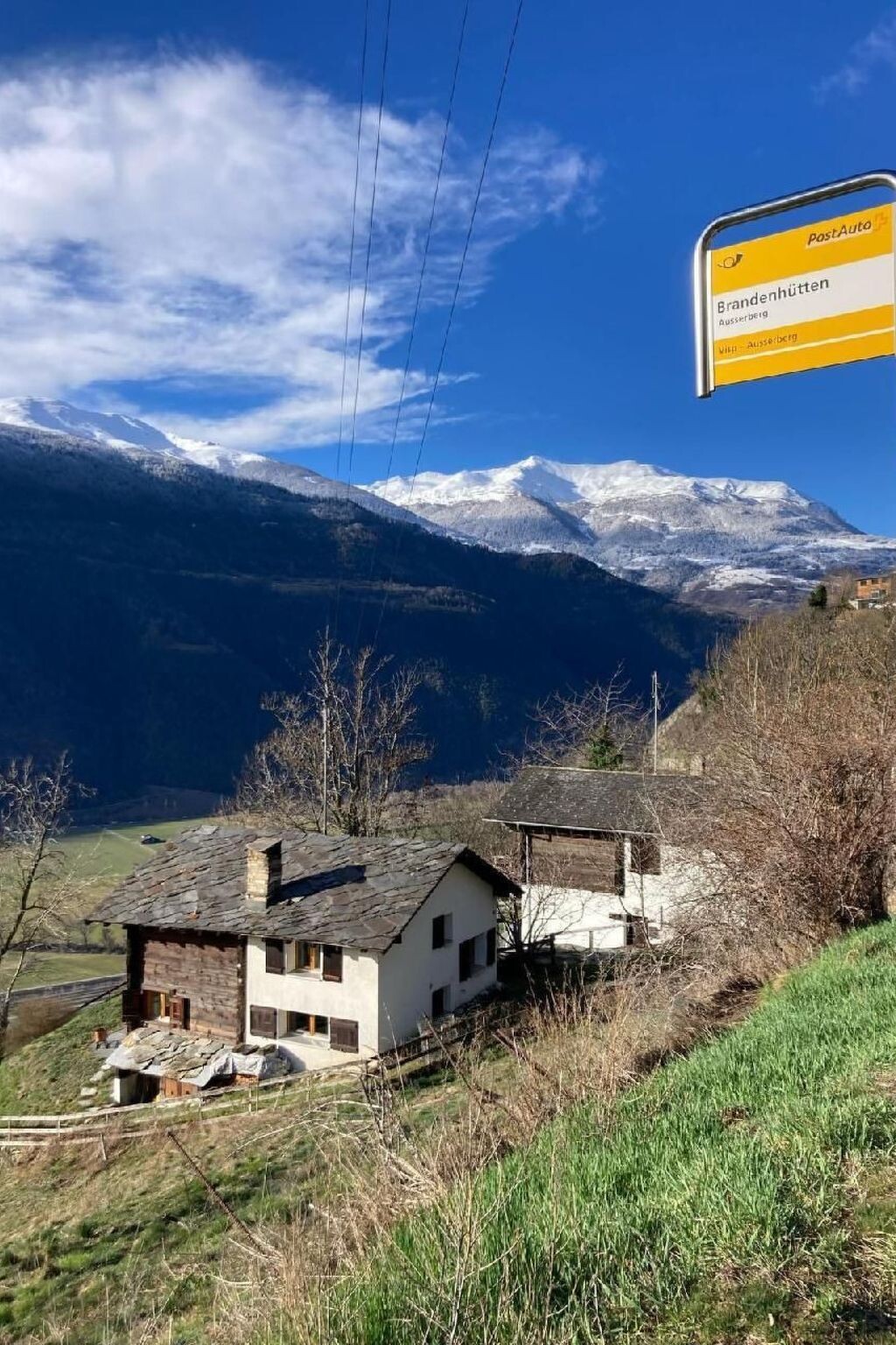 The Malu holiday home in Ausserberg (post office stop: Brandenhütten) has a bright living room with wood heating, a bathroom (shower/WC) and a well-equipped kitchen (incl. dishwasher) on the ground floor.On the first floor there are 3 double bedrooms (1 with 2 single beds and running water, 1 with 2 single beds, 1 with a double bed of 140 cm) and 1 separate WC.It has a garden with a seating area and a view of many mountains and a mostly blue sky. You can also see the valley, a little less pretty.It has a dining table, a large sun blind, a swing and comfortable chairs. The holiday home is located on the edge of the Unesco World Heritage Site "Swiss Alps Jungfrau-Aletsch" and in the middle of the "Sonnige Halden" hiking area on the Lötschberg south ramp.Starting point for the Baltschiedertal with its magnificent bisses, close to the Brigerbad.Many excursion possibilities on foot or by post bus/train, for example to Zermatt, Saas Fee or Simplon. Unique flora and birdlife.Other sports and leisure activities: Hiking, climbing, swimming in Visp or Brigerbad.Excursion possibilities: Hikes directly from the house or by post bus (and train) to Zermatt, Saas Fee, Visperterminen, on the Simplon or to Domodossola, to Sion, Sion, Martigny, Leukerbad and much moreOther living room equipment: cupboard with games, CD player and CDs, hiking maps and many books.Other bedroom furnishings: wardrobe, reading lampsSports facilities in the surrounding area: Mountaineering, climbing, cycling, swimmingLocation description: Ausserberg-Brandenhütten lies 850 metres above sea level, the village of Ausserberg at 1100 metres. In between is the railway station (incl. hotel/restaurant Bahnhof).Postbus connection to Ausserberg and Visp. Walk to Ausserberg: approx. 20 min.