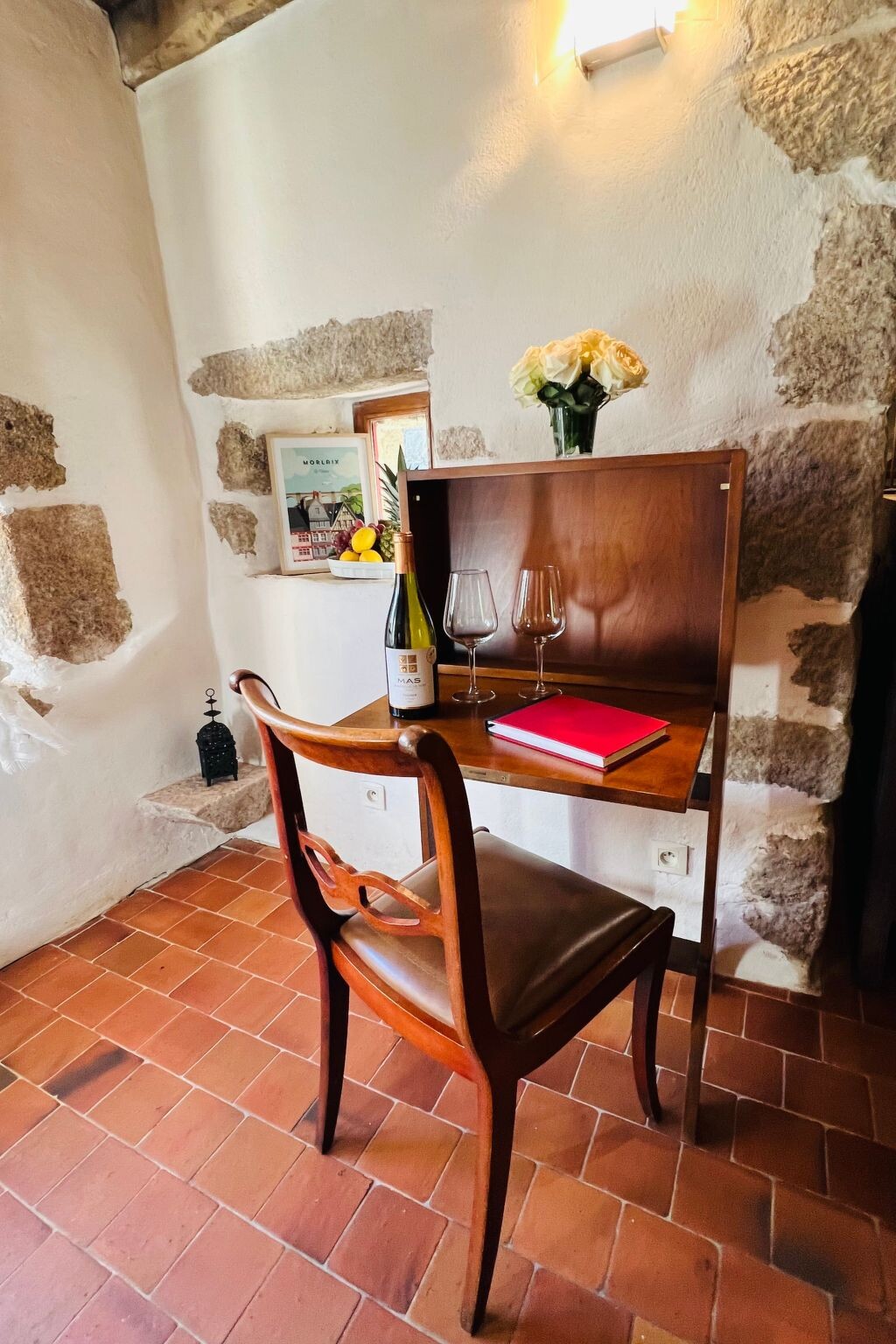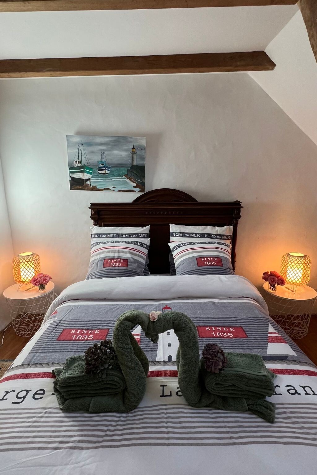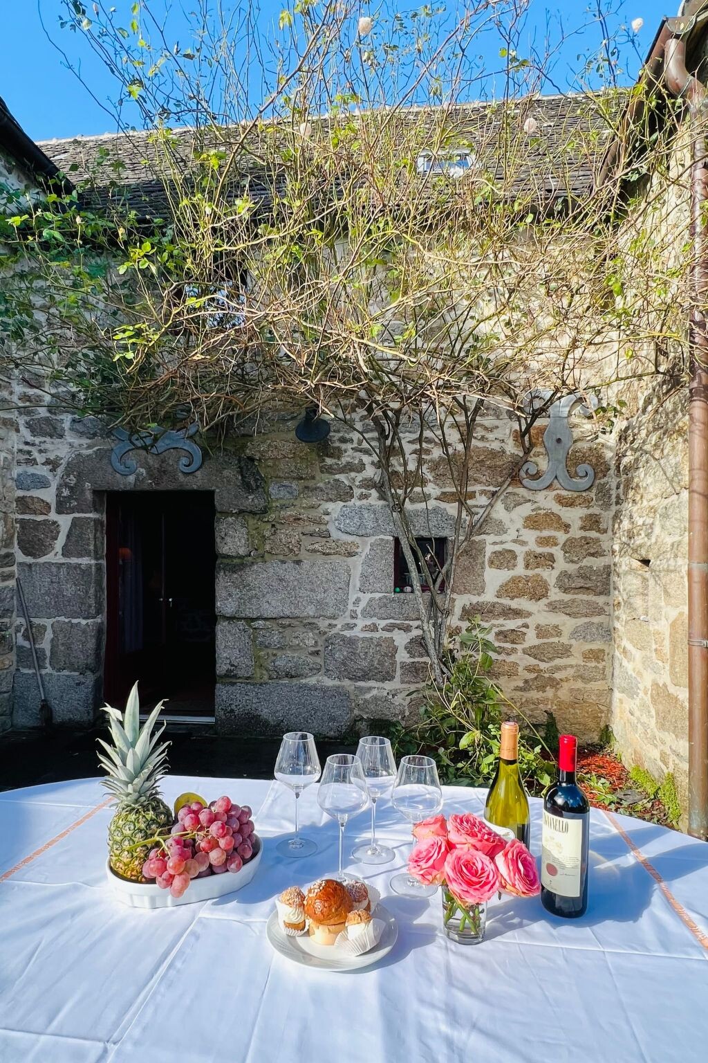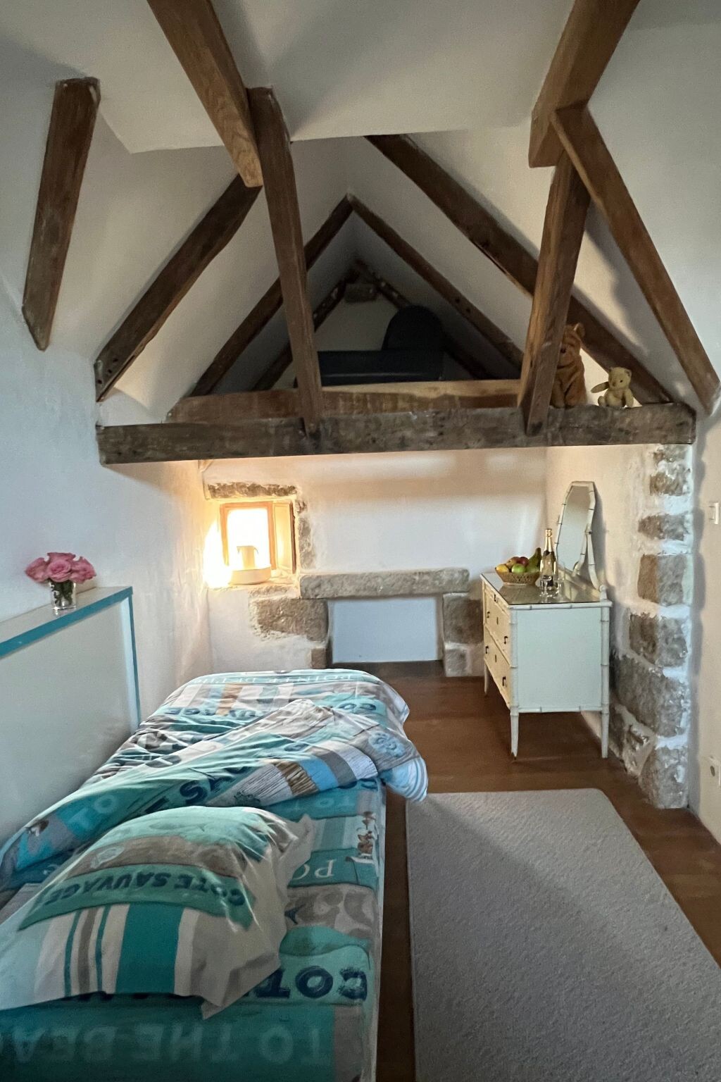 We love Brittany, especially the beautiful sandy beaches of Finistère. We are happy to answer any questions you may have. If you have any questions on site, you can reach us at any time, and you are welcome to tell us all your concerns in German (or in English or French).You have to imagine what the little Leinenweber house has experienced in over 500 years - when we first visited the place and were allowed to see the gem, we were thrilled - a house from the Middle Ages, that has been renovated but radiates its rustic charm not only in the small courtyard but also inside - rustic and cosy - the old granite staircase "stepped round over the centuries" - the new oak supporting beams, an antique granite feeding trough in the house and the man-high original open fireplace - which you not only admire immediately when you enter - but immediately get the light smell of the open fire in your nose! To have such a little gem in the holiday home programme is almost an honour.Absolutely rare Breton holiday property: We offer here a really rare little pearl from the 16th century for holiday rental; lovingly renovated; without overlooking the rustic charm of the medieval linen weaver's house. On the outside, the no manoir has the typical turrets whose roofs were typically covered with thick slates (ardoises de montagne). A circular staircase leads from the entrance (in front of which is your private car park) into the small inner courtyard (completely fenced in) of the small medieval property - in which there is a slightly raised wooden terrace and a small circular pool - which is always heated to 28°C from 1 May to 15 October and is 5 m wide and 1.30 m deep. As you enter the gem you will see thick granite walls, small windows and the huge medieval open man-sized fireplace, thick oak supporting beams; and even the old granite feeding trough which is still preserved. The steps of the aged granite staircase to the upper floor have been polished round over the centuries. The small rustic manoir is really very cosy - and the beautiful fireplace is not only a feast for the eyes, but also envelops the whole small manoir in the typical smoky scent of a house over 500 years old - just like in the old days! The kitchen is of course modern, as are the shower on the ground floor, the guest WC and the tasteful bathroom (with corner bath). On the upper floor there are 2 beautiful bedrooms with double beds for a maximum of 4 adults - the children's room can also accommodate a maximum of 2 children under the age of 12.The medieval origins of the house and the rustic feeling are of course special when you look at the house from the outside and even more so when you enter it. The old stones practically call for deceleration, which is more than nice for a holiday - you can relax quickly and well and quickly "come down". The location is of course also really nice - you can get to the beach very quickly but live right in the village - and can get fresh baguettes for breakfast on foot in the morning, right next to the butcher or in the supermarket. But 3-4 km away you will find the most beautiful beaches - "AMIETS" is my favourite beach - the water is turquoise blue like in a picture book. What I really want to mention is that the pretty little courtyard is so cosy - the medieval walls around you - you feel safe and somehow very private I think. And the four-legged friend you brought along can't go out because everything is closed all around - and then there's a small heated pool (28°C) - so the holiday is complete and wonderfully pleasant.Our Finistère is characterised by its beautiful, unspoilt nature and is not at all as overcrowded as other tourist areas of Brittany. So why not stay in the peace and quiet of Finistère and organise a few nice excursions if you feel like it. If you ever find the "hustle and bustle" of the destination too stressful, you are in wonderfully quiet hands with us. Brittany has so many interesting things to offer, just have a look at the travel guide and you will find some very nice destinations in the immediate vicinity, for example the very picturesque, "British" Roscoff, the beautiful Crozon peninsula, or further south the Pt. du Raz, or Concarneau (famous for the detective stories of Inspector Dupin) or even the artist-hosting Pont Aven....and so on......you will love Brittany if you don't already do so Our Finistère is characterised by its great, still intact nature, and is not at all as crowded as other tourist corners of Brittany. So why not stay in the peace and quiet of Finistère and organise a few outings if you feel like it. If you ever find the "hustle and bustle" of the destination too stressful, you are in wonderfully quiet hands with us. Brittany has so many interesting things to offer, a little leafing through the travel guide and you will even find very beautiful destinations in the immediate vicinity, for example the very picturesque, "British" Roscoff, the beautiful peninsula of Crozon, or then further south the Pt. du Raz, or Concarneau (famous for the detective stories of Inspector Dupin) or even the artist-hosting Pont Aven....and so on......you will love Brittany at the latest then, if you don't already do so !!! !! FR2024BRE