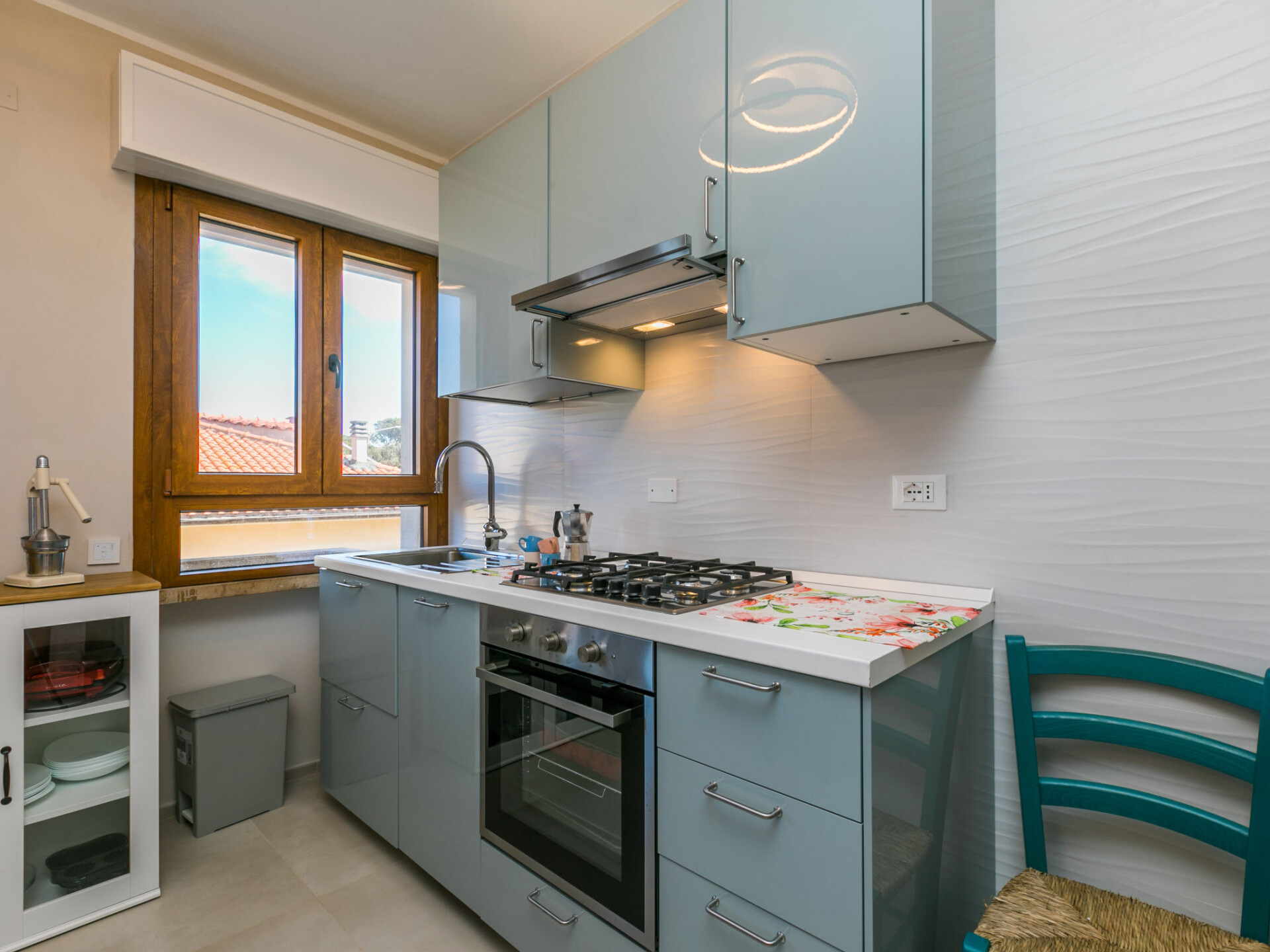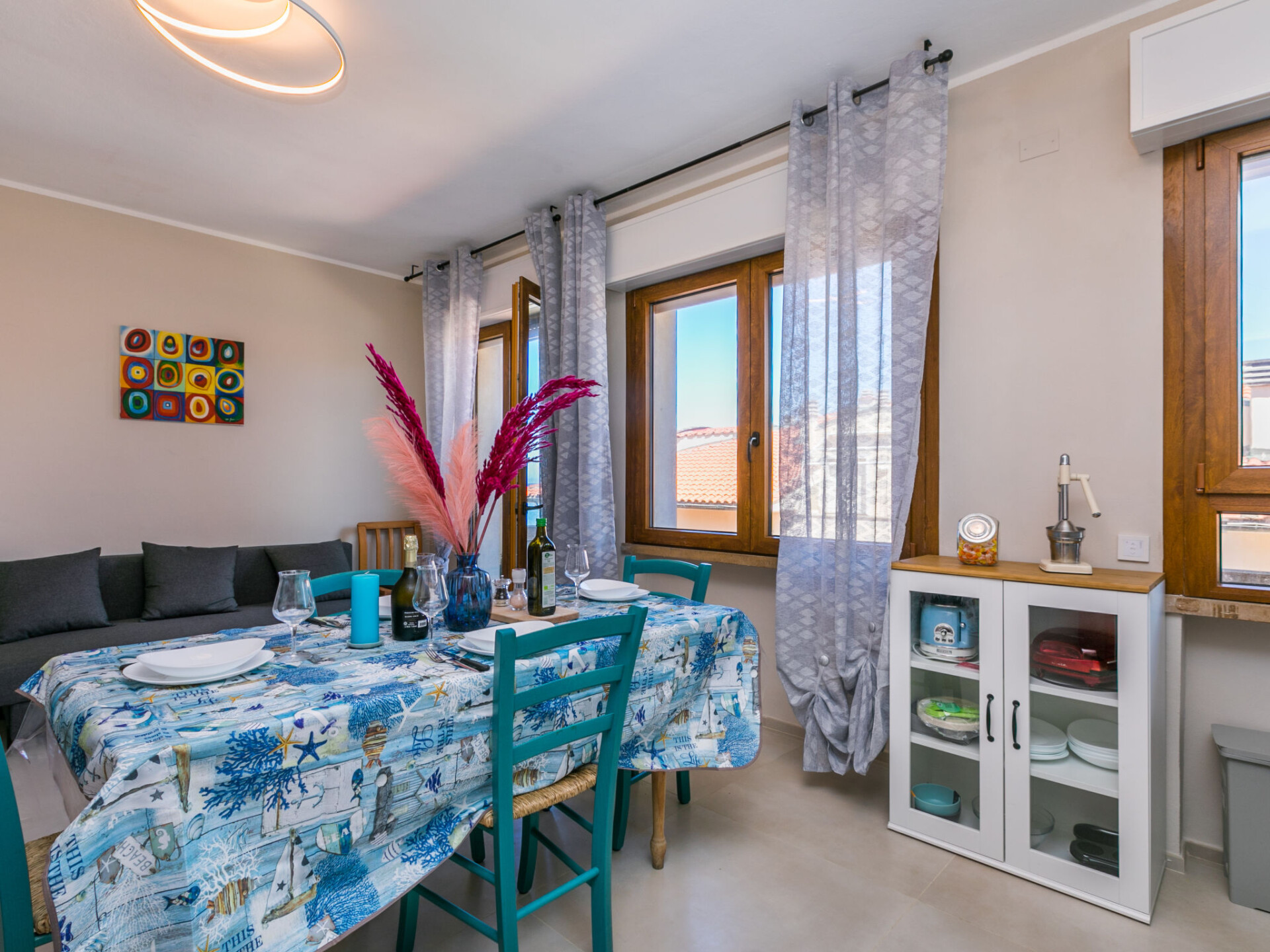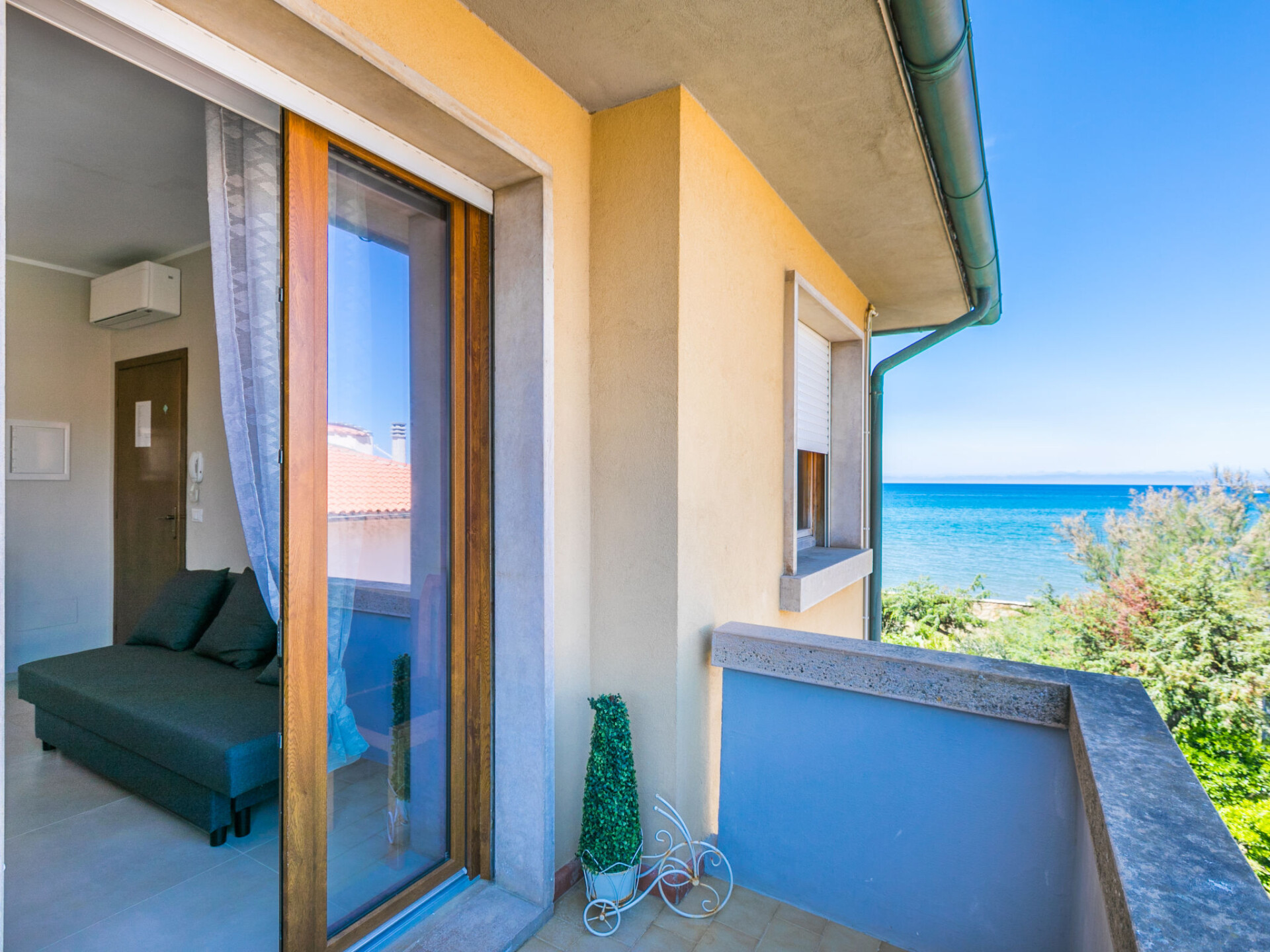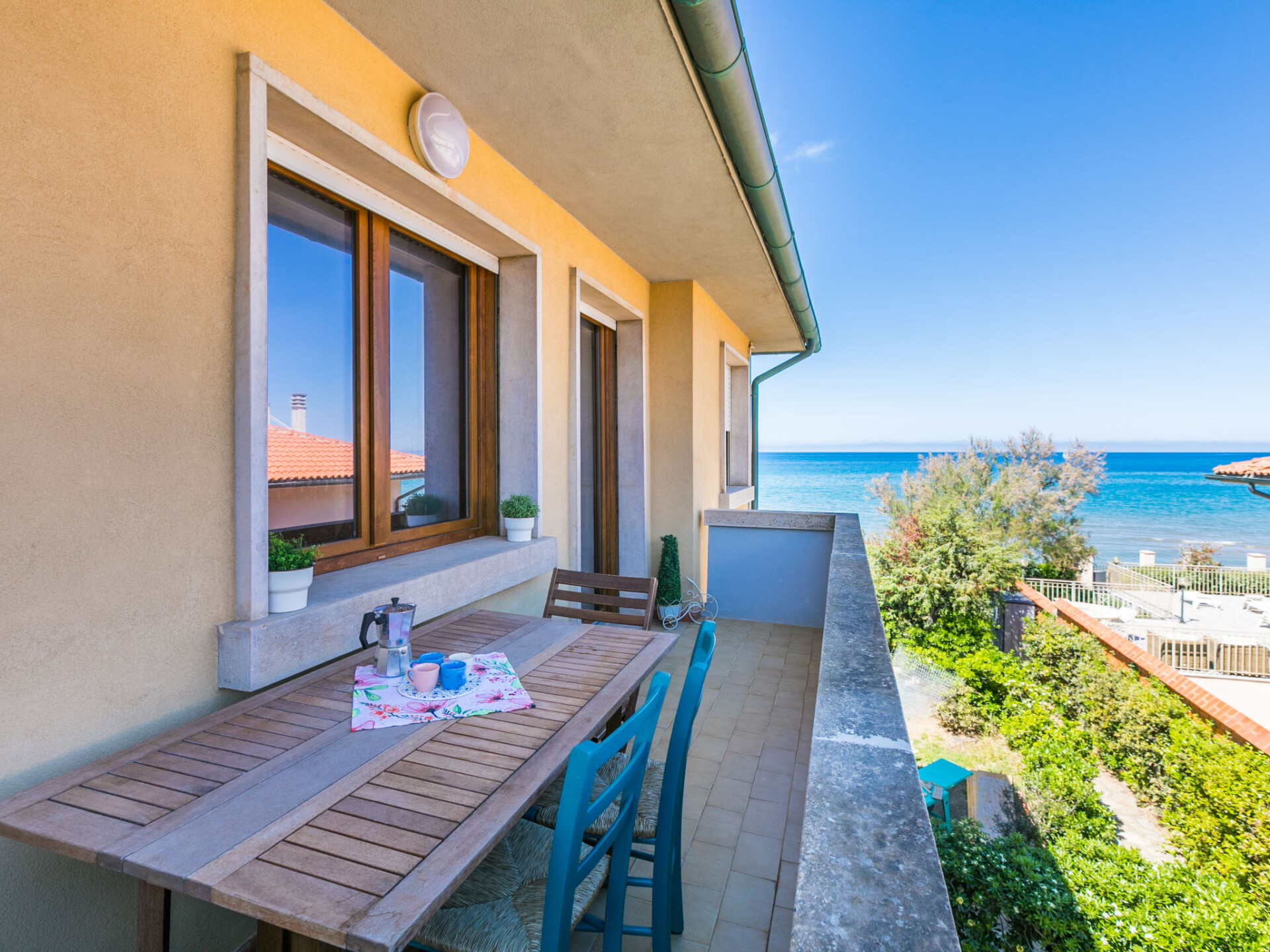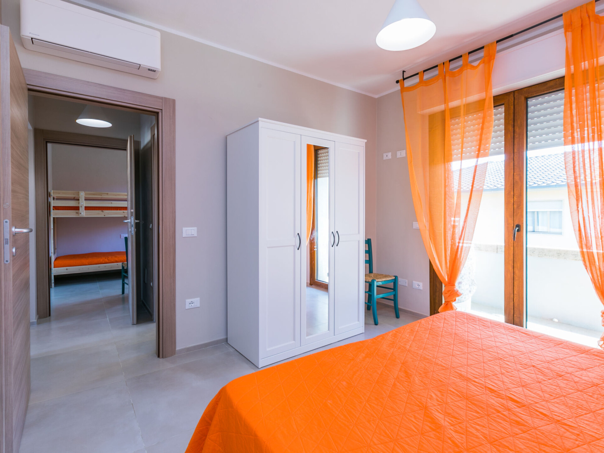 "Marequì", appartement 3-kamers 60 m2 op de 1e verdieping. Licht, gerenoveerd in 2021, modern en smaakvol ingericht: Bovenverdieping: woon-/slaapkamer met 1 divanbed (140 cm), eettafel, Kabel-TV en Flatscreen TV. Uitgang naar het balkon. 1 2-pers. kamer. Uitgang naar het balkon. 1 kamer met 1 bed en 1 x 2 stapelbedden. Open keuken (afwasmachine, Gasfornuis, 4 kookpitten (vlammen), broodrooster, magnetron, elektrische koffiemachine). Douche/bidet/WC. Elektrische verwarming, air-conditioning. Natuurstenen vloeren. Balkon 7 m2, balkon 4 m2. Balkonmeubilair. Zijdelings uitzicht op zee. Ter beschikking: wasmachine, strijkijzer, haardroger. Internet (Internet (WiFi), gratis). Niet rokers woning. IT049018C22SDN7JYL