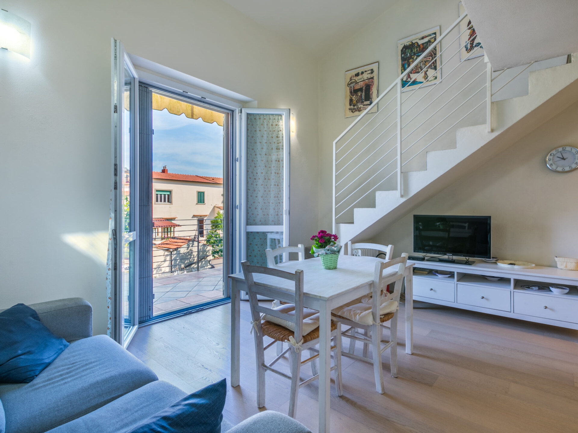 "Maria", appartement 3-kamers 70 m2 op 2 verdiepingen op de 1e verdieping. Mooi en modern ingericht: woon-/eetkamer met TV. Uitgang naar het balkon. 1 2-pers. kamer met 1 2-pers bed. Open keuken (oven, afwasmachine, 4 inductiekookplaten, broodrooster, waterkoker, elektrische koffiemachine) met eettafel. Uitgang naar het balkon. Douche/bidet/WC. Elektrische verwarming, gas-verwarming, air-conditioning. Bovenverdieping: galerij met dakraam met 1 2-pers divanbed. 1 kamer met 2 bedden. Balkon 8 m2. Balkonmeubilair. Ter beschikking: wasmachine. Internet (WiFi, gratis). Brandblusser. IT049017C2BPUBI9N7