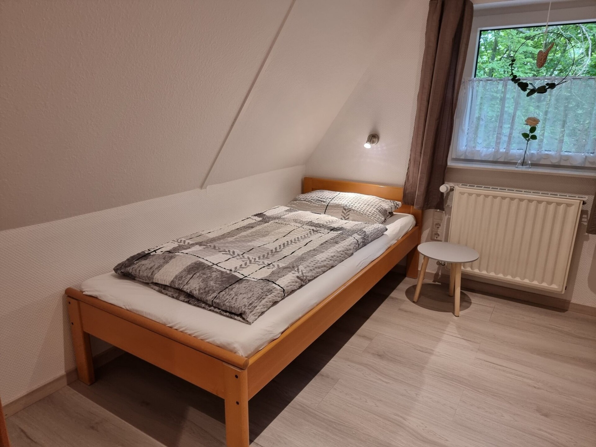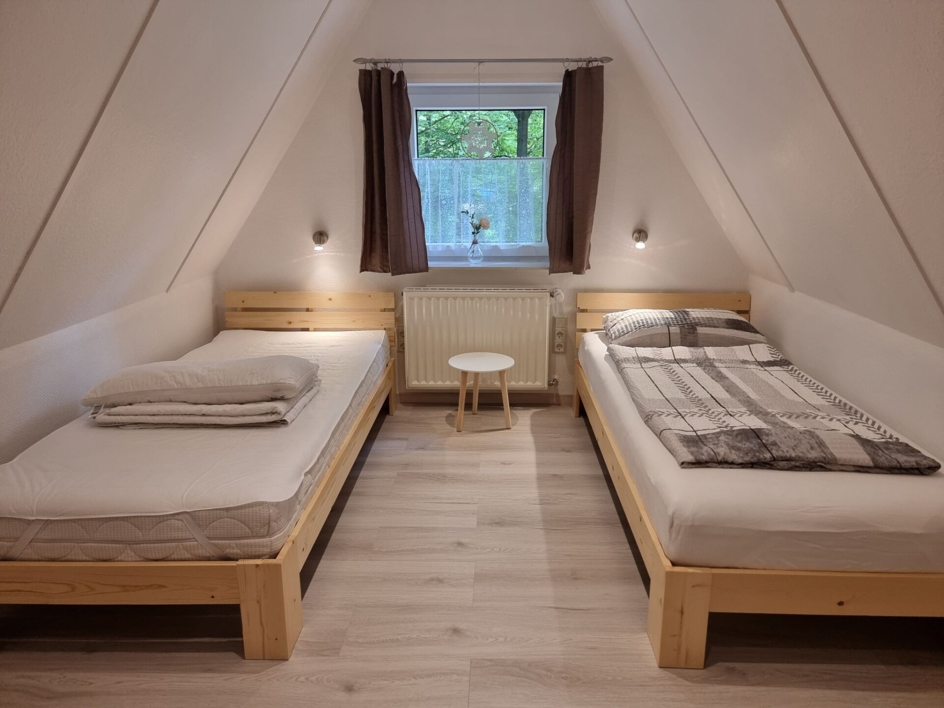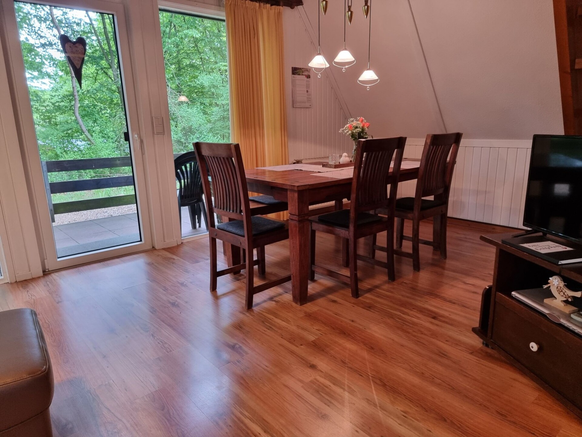 Our lovingly furnished holiday home is located in the Twistesee holiday park near Bad Arolsen-Wetterburg, in the middle of the Waldecker Land.The holiday park is situated above the Twistestausee lake in the middle of a sparse wooded area and is very quiet and car-free.Several detached holiday homes are generously distributed over the approx. 33 ha car-free site.The lake, with its sandy and grassy beach, is approx. 300 metres away via the forest path.At the lake there is water skiing, children's playground, restaurants, boat hire, nudist beach and the path around the lake is also car-free.The holiday home was completely renovated in 2023. It has everything you need for a comfortable holiday.Up to five people + baby cot can be accommodated in our roof-only holiday home.On the ground floor there is a living area and dining area with TV, a very well equipped kitchen, terrace access, bedroom with double bed and a new bathroom with shower and toilet.On the top floor there are two bedrooms, one bedroom with two single beds and one bedroom with one bed.Minigolf and table tennis rackets are available.Free very good W-Lan is available.There are two beautiful outdoor seating areas with views of the countryside.In the holiday park there is a central free car park, children's playground, mini golf course, tennis court, table tennis table, volleyball court, chess field with pieces.A 9-hole golf course is about 500 metres away.A public e-charging station is located at the entrance to the holiday park.The holiday home is located in a quiet wooded area above Lake Twistesee.The holiday park is car-free.Hiking trails border the holiday park.Beautiful Waldecker-Land. Many sights, Bad Arolsen Castle, museums, Sky-Walk Willingen, Kugelsburg Volkmarsen, cycling and hiking trails, Edersee, Diemelsee, Arobella Therme, baroque town of Bad Arolsen, carriage rides can be arranged.Visitor's tax all year round per day, adults 2 €, children from 10 years 1 €.