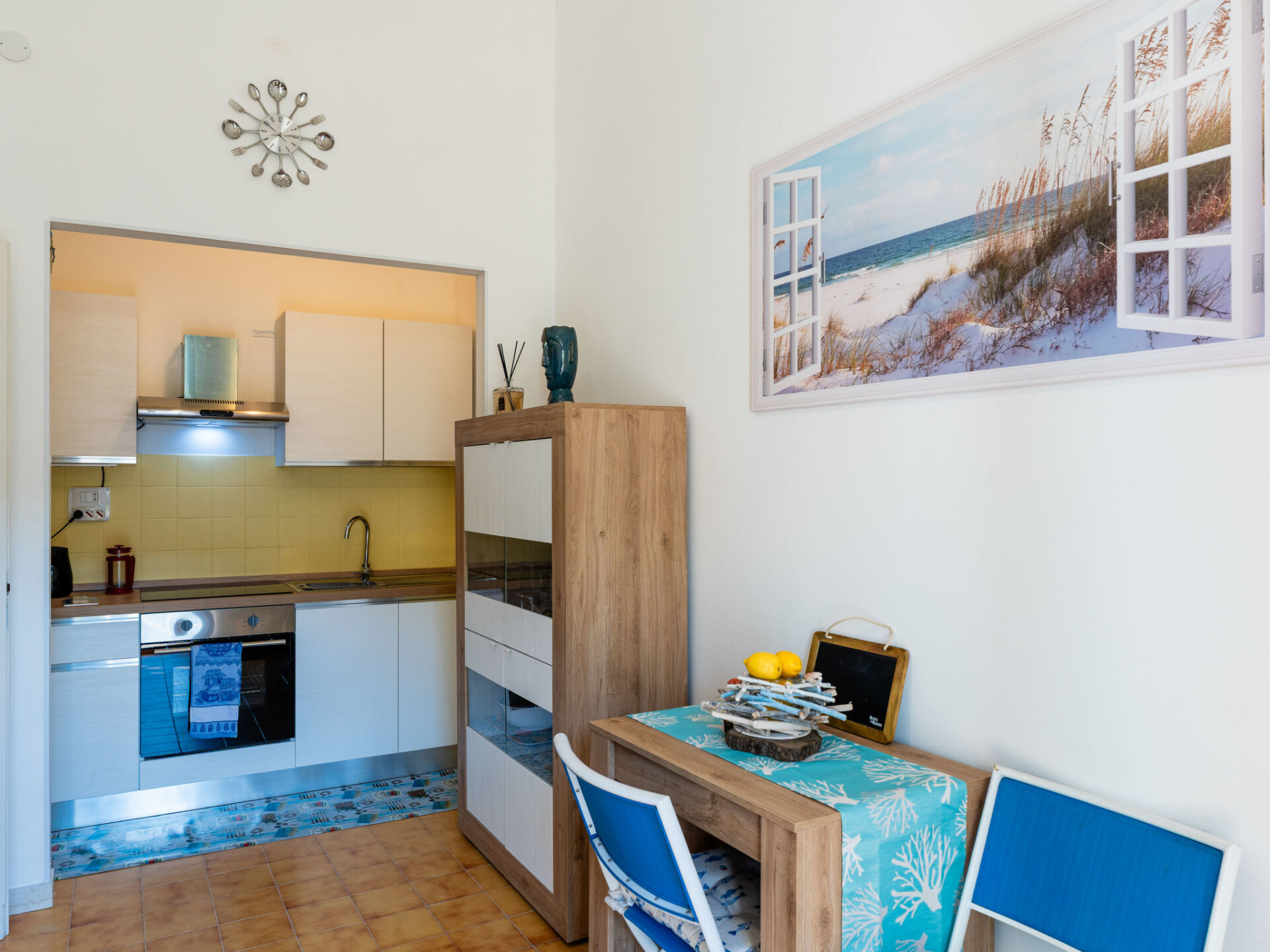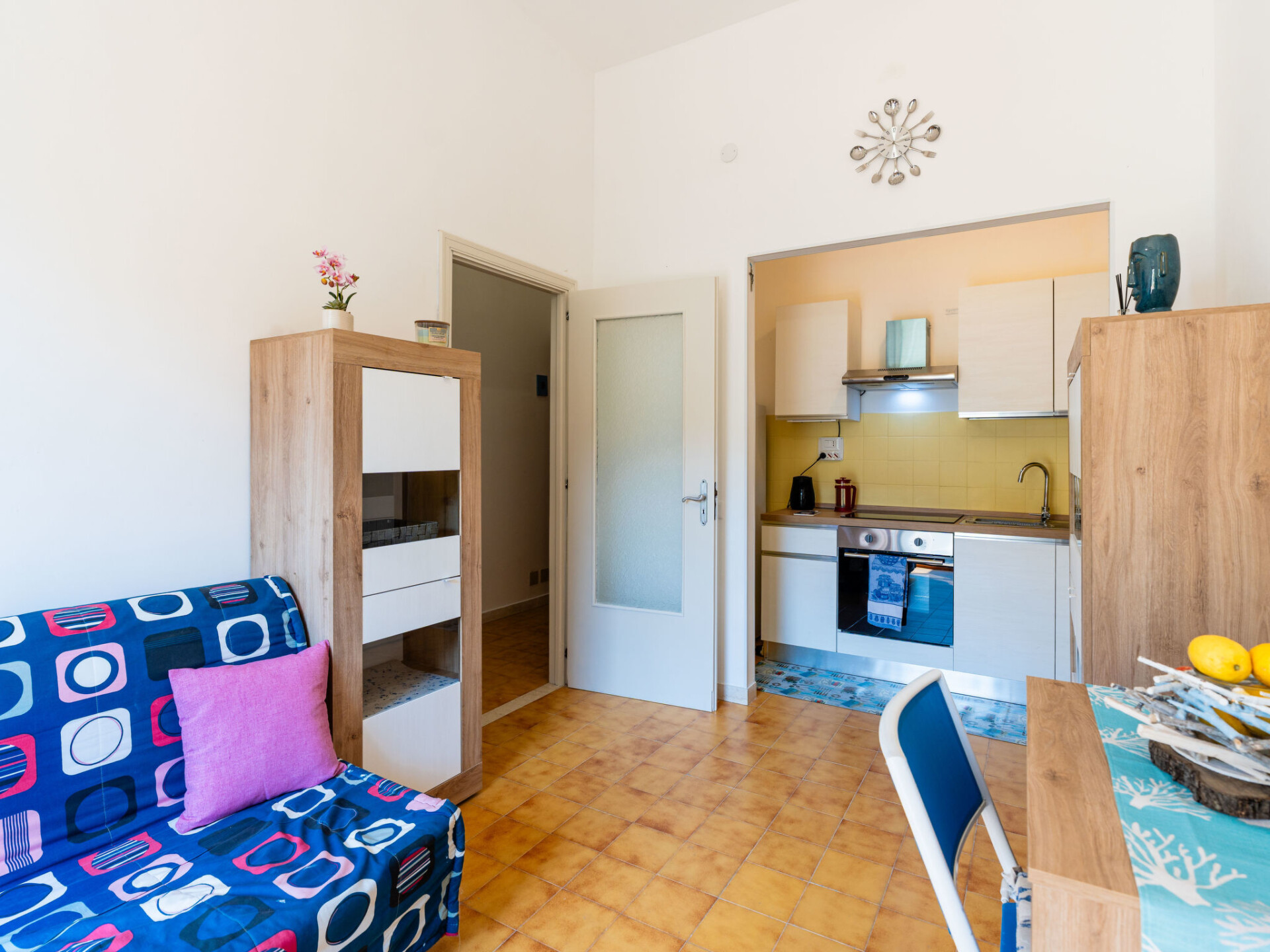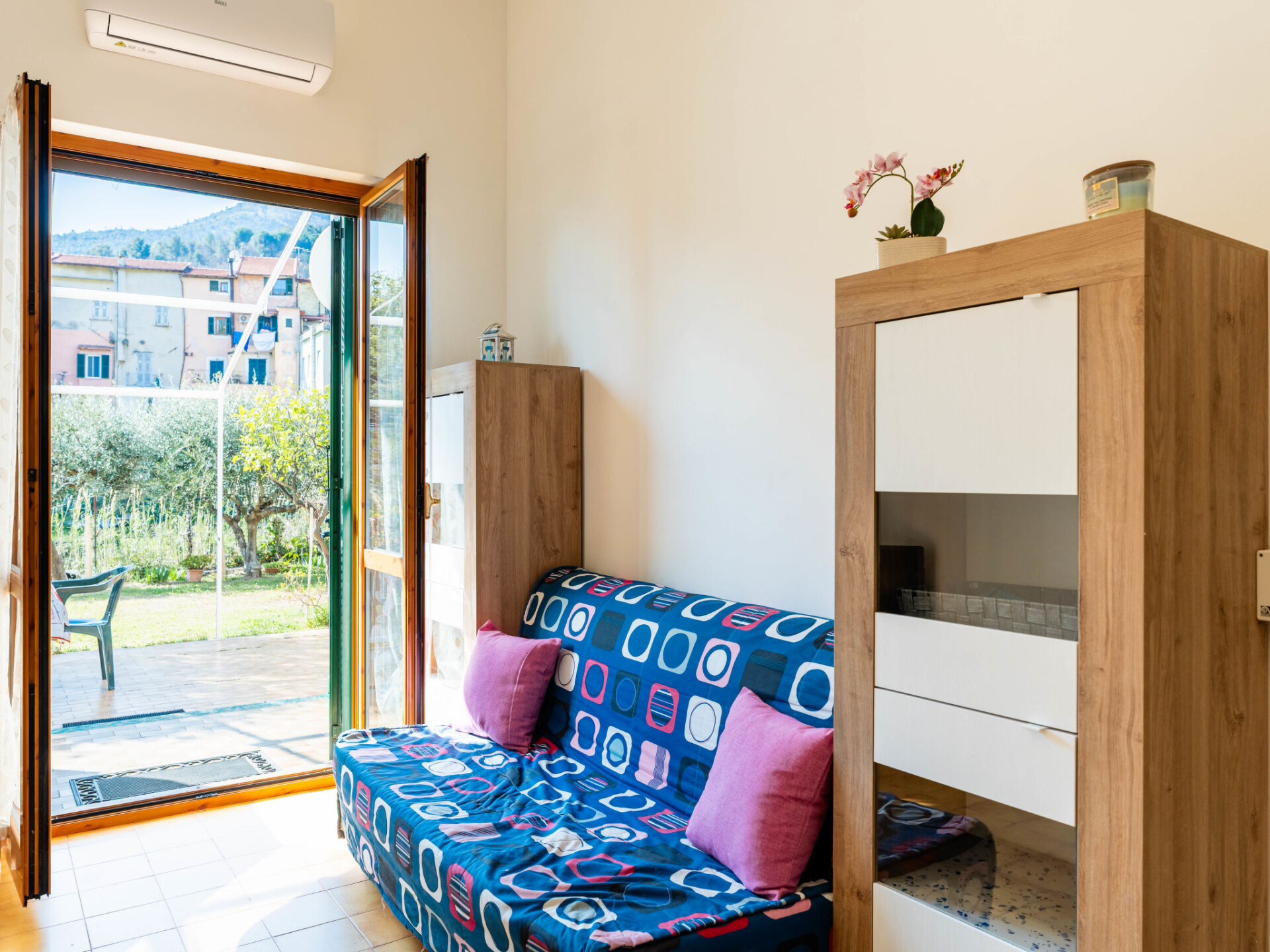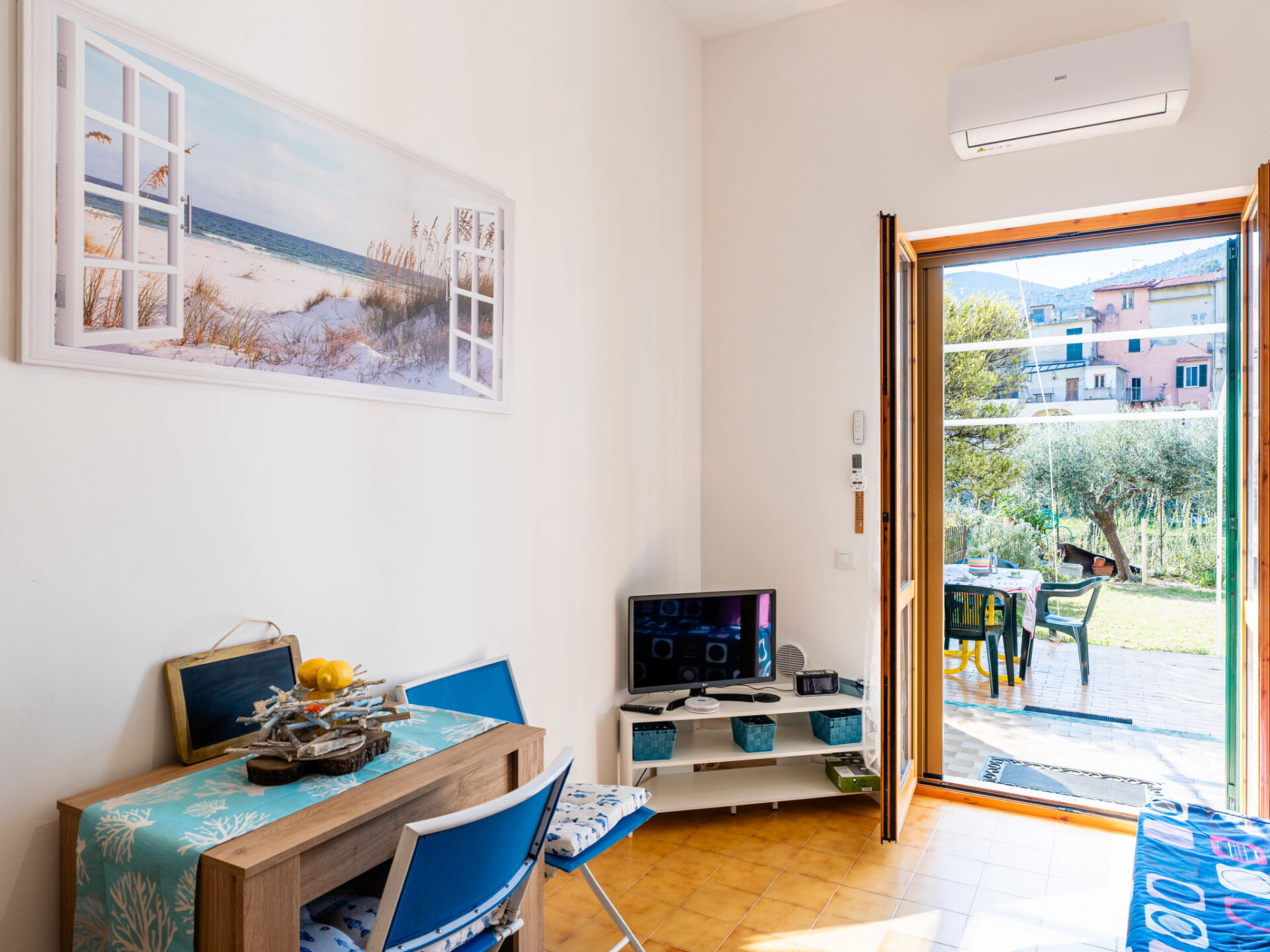 "Marisol", appartement 2-kamers 50 m2, op de begane grond. Mooi en smaakvol ingericht: woon-/eetkamer met 1 divanbed (160 cm, lengte 200 cm). Uitgang naar de tuin, naar het terras. 1 2-pers. kamer. Open keuken (oven, 4 inductiekookplaten, broodrooster, waterkoker, elektrische koffiemachine). Douche/bidet/WC. Air-conditioning, heteluchtverwarming. Terras 30 m2, groot tuin. Mooi uitzicht op het landschap. Ter beschikking: wasmachine, kinderstoel tot 2 jaar (extra), haardroger. Internet (WiFi, gratis). Privé ingang, rookmelders, brandblusser. IT009061C2Q97DP3V4