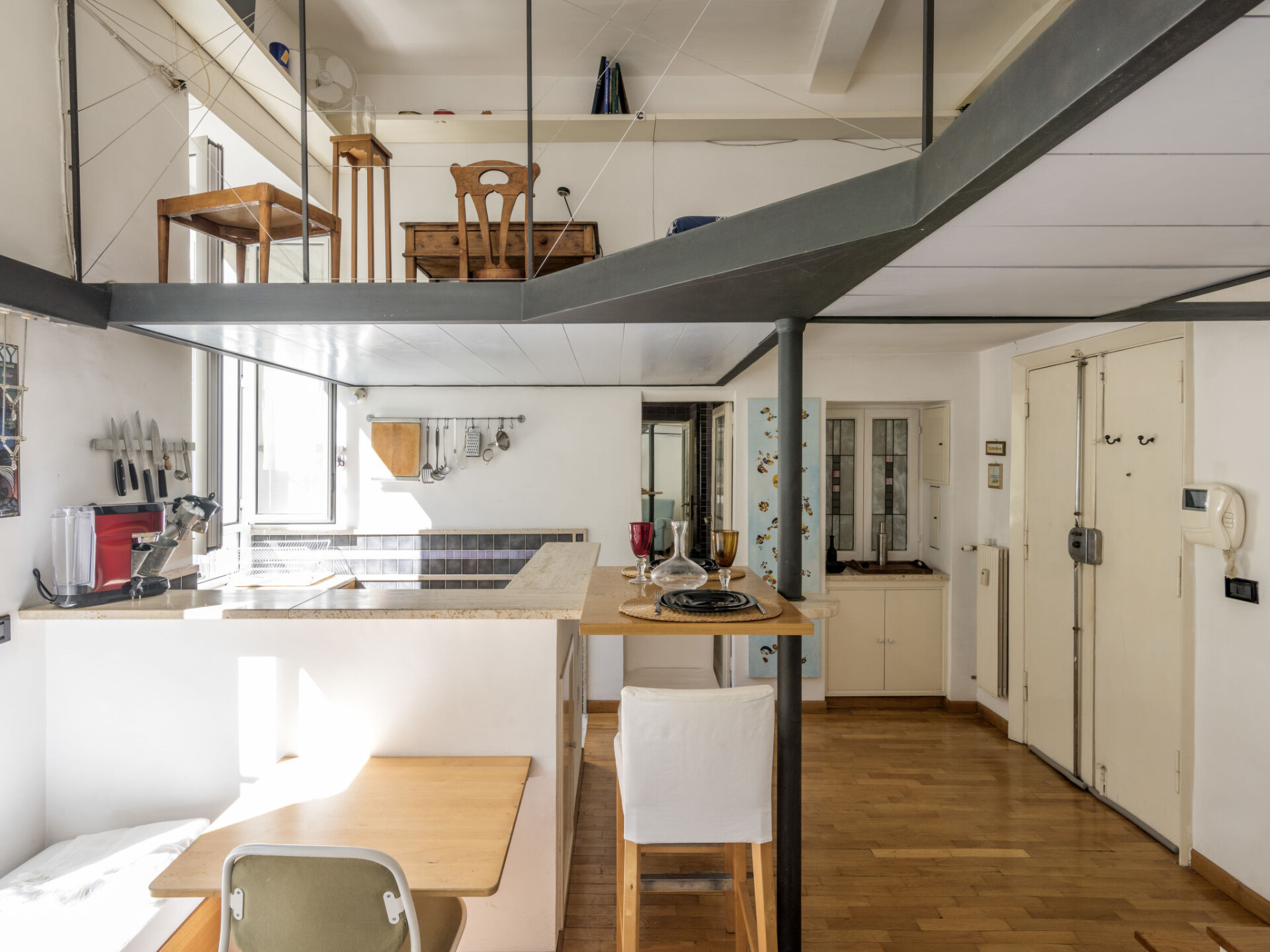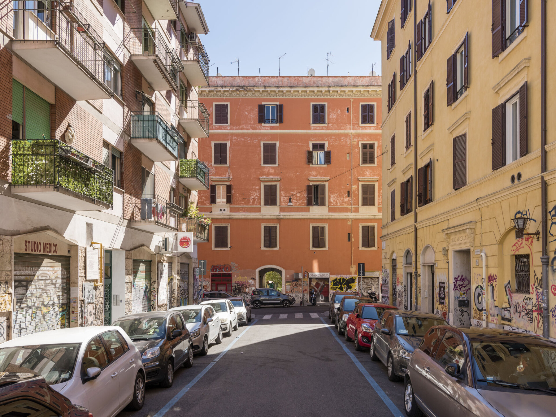 Oud flatgebouw. San Lorenzo, centrale, drukke, zonnige ligging, gebied met weinig verkeer, 20 km van zee. (22 treden). Openbare parkeerplaatsen 5 m. Winkel 100 m, levensmiddelenwinkel, bar, bakkerij 200 m, tramhalte 600 m, bushalte 500 m, treinstation "Termini" 1 km, metrostation "Termini" 1 km, zandstrand "Fregene/Maccarese" 20 km. Attracties in de buurt: Piazza Vittorio 3 km, San Giovanni 4 km, Colosseo Fori Romani 5 km. Geen lift. Vliegveld 10 km van het huis.