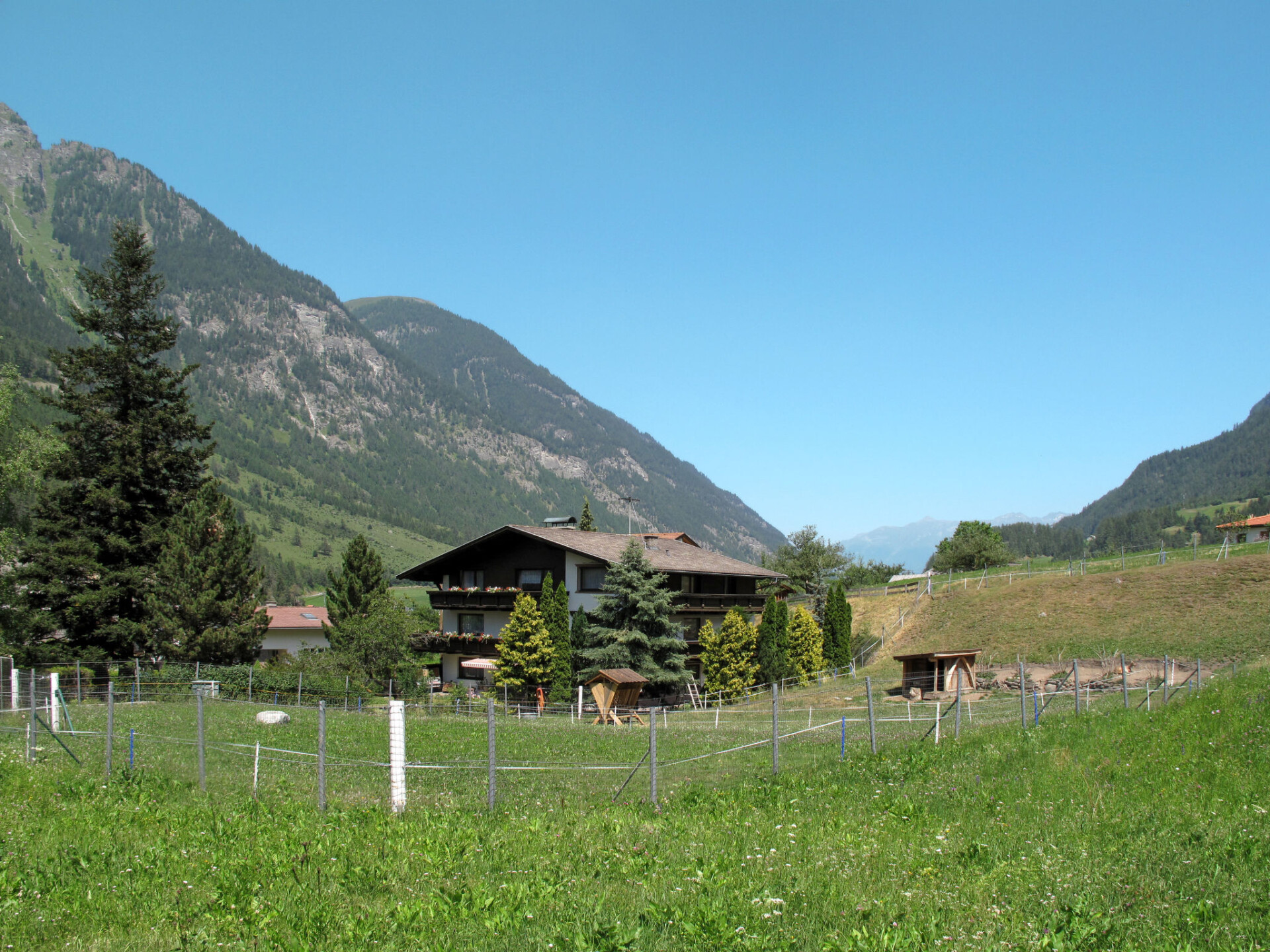 Huis "Martina", 970 m boven zeeniveau. In de wijk Dorf, 500 m van het centrum van Pfunds, 30 km van het centrum van Landeck. Voor medegebruik: terrein 1.500 m2 (omheind) met bomen. In het huis: berging voor ski's. Parkeerplaats (voor 4 auto's) op het terrein. Supermarkt 500 m, bushalte 200 m, treinstation "Landeck" 30 km, overdekt zwembad 28 km. Bergtrein 15 km, skipisten 15 km, skibushalte 200 m, skischool 750 m, rodelbaan 1 km, langlaufloipe 500 m. Bekende skigebieden kunnen gemakkelijk worden bereikt: Nauders (Skiarena Reschenpass) 15 km, Samnaun (Silvretta Skiarena) 15 km. Gratis skibus. Gratis skibus naar het skigebied Pfunds-Samnaun en Pfunds-Nauders. De eigenaar woont in hetzelfde huis.