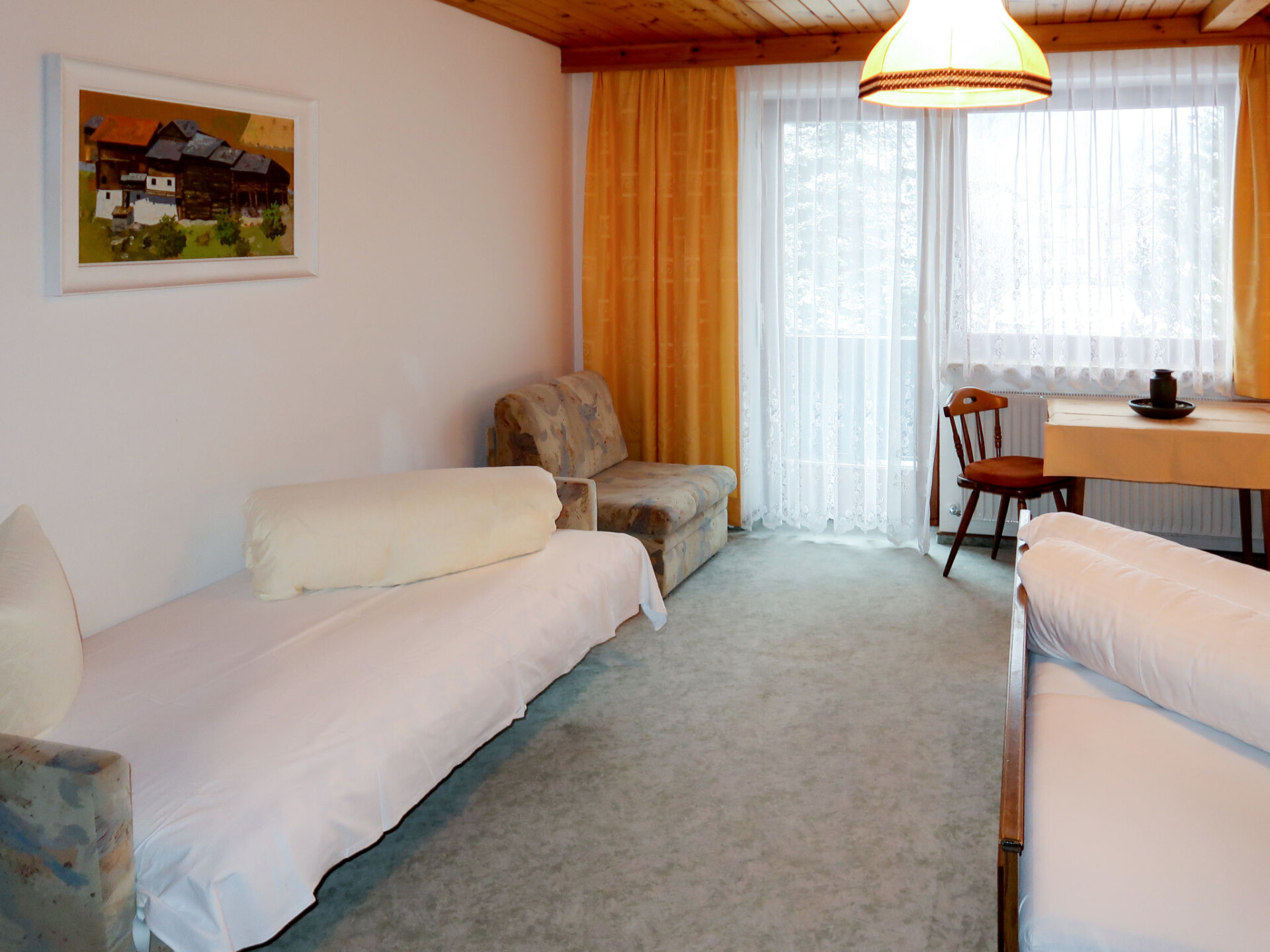 "Martina", appartement 3-kamers 120 m2 op de 2e verdieping, op het zuidwesten gelegen. Rustiek en met veel hout ingericht: 2e Verdieping: woon-/eetkamer met eethoek en Sat-TV. 1 kamer met 1 divanbed, 1 2-pers bed en bad/WC. Uitgang naar het balkon. 1 2-pers. kamer met 1 2-pers bed (160 cm), douche/WC. Uitgang naar het balkon. 1 kamer met 1 divanbed, 1 2-pers bed en douche/WC. Uitgang naar het balkon. Keuken (4-pits kookplaat, oven, afwasmachine, broodrooster, waterkoker, magnetron, elektrische koffiemachine) met eettafel. Uitgang naar het balkon. Olie-verwarming. Vloerbedekking. 2 balkons. Balkonmeubilair. Ter beschikking: Internet (WiFi, gratis). Maximaal 1 huisdier/hond toegestaan. Rookmelders.