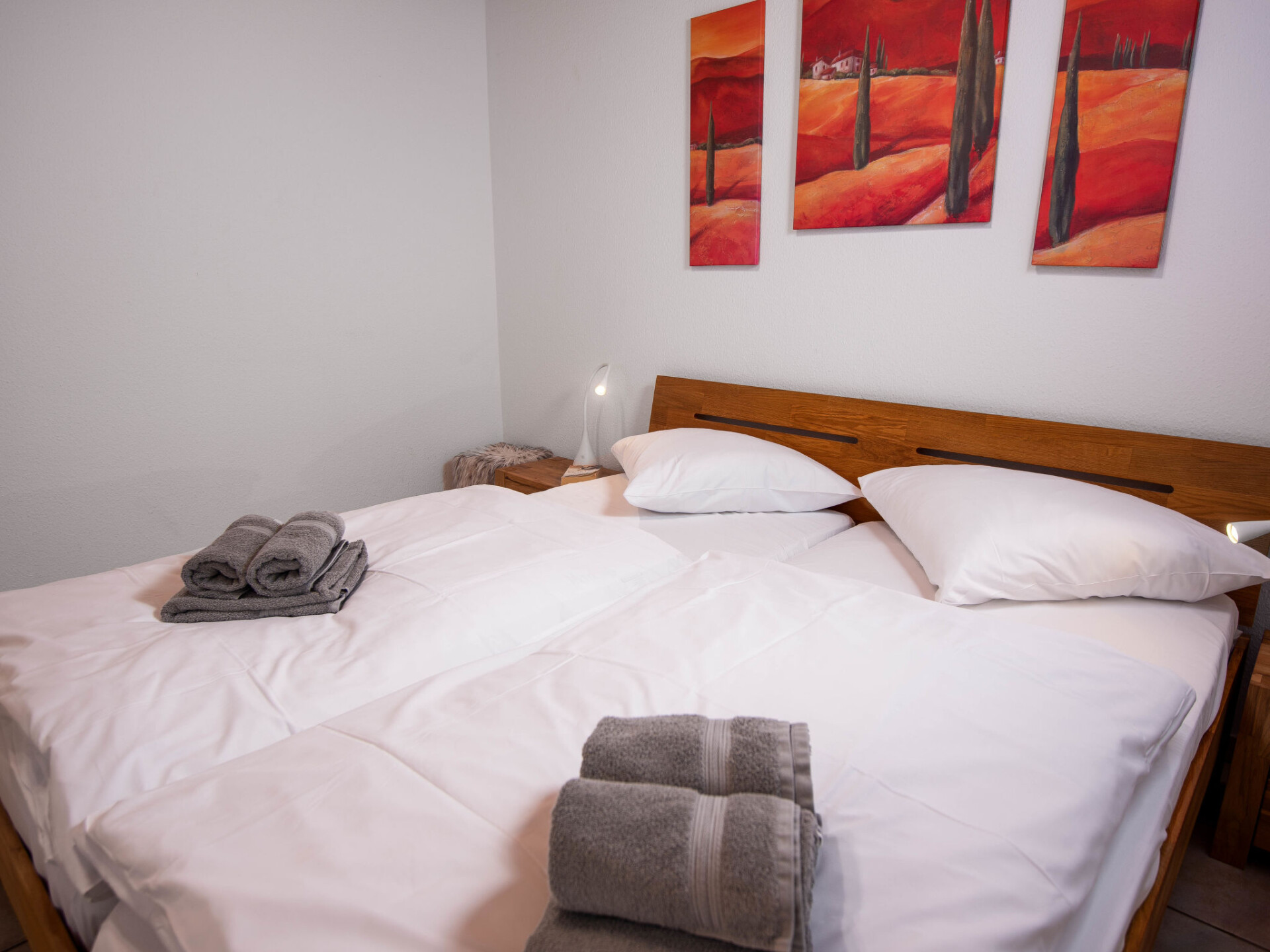 "Martina", halfvrijstaand huis 4-kamers 100 m2 op 2 verdiepingen, op de begane grond. Comfortabel en smaakvol ingericht: woon-/eetkamer 21 m2 met Sat-TV (Flatscreen TV), stereo-installatie. Uitgang naar het terras. 1 kamer 11 m2 met 1 2-pers bed (2 x 90 cm, lengte 200 cm). Kookhoek (oven, afwasmachine, 4 keramische glas kookplaten, broodrooster, waterkoker, magnetron, elektrische koffiemachine). Douche/WC. Bovenverdieping: 1 kamer 9 m2, met afgeschuinde daken met 1 2-pers bed (2 x 90 cm, lengte 200 cm), Sat-TV (Flatscreen TV), DVD. 1 kamer 10 m2, met afgeschuinde daken met 2 bedden (90 cm, lengte 200 cm). Douche/WC. Terras 20 m2, overdekt. Terrasmeubelen, barbecue. Ter beschikking: kinderstoel (extra). Internet (Internet (WiFi), gratis). Blu-Ray speler. Rookvrij huis. Rookmelders.