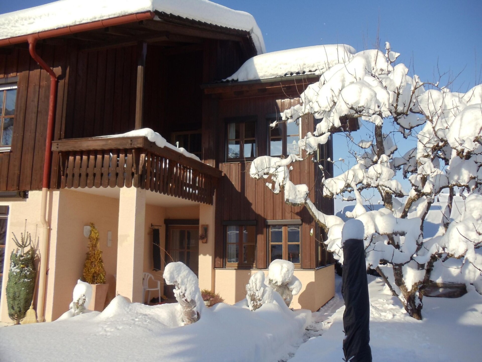 Exclusive holiday flat Recreation-relaxation-activities and many sights in the immediate vicinity in the most beautiful holiday region in Germany. The Chiemgau mountains, the lakes like our Bavarian Sea the Chiemsee, the Königsee, the Waginger See and many more. The torrents, the beautiful cycle paths, the hiking trails and the walks from mountain pasture to mountain pasture - where better to enjoy nature? What more could you want to relax? We offer all of this in a holiday flat with all the comfort you need. Pick-up from the train possible. Munich airport 1.5 hours, Salzburg airport 35 minutes.All public transport can be reached on foot in a few minutesTo the town centre 10 minOn arrival a bottle of wine or sparkling wine with 2 weeks booking an invitation from the hostFrom May 2025 introduction of the Chiemgau Card with approx. 40 free servicesfor occupancy of 2 persons, a one-off cleaning fee of € 25 will be charged for the use of the 2nd bedroomThe holiday flat is equipped Kitchen with electric cooker ceramic hob, microwave, kettle, coffee machine, toaster, dishwasher, fridge with freezer egg cooker Kitchen dining area (bay window) space for5 people Balcony with view of the mountains Living room with flat screen TV Bedroom Beds 2mx2m 2nd bedroom equipped with bed 2mx1.40m flat screen TV Bed linen and hand shower towels are providedLarge garden with sun loungers, table, chairs, barbecueW- Lan is provided free of charge on request, otherwise there are no costs.Berchtesgaden, Chiemsee, Salzburg, Reit im Winkl, Bad Reichenhall can all be reached by bus, some of which can be used free of charge with the guest card, more details are described on the guest card. The swimming pool, newly renovated in 2022, is a 15-minute walk away. The Mammut Museum in the village and the Hochfelln cable car are 3 km away. Bathing lakes Chiemsee, Dreiseen area near Ruhpolding Waginger See Tüttensee