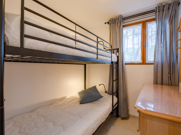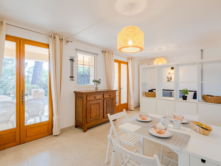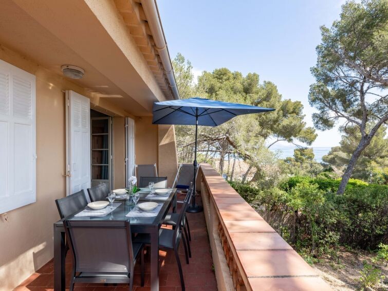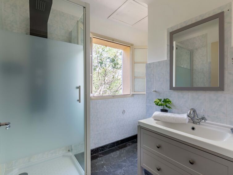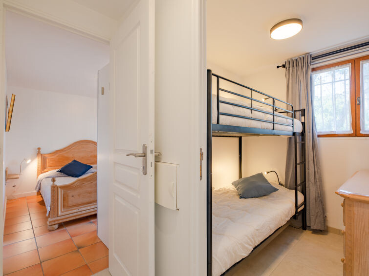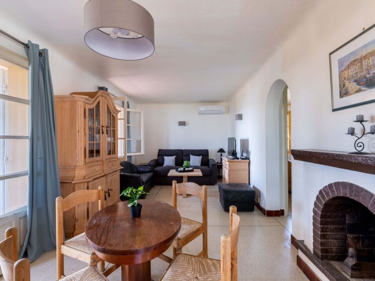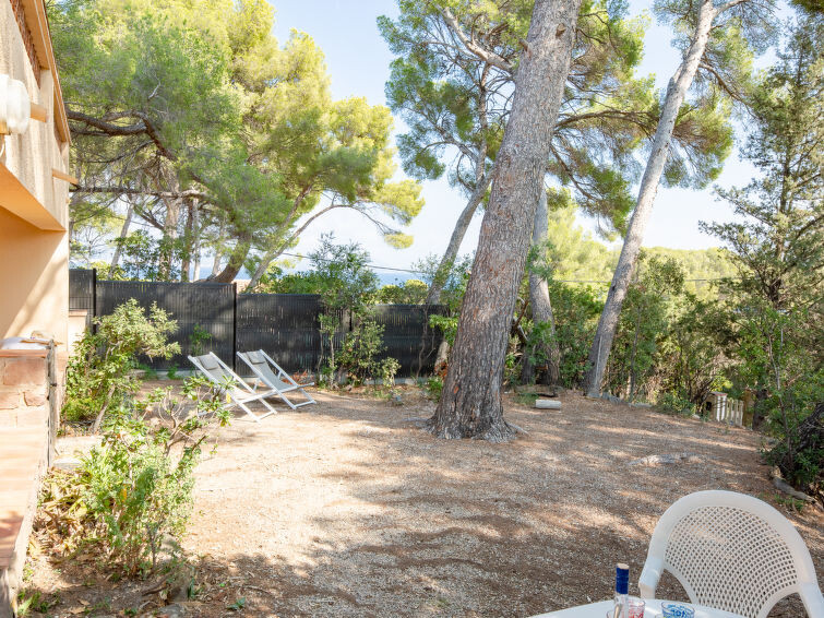 Huis 5-kamers 90 m2 op 2 verdiepingen. Gedeeltelijk gerenoveerd in 2023, eenvoudig en mooi ingericht: woon-/eetkamer met air-conditioning. Uitgang naar de tuin, naar het terras. 1 kamer met 1 2-pers bed (2 x 90 cm, lengte 190 cm). Uitgang naar de tuin. 1 kinderkamer met 1 x 2 stapelbedden (90 cm, lengte 190 cm). Open keuken (oven, 2 keramische glas kookplaten, broodrooster, waterkoker, diepvriezer, elektrische koffiemachine). Douche/WC. Elektrische verwarming. Bovenverdieping: (buitentrap) woon-/eetkamer met 1 2-pers divanbed (1 x 140 cm, lengte 190 cm), open haard (alleen decoratie), TV (Flatscreen TV), air-conditioning. Uitgang naar het balkon. 1 kamer met 1 2-pers bed (2 x 90 cm, lengte 190 cm), air-conditioning. Keuken (2 keramische glas kookplaten, broodrooster, waterkoker, diepvriezer, elektrische koffiemachine, combimagnetron). Douche/WC. Elektrische verwarming. Balkon 20 m2, terras 20 m2 gedeeltelijk overdekt, op het zuiden gelegen. Balkonmeubilair. Beperkt uitzicht op zee. Ter beschikking: wasmachine, strijkijzer. Internet (WiFi, gratis). Rookvrij huis. Maximaal 1 huisdier/hond toegestaan. Rookmelders. Geen interne verbinding tussen de etages. 83107000864X8