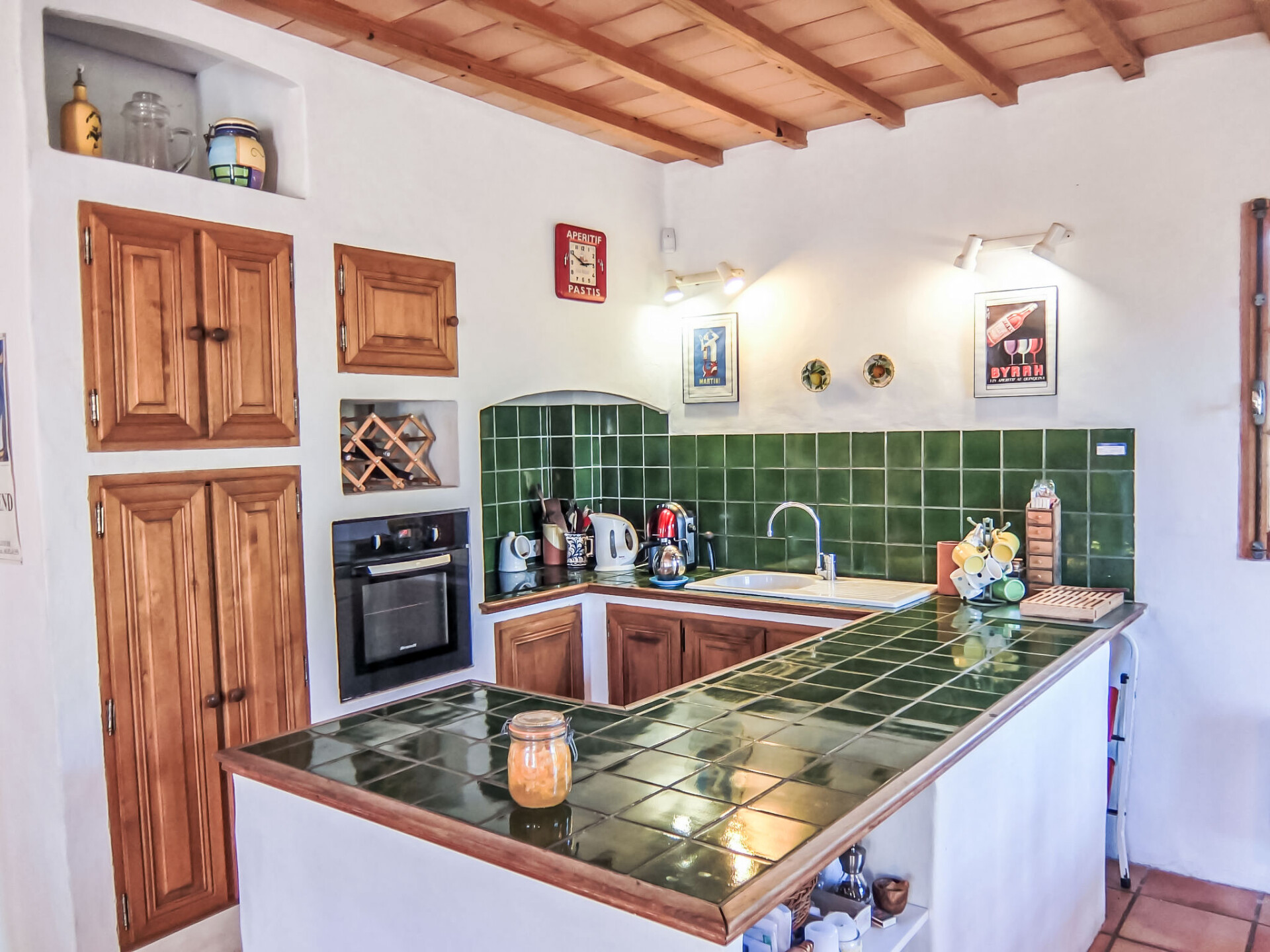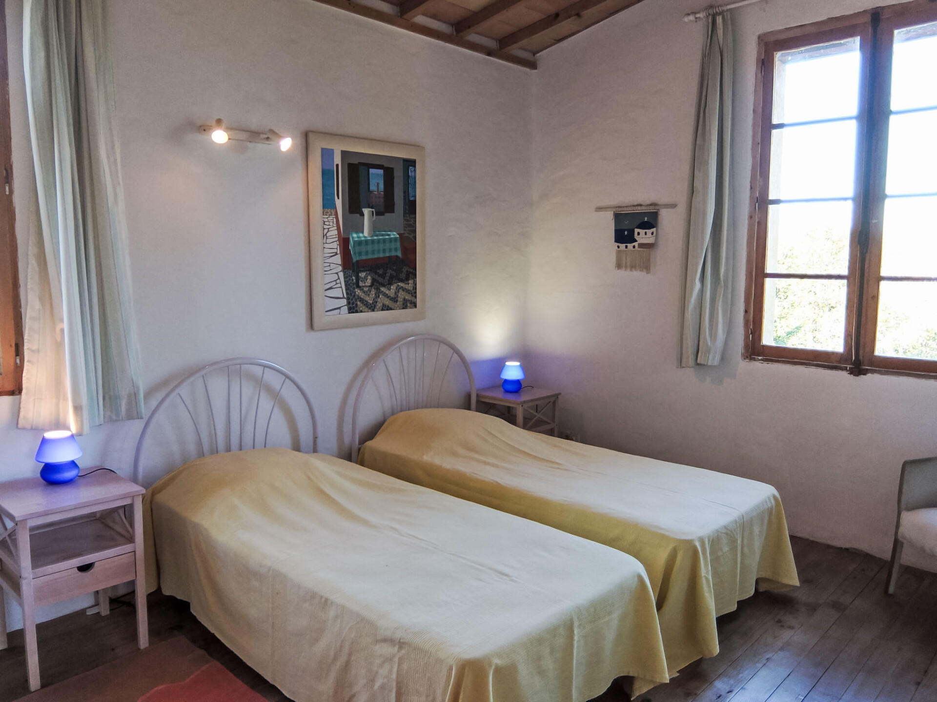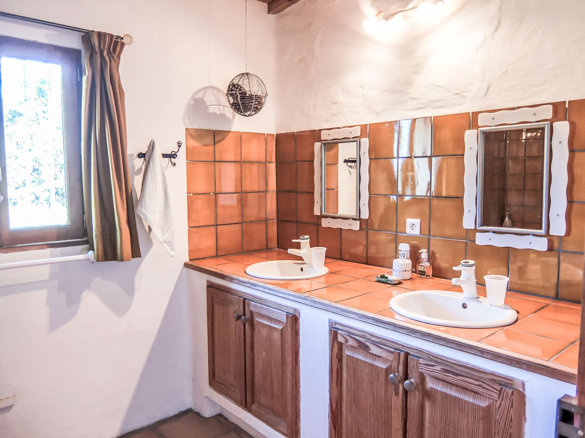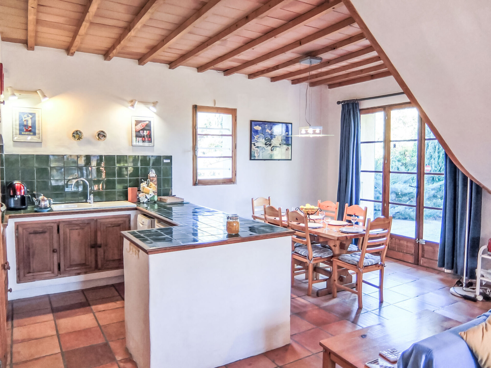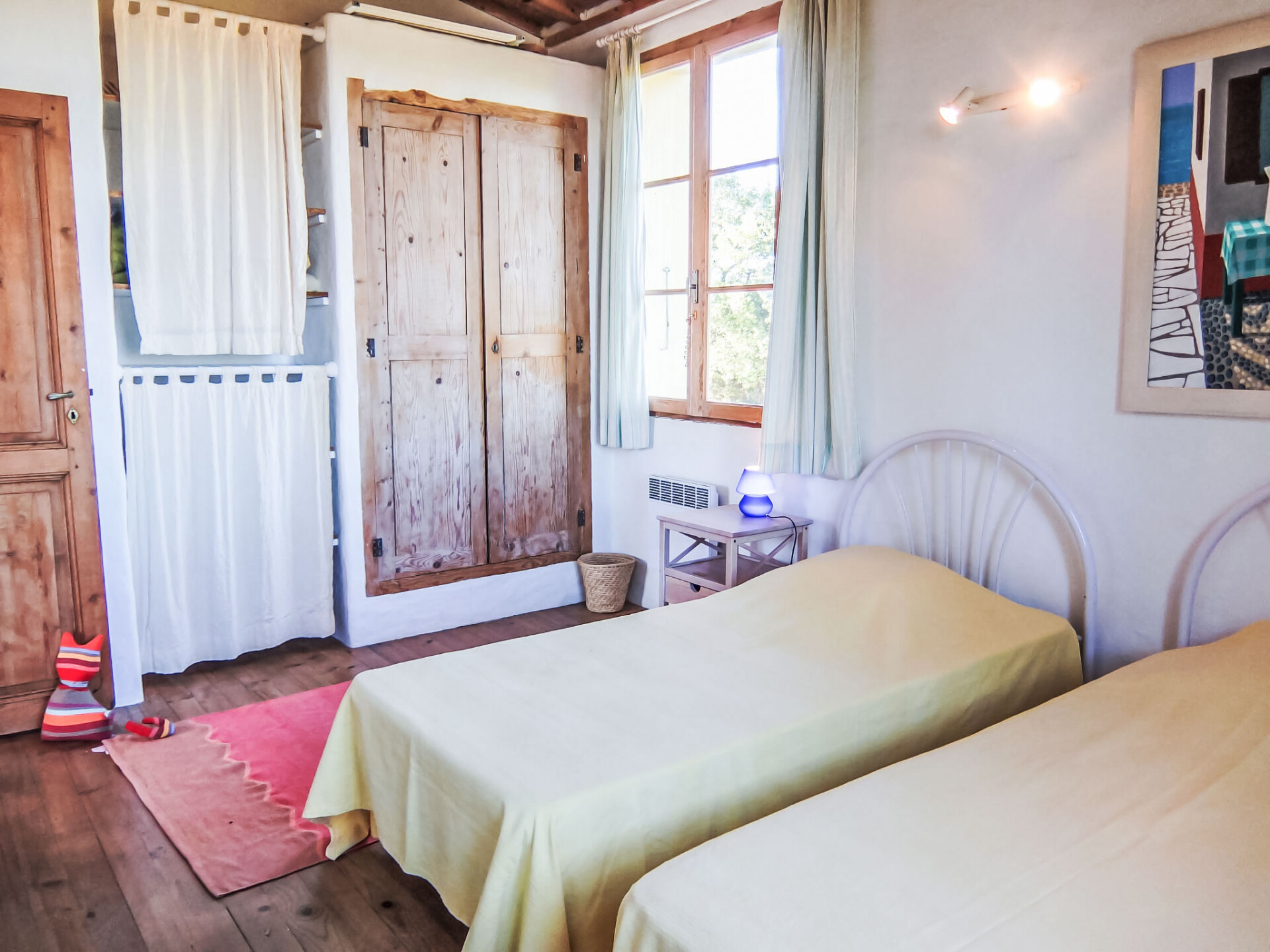 Huis 6-kamers 150 m2 op 2 verdiepingen. Rustiek ingericht: woon-/eetkamer met houtkachel. Uitgang naar het terras. Kleine salon met TV. Uitgang naar het terras, naar het zwembad. Open keuken (oven, afwasmachine, 3 keramische glas kookplaten, magnetron, diepvriezer, elektrische koffiemachine, pads voor de koffiemachine (Senseo) extra). Aparte WC. Bovenverdieping: 2 kamers, elke kamer heeft 1 bed (90 cm, lengte 190 cm). 1 kamer met 1 2-pers bed (1 x 140 cm, lengte 190 cm). 1 kamer met 2 bedden (90 cm, lengte 190 cm). Badkamer, douche, aparte WC, dubbele wastafels. Groot terras 60 m2. Terrasmeubelen, barbecue. Mooi uitzicht op de bergen. Ter beschikking: wasmachine. Internet (WiFi, gratis). Rookmelders.