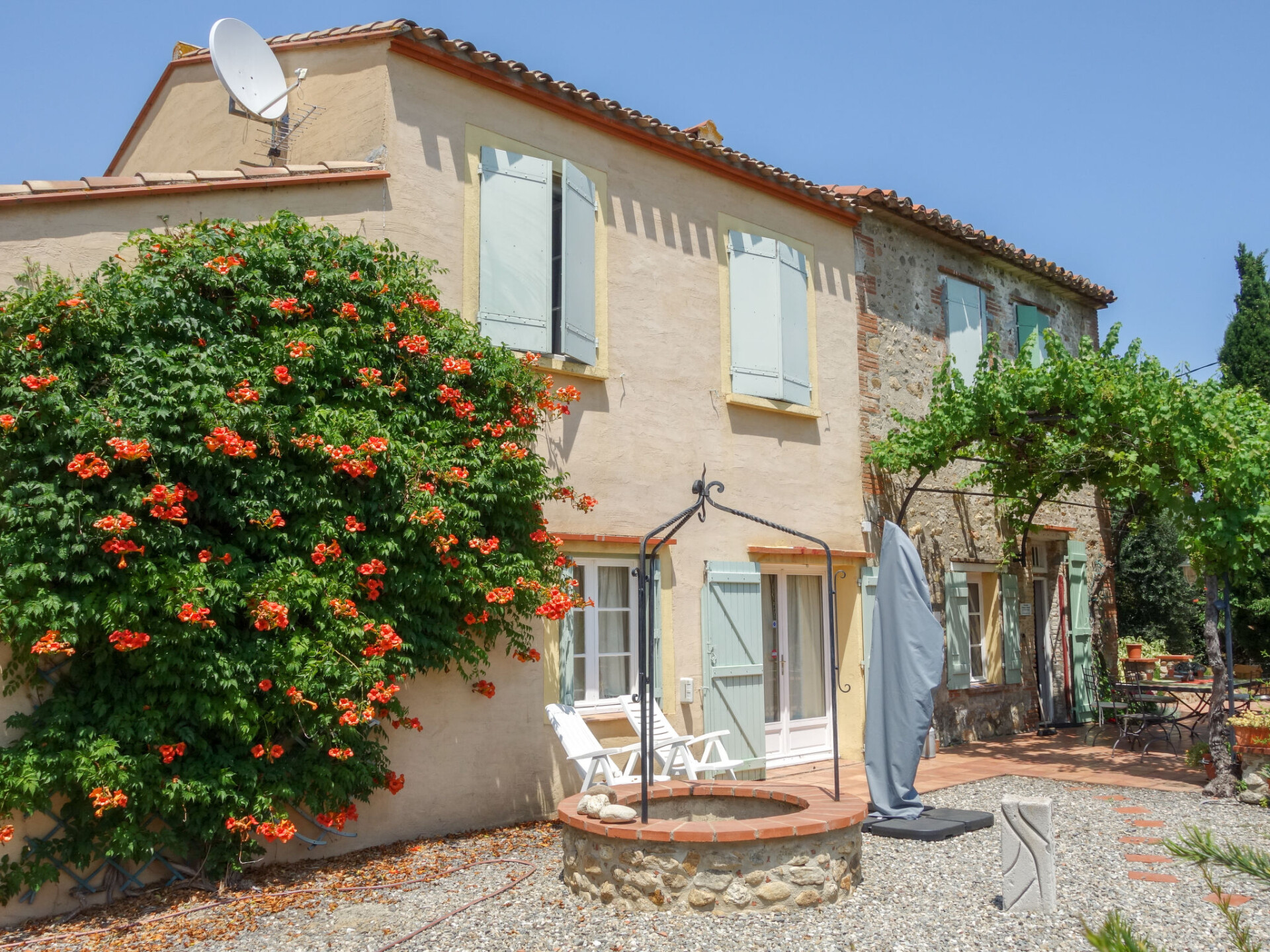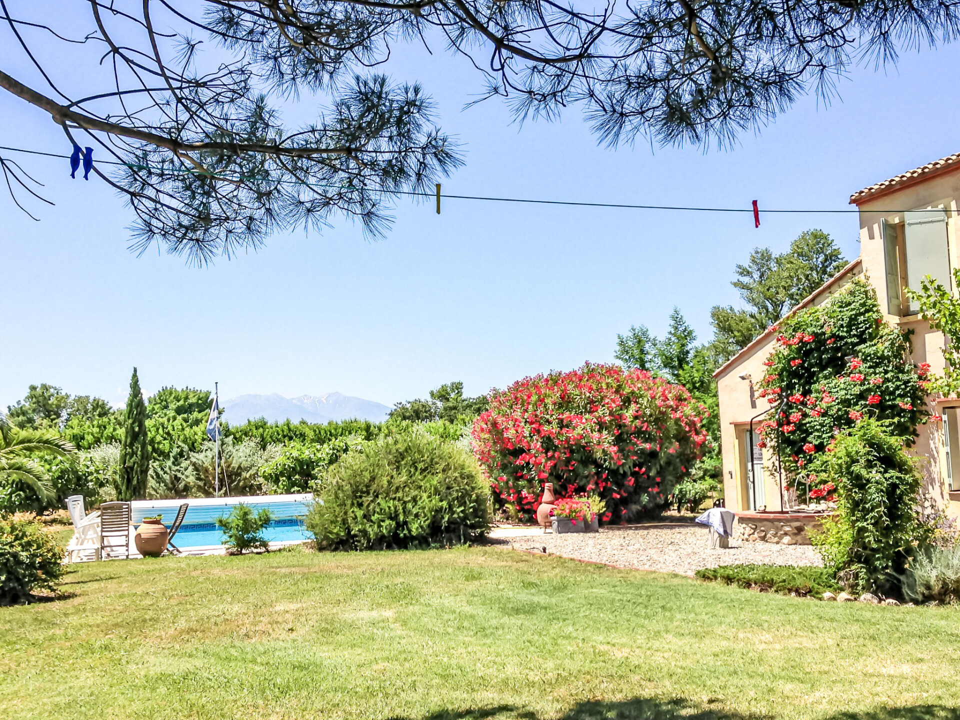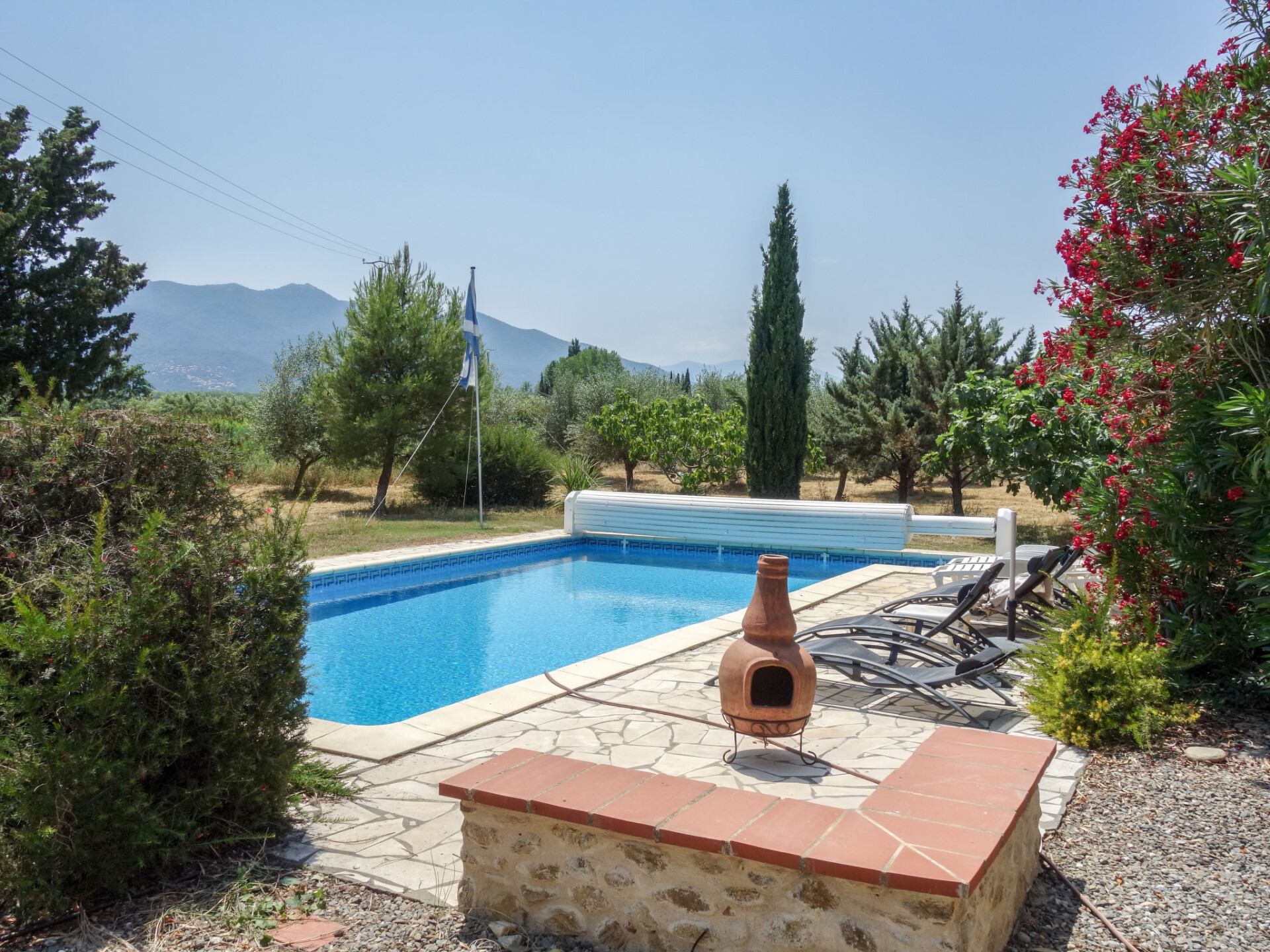 Laroque des Albères 10 km van Argeles: Rustieke mas "Mas Troumpill", omgeven door bomen en velden. Buiten de plaats, geïsoleerde, rustige ligging, 12 km van zee, 12 km van het strand. Voor alleengebruik: groot tuin (niet omheind), openluchtzwembad hoekig (10 x 5 m, 120 - 180 cm diepte, seizoensgebonden beschikbaarheid: 01.Jun. - 30.Sep.) met oprolbaar afdekscherm. Toegangsweg tot aan het huis (onverharde weg). Parkeerplaats (voor 2 auto's). Winkel 1.7 km, supermarkt 1.8 km, restaurant 4.5 km, bushalte 4.5 km, treinstation "Argelès sur Mer" 12 km, zandstrand "Le Racou" 12 km. Jachthaven 12 km, golfterrein (27 holes) 20 km. Wandelgebied Les Albères 5 km. De sleuteloverdracht vindt plaats bij het agentschap Interhome in Saint-Cyprien, 22 km.