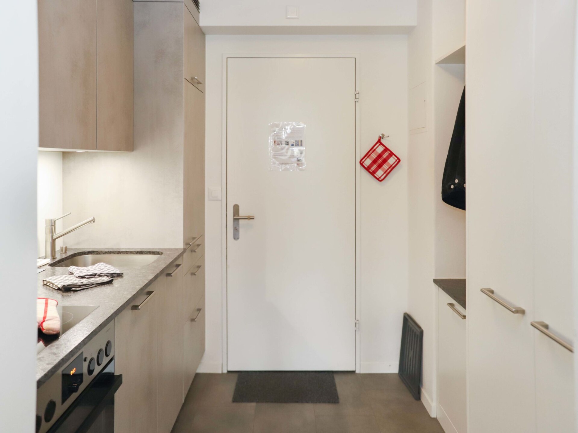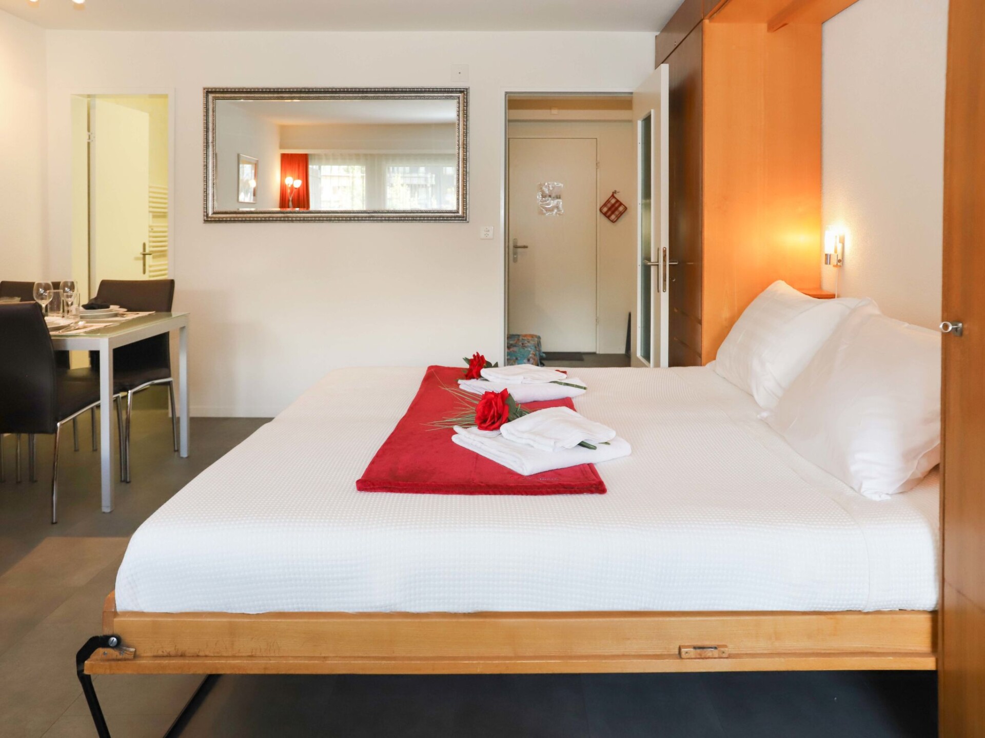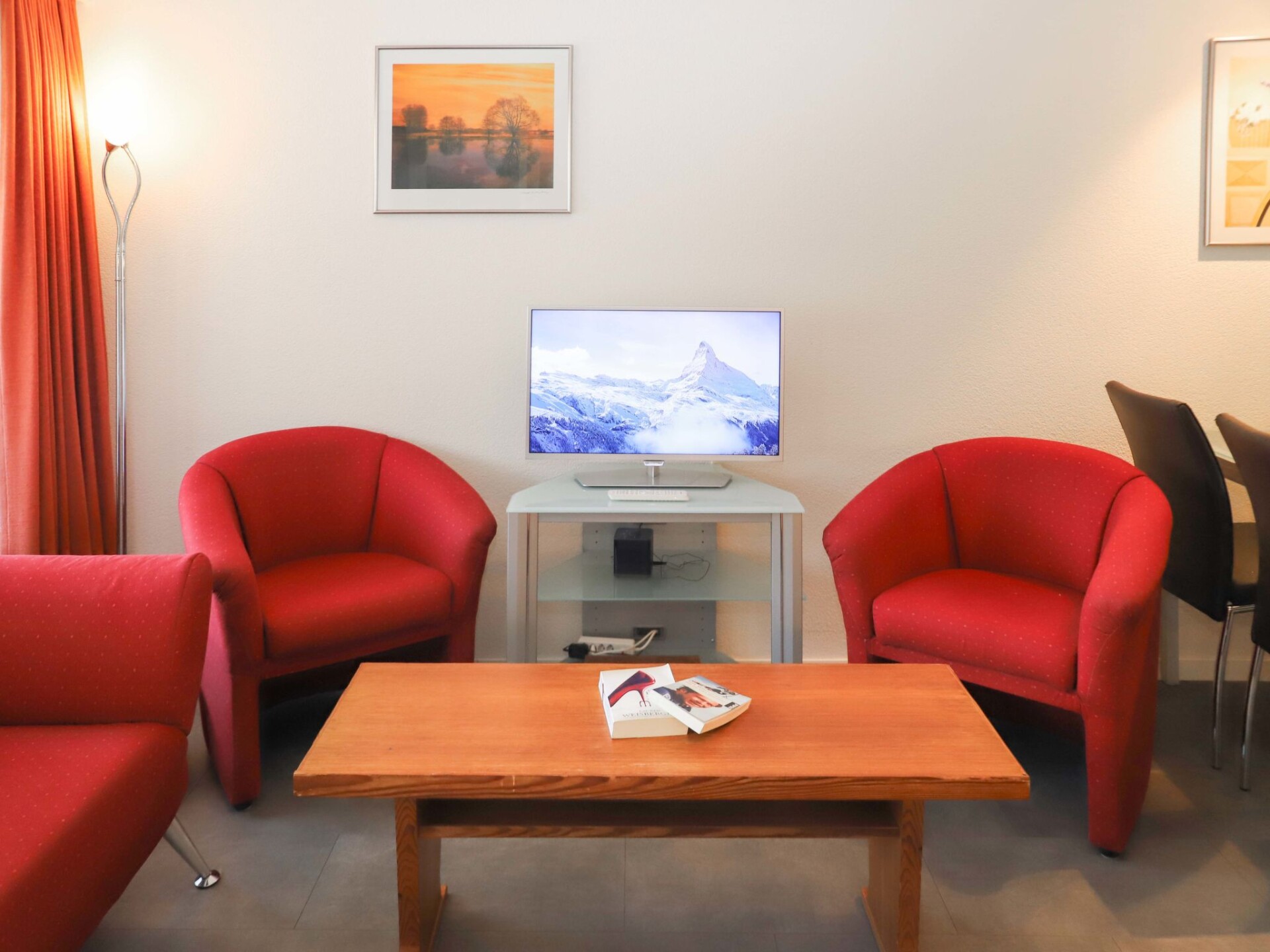 Appartement 1-kamer 33 m2 op de 4e verdieping, op het zuiden gelegen. Woon-/eetkamer met 2 opklapbedden en TV (Flatscreen TV), radio. Kookhoek in de hal (3-pits kookplaat, oven, afwasmachine, elektrische koffiemachine). Bad/WC. Balkon. Terrasmeubelen. Zeer mooi uitzicht op de bergen en the Matterhorn. Ter beschikking: Internet (WiFi, gratis). Niet rokers woning. Wonderschoon uitzicht op de Matterhorn.