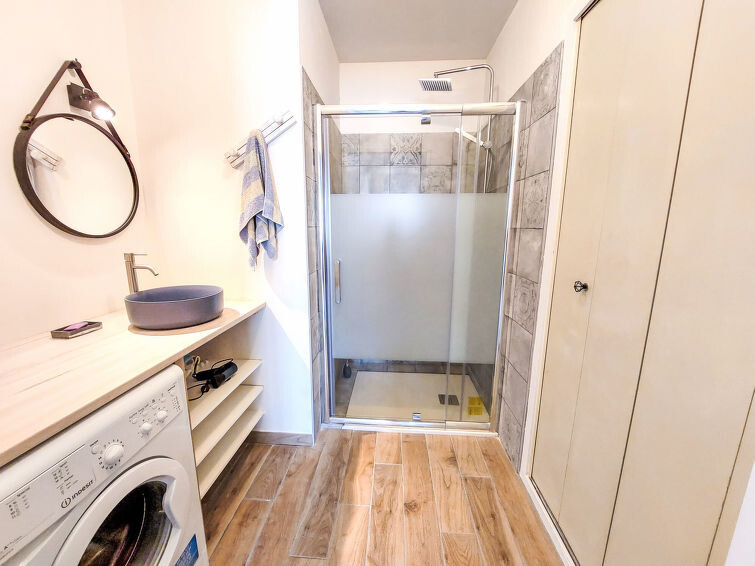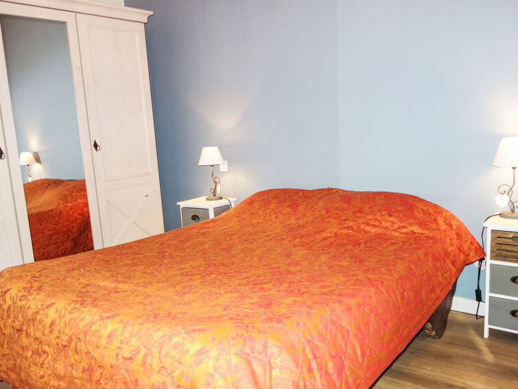 Huis in een rij 4-kamers 90 m2. Comfortabel ingericht: woon-/eetkamer met TV en air-conditioning. Uitgang naar het terras. 2 kamers, elke kamer heeft 1 2-pers bed (140 cm, lengte 190 cm), air-conditioning. 1 kleine kamer met 1 uitschuifbaar bed (2 pers. 2 x 90 cm, lengte 190 cm), air-conditioning. Open keuken (oven, afwasmachine, 3 inductiekookplaten, broodrooster, waterkoker, magnetron, diepvriezer, elektrische koffiemachine). Badkamer, douche, aparte WC. Verwarming, elektrische verwarming, air-conditioning. Terras 15 m2, op het zuiden gelegen. Terrasmeubelen, barbecue. Ter beschikking: wasmachine, strijkijzer, klamboe. Internet (WiFi, gratis). Parkeerplaats (omheind, 2 Auto's). Maximaal 1 huisdier/hond toegestaan. Rookmelders. Aanbod door een particulier volgens art. 155, IV van CGI.