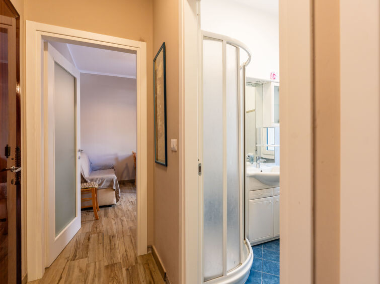 "Maurizio's Place", appartement 2-kamers 60 m2 op de 2e verdieping. Doelmatig en gezellig ingericht: woon-/eetkamer met 1 divanbed (120 cm), TV. Uitgang naar het terras. 1 kamer met 1 x 2 stapelbedden (90 cm, lengte 200 cm), 1 2-pers bed (160 cm, lengte 200 cm). Uitgang naar het terras. Kookhoek (oven, 4 kookpitten (vlammen), broodrooster, waterkoker). Uitgang naar het terras. Douche/bidet/WC. Gas-verwarming. Verwarming alleen beschikbaar van 01.11. tot 15.04. Groot terras 50 m2. Terrasmeubelen. Ter beschikking: kinderbed tot 2 jaar. Internet (WiFi, gratis). Maximaal 1 huisdier/hond toegestaan. IT009024B47FMQ5CRC