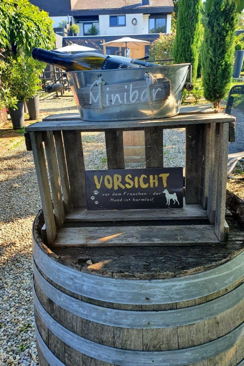 Possibly the longest and most beautiful sunset in Baden!We are not a hotel and do not want to become one. Our target group are relaxed, open-minded people who do not confuse a traditionally run winery and a 3-generation house with the all-in service of a hotel.So please, no bourgeois, no green counters and people whose first question is for the W-lan password, we offer a view, ambience, peace and wine!Ideal for bikers, hikers and nature lovers. Our doors are open to musicians, hippies, people with god vibrations who dance and laugh...But we have our own wines, super nice flats, lots of space and open space and, thanks to our exposed location, certainly one of the longest and most spectacular sunsets! Winery in an absolutely secluded location with mountain views of 3 different mountains, surrounded by vines, private paths and a park with truffle plantations and cosy spots...Resort character, no traffic or other noise pollution.The high plateau offers spectacular views of the Vosges, the Rhine plain, the Black Forest and the Kaiserstuhl.From up here you can even see the illuminated villages in the Vosges in the evening or the attractions of the Europapark and much more.For stylish, conceptual reasons, we have kept some rooms open in order to do justice to the size and spaciousness of the area.Our target group are relaxed, open-minded people who are looking for the charm of a remote winery.Several bedrooms, living rooms etc. with direct access to the park, vineyard hills and cosy outdoor areas.Equipped with 2 bathrooms and a Gardena shower in the outdoor area for summer use near the saunaA dining room with large wooden table etc., several bedrooms, cosy seating, large flat screen TV, hot tub...Shed for storing bikes, workshop, wine fridge, wine bar...The flat has a suite character, kitchen, living room and dining room are accessible from several sides.Various sleeping possibilities, large kitchen, large windows, wood fireplace, hot tub and historic sauna (sauna was in SWR3, first mobile sauna on the Kaiserstuhl!) in the park, resting possibilities,...masseur, cook, taxi on requestVineyard cottage with additional sleeping facilities.The overnight price includes up to 6 persons, each additional person will be charged with 69,-€In total there are over 15 sleeping possibilities.Additional guests with motorhomes can also arrive and use the entire infrastructure. The price per additional guest sleeping in their own motorhome or tent is €20 per guest per night.Pets are not allowed.Extensive meadows and parking areas with cosy spots, deckchairs, seating, parasols, trees...Sauna with a view in the outdoor area and hot tube made from an original wine barrelShielded private area.Winery in an absolutely secluded location with a unique view. Wines and spirits directly from the winegrower.Ideal for large families, friends, hikers, cyclists, bikers and wine lovers.The border triangle of Switzerland, Germany and France.Also popular as a winter resort or for bikers!The ski slopes in the Black Forest, the Alps and the Vosges are about an hour away. The Swiss mountains can be reached in 1-3 hours by car. If you like, you can drive through 3 different vegetation zones in one hour.Large, free-roaming guard dog for the entire site.No car traffic or other noise pollutionSurrounded by vineyards with extensive hiking and cycle paths, wineries in the immediate vicinity. Rhine forest with rivers, quarry ponds in the immediate vicinity and old trees.Rhine bridge to France 5 minutes away by car.Historic settlement towns of the Celts, Romans and millennia-old artefacts within a 30-minute walk.Nature reserves, diverse flora and fauna. Bee-eaters, birds of prey... on the Limburg, rare plants and insects on the Scheelinger Höhe...The winegrowing village of Sasbach is 1km away and offers a good infrastructure with shopping facilities, top restaurants, shops, cash machines...The quarry pond and rivers can be reached on foot in 15 minutes and by car in 5 minutes.Swimming pools and thermal baths can be reached by car in 15-30 minutes.It is important to us that you feel comfortable with us...If you are missing anything, please do not hesitate to contact us.