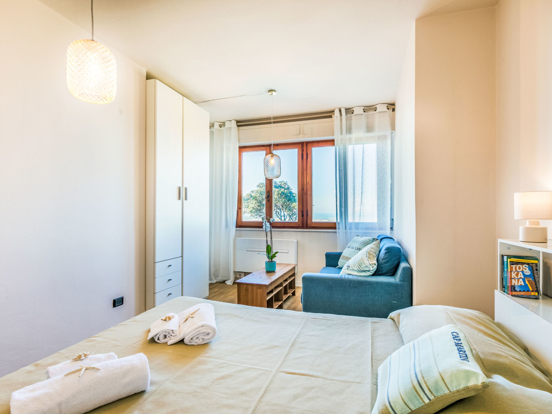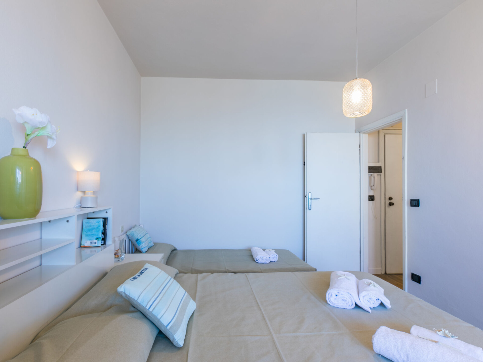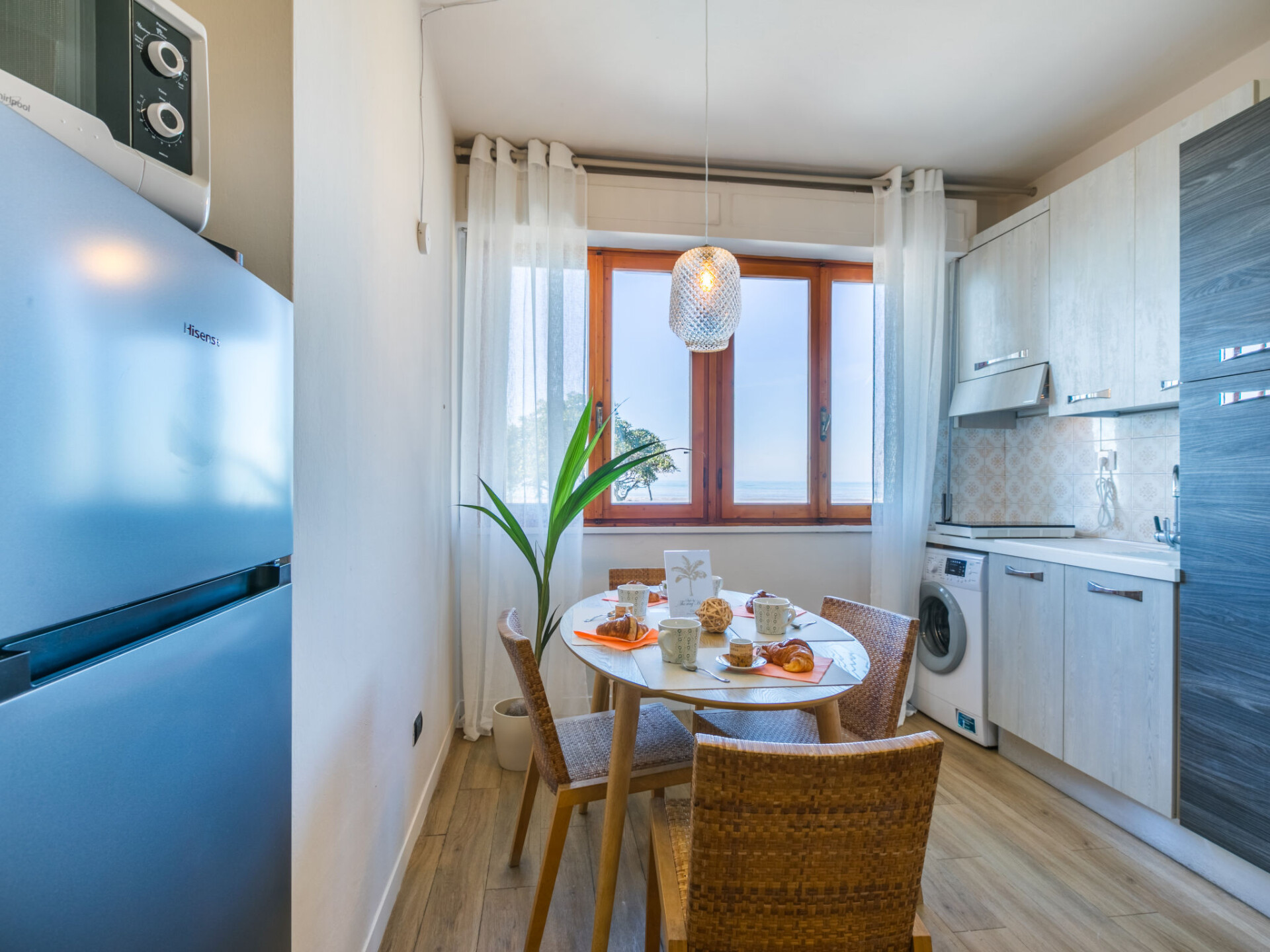 "Mediterraneo", appartement 2-kamers 40 m2, op verhoogde begane grond. Mooi en modern ingericht: woon-/slaapkamer met panoramavenster met 1 2-pers divanbed, eettafel, Digitale TV, Flatscreen TV en ventilator. 1 kamer met 1 bed, 1 2-pers bed, elektrische verwarming en air-conditioning. Kookhoek (3 inductiekookplaten, broodrooster, waterkoker, magnetron, elektrische koffiemachine, pads voor de koffiemachine (Nespresso)). Douche/bidet/WC. Verwarming niet in alle ruimtes. Mooi uitzicht op zee. Ter beschikking: wasmachine, haardroger. Internet (WiFi, gratis). Parkeerplaats bij het huis. Niet rokers woning. Brandblusser. Bedindeling is flexibel. Er zijn meer slaapmogelijkheden beschikbaar dan het maximaal toegestane aantal personen dat echter niet mag worden overschreden. IT049018C2SRXCUZPO