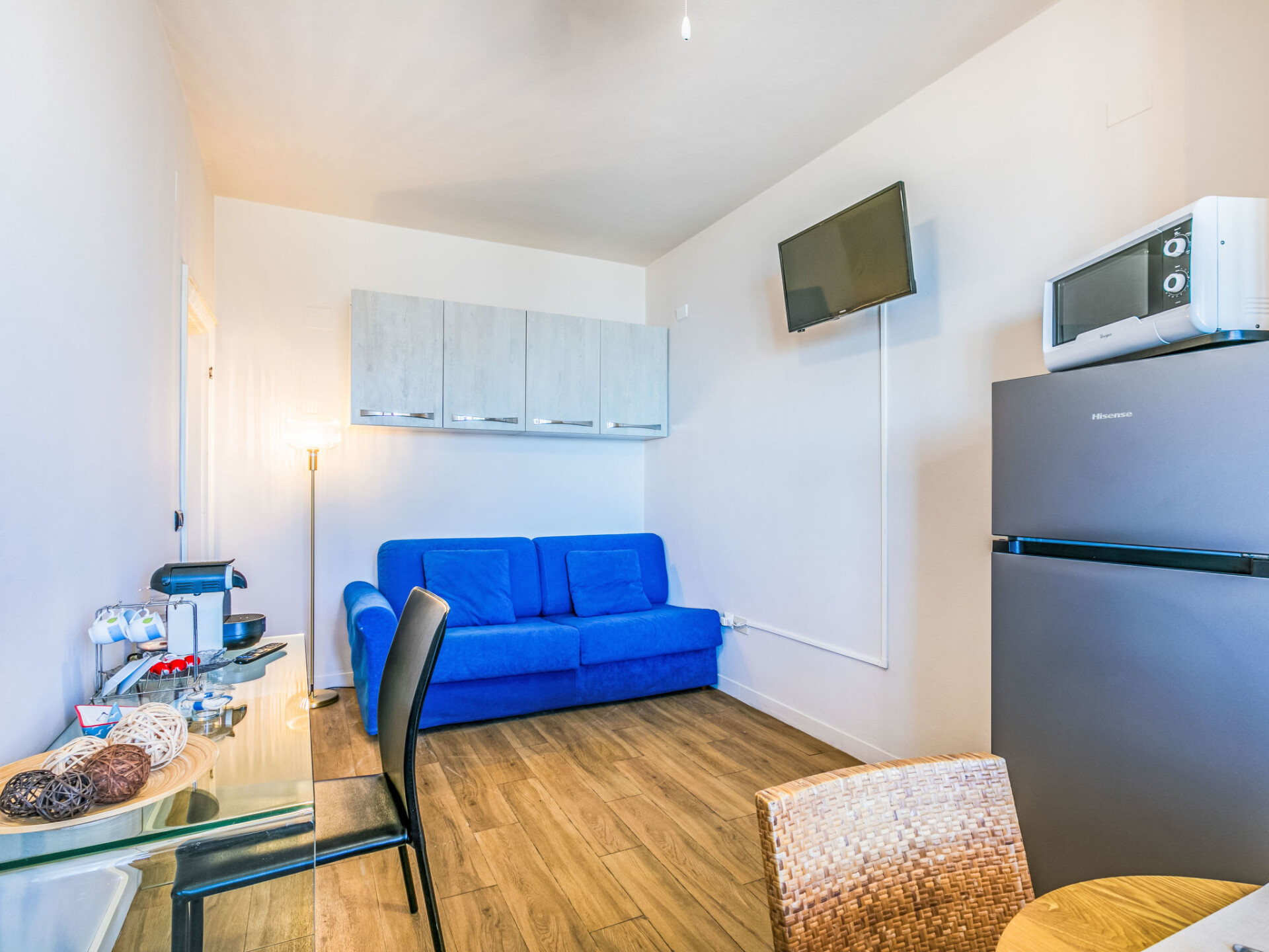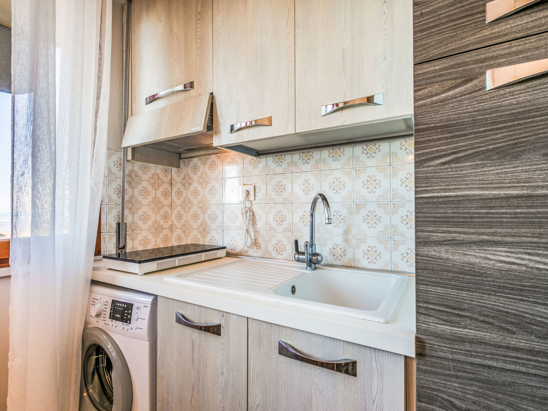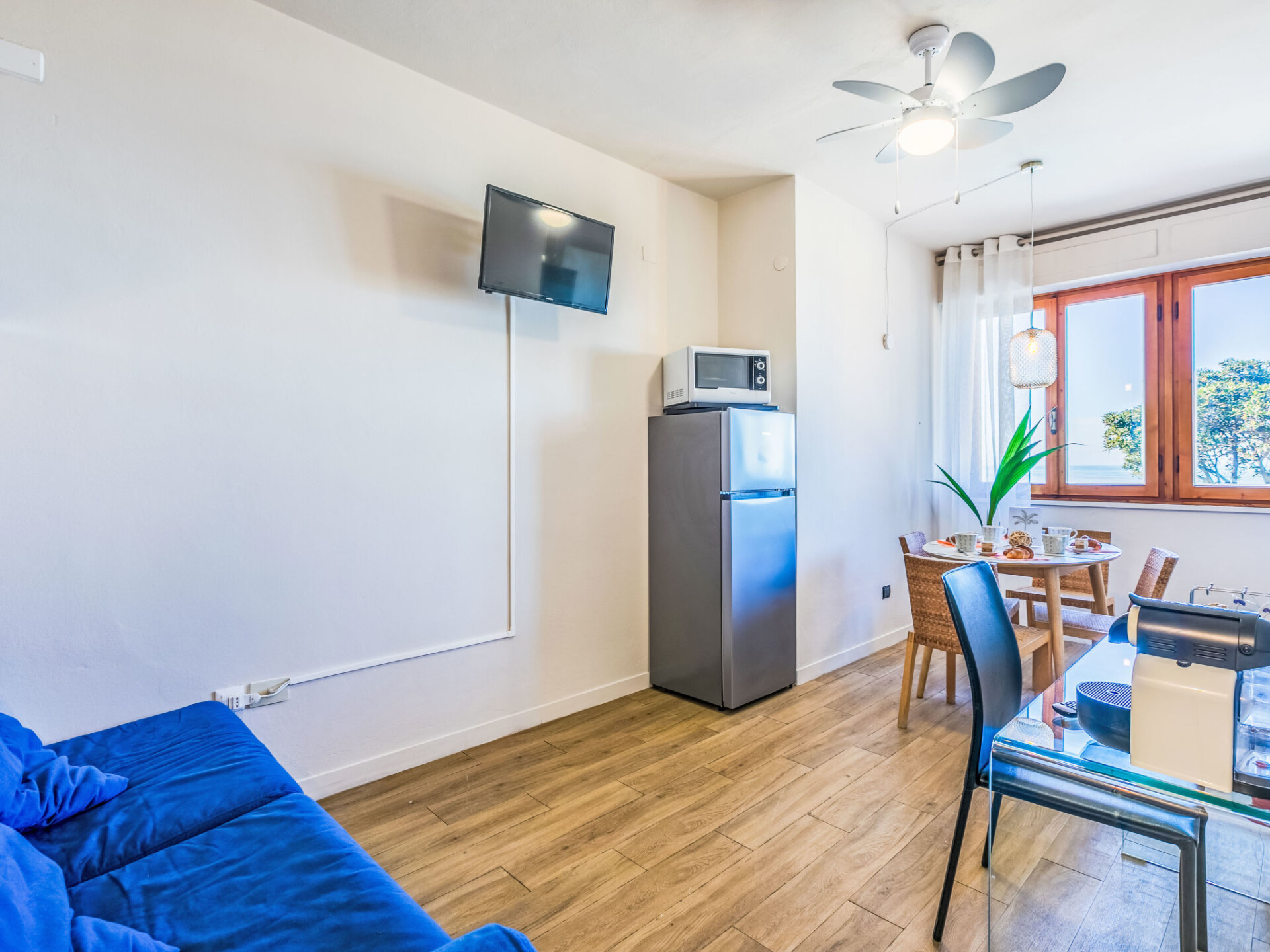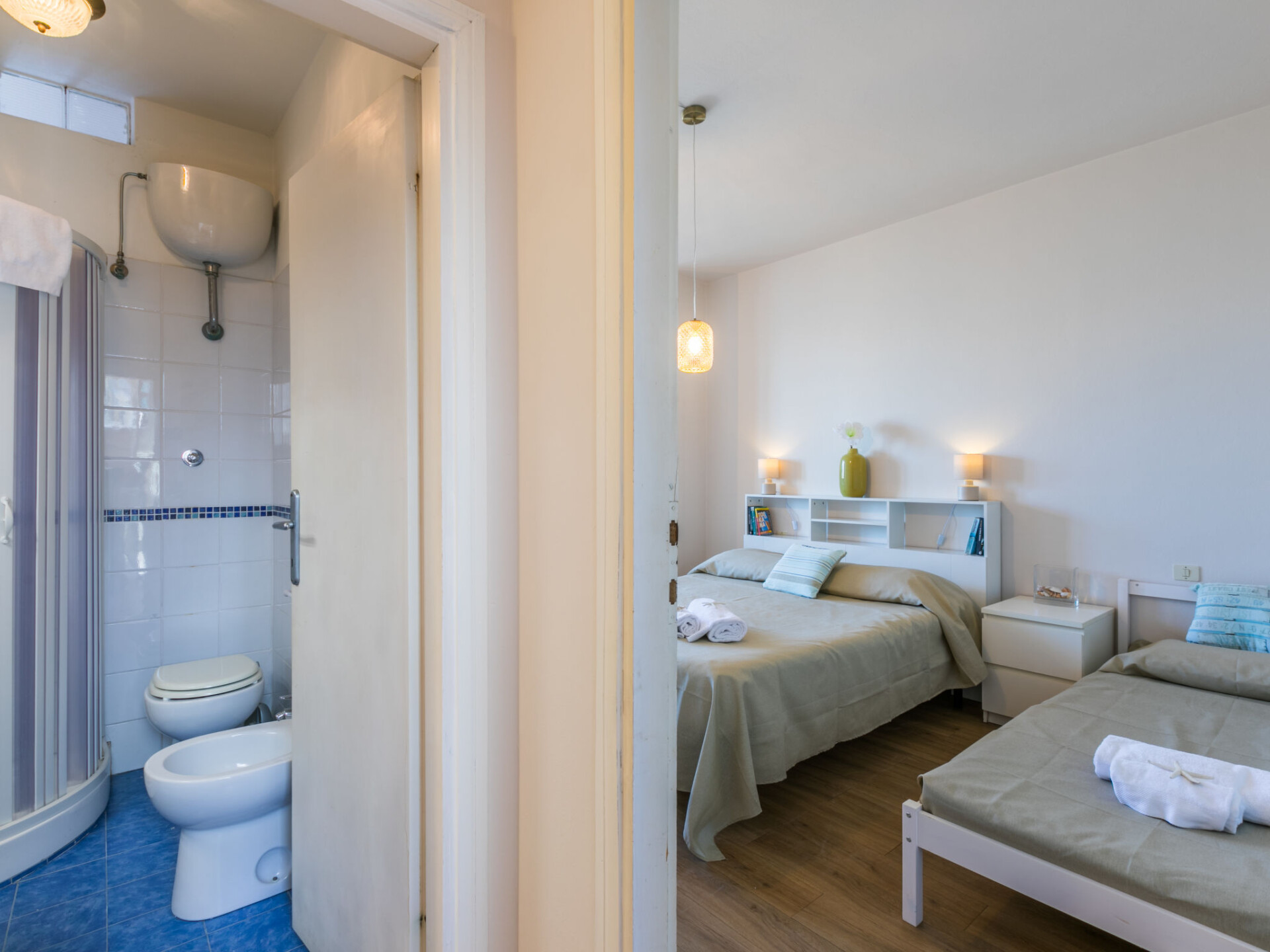 "Mediterraneo", appartement 2-kamers 40 m2, op verhoogde begane grond. Mooi en modern ingericht: woon-/slaapkamer met panoramavenster met 1 2-pers divanbed, eettafel, Digitale TV, Flatscreen TV en ventilator. 1 kamer met 1 bed, 1 2-pers bed, elektrische verwarming en air-conditioning. Kookhoek (3 inductiekookplaten, broodrooster, waterkoker, magnetron, elektrische koffiemachine, pads voor de koffiemachine (Nespresso)). Douche/bidet/WC. Verwarming niet in alle ruimtes. Mooi uitzicht op zee. Ter beschikking: wasmachine, haardroger. Internet (WiFi, gratis). Parkeerplaats bij het huis. Niet rokers woning. Brandblusser. Bedindeling is flexibel. Er zijn meer slaapmogelijkheden beschikbaar dan het maximaal toegestane aantal personen dat echter niet mag worden overschreden. IT049018C2SRXCUZPO